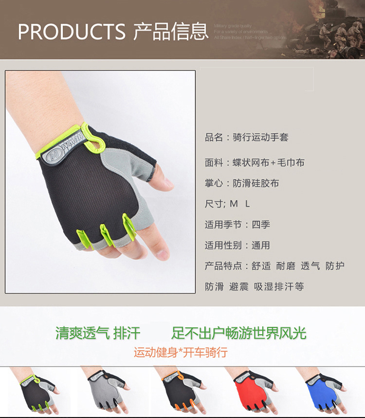 户外骑行手套半指网布薄款速干男女运动登山健身开车骑车手套耐磨