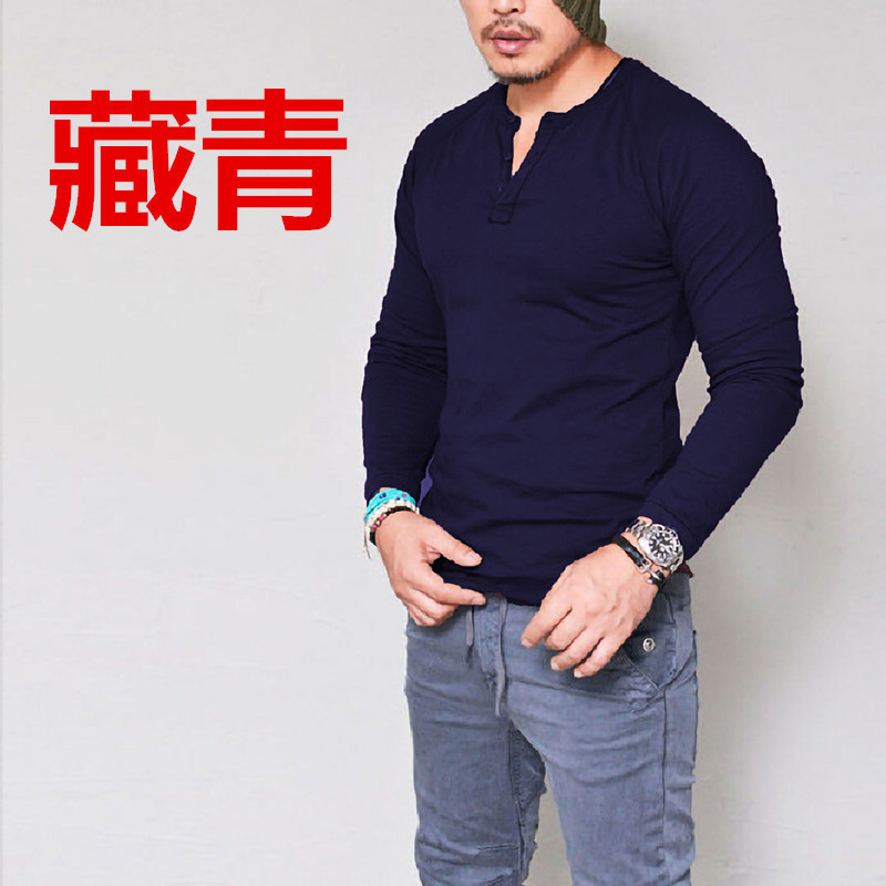 现货秒发 2025欧美外贸男装款圆领棉质纯色纽扣长袖T恤休闲打底衫