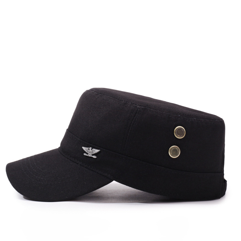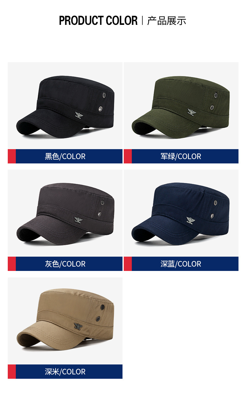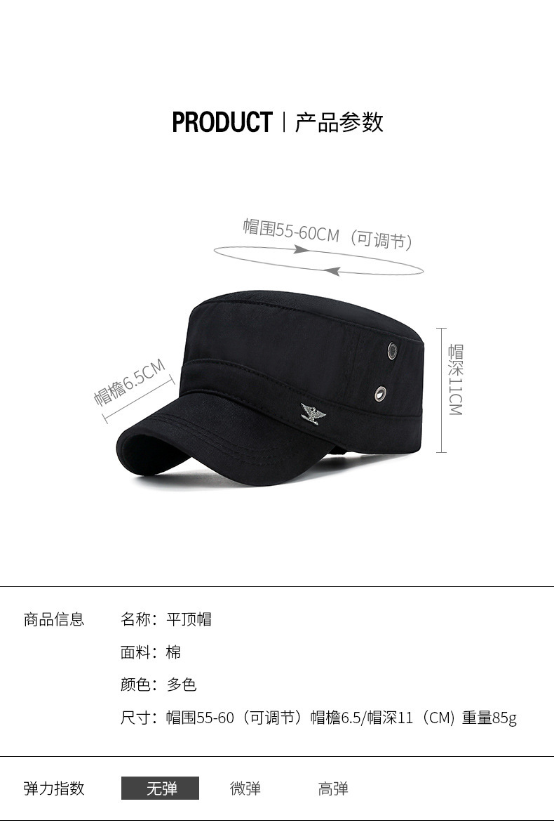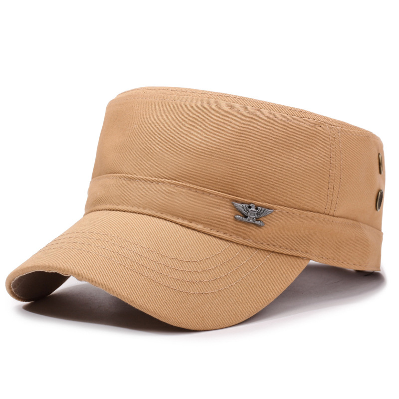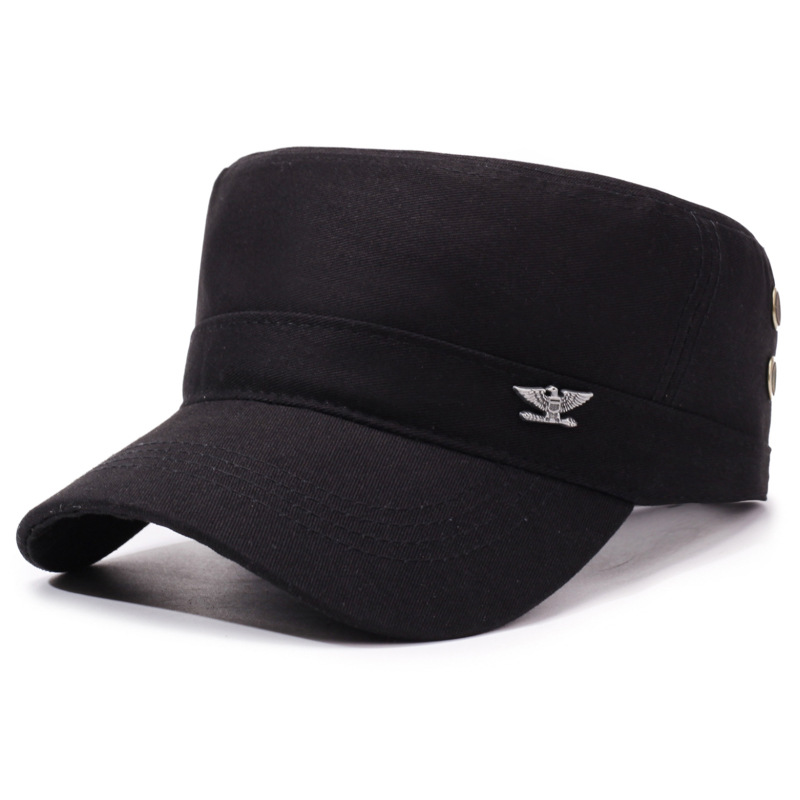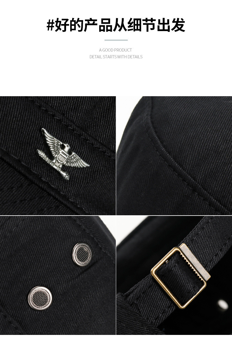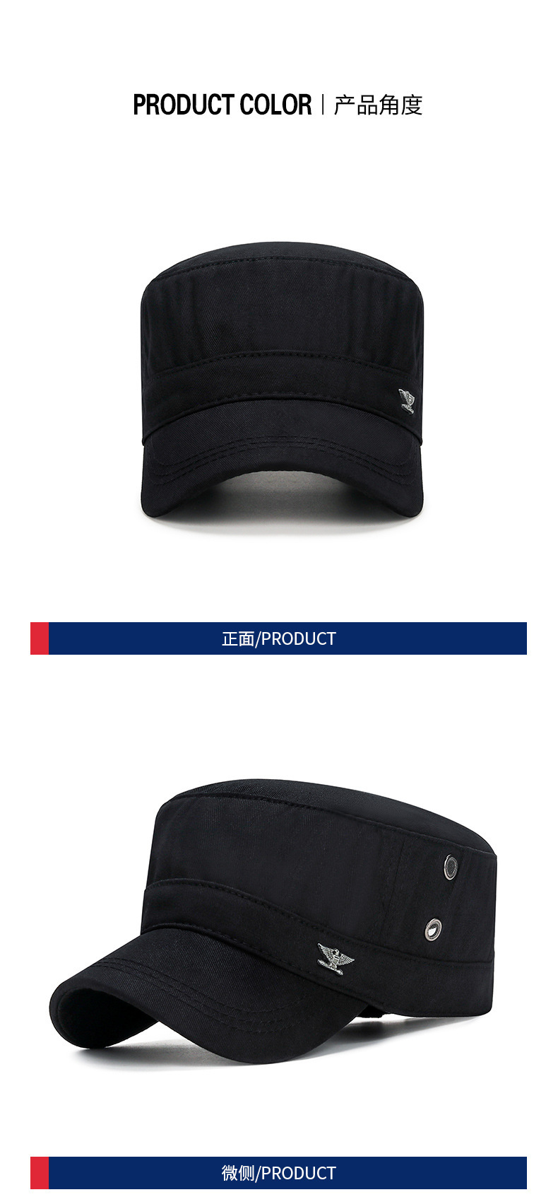 春季新款平顶帽男士户外休闲百搭款透气老鹰标遮阳帽棉质平顶帽子