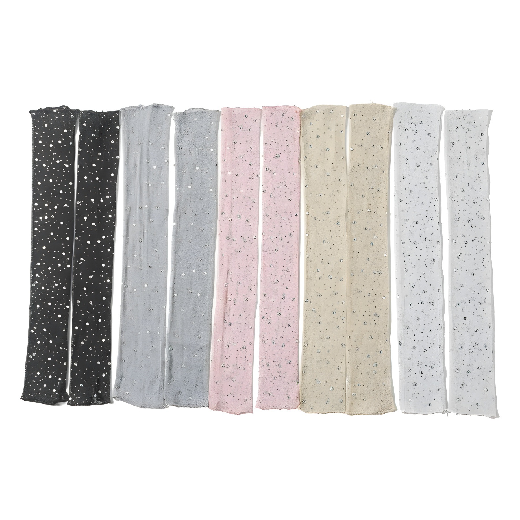 长款防晒蕾丝手套女薄款半袖无指户外透气网纱冰丝烫钻潮欧美风格