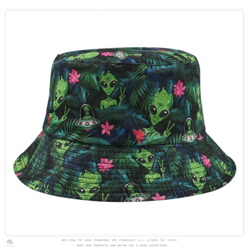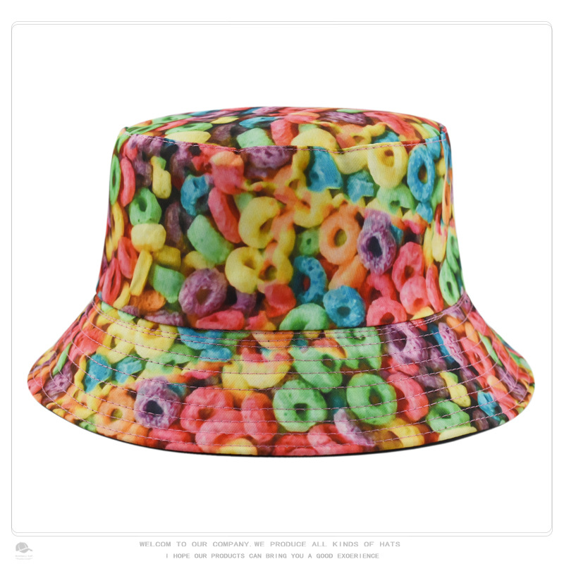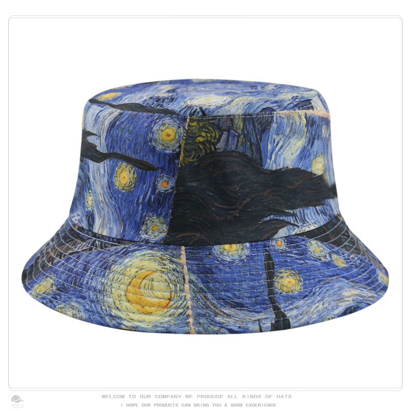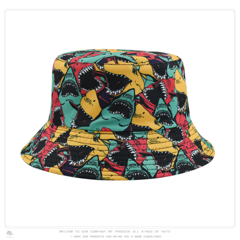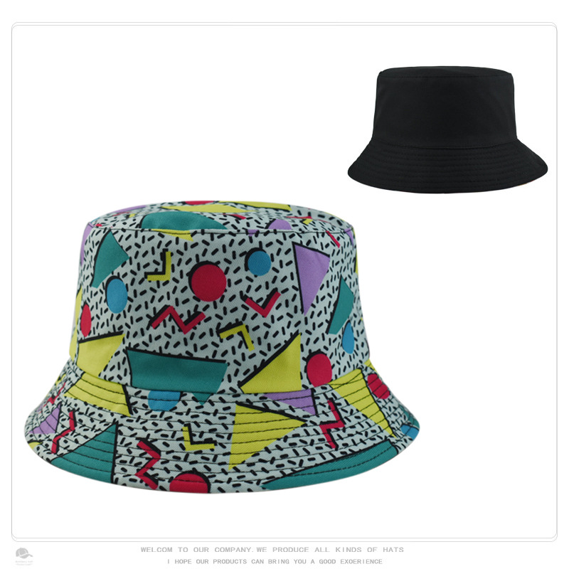 跨境复古时尚复古图案印花渔夫帽女户外旅行遮阳帽双面可戴盆帽