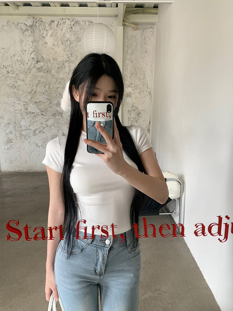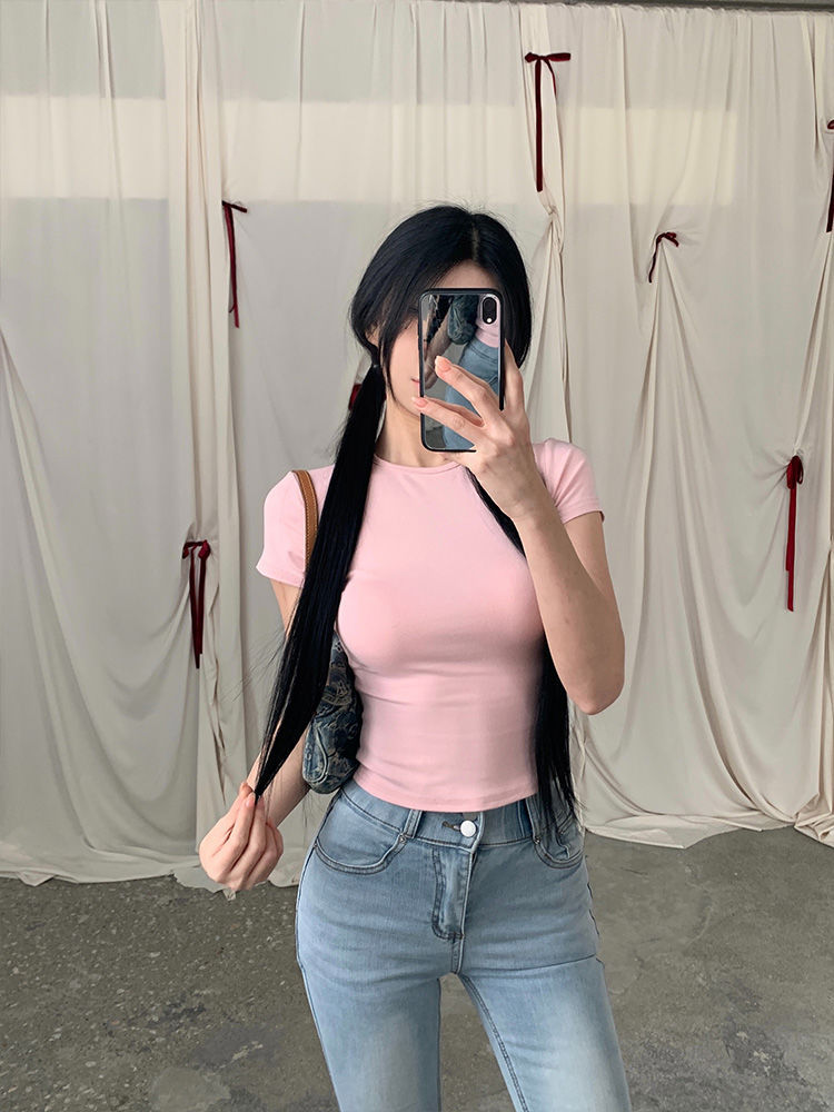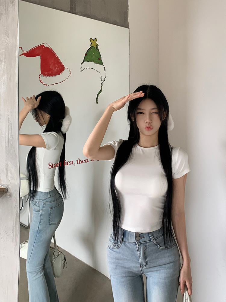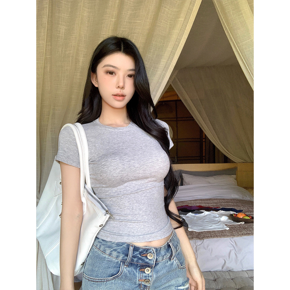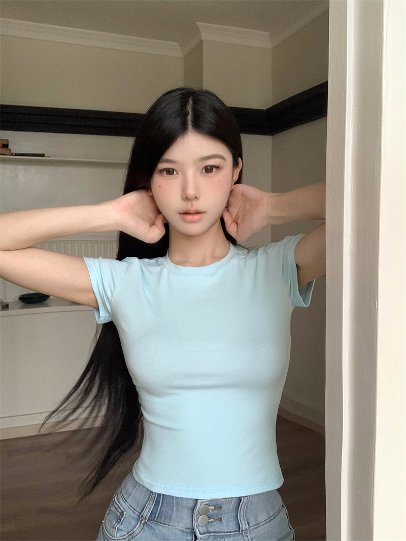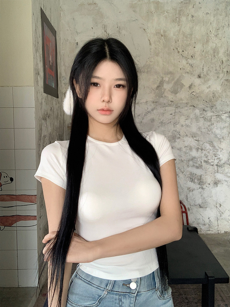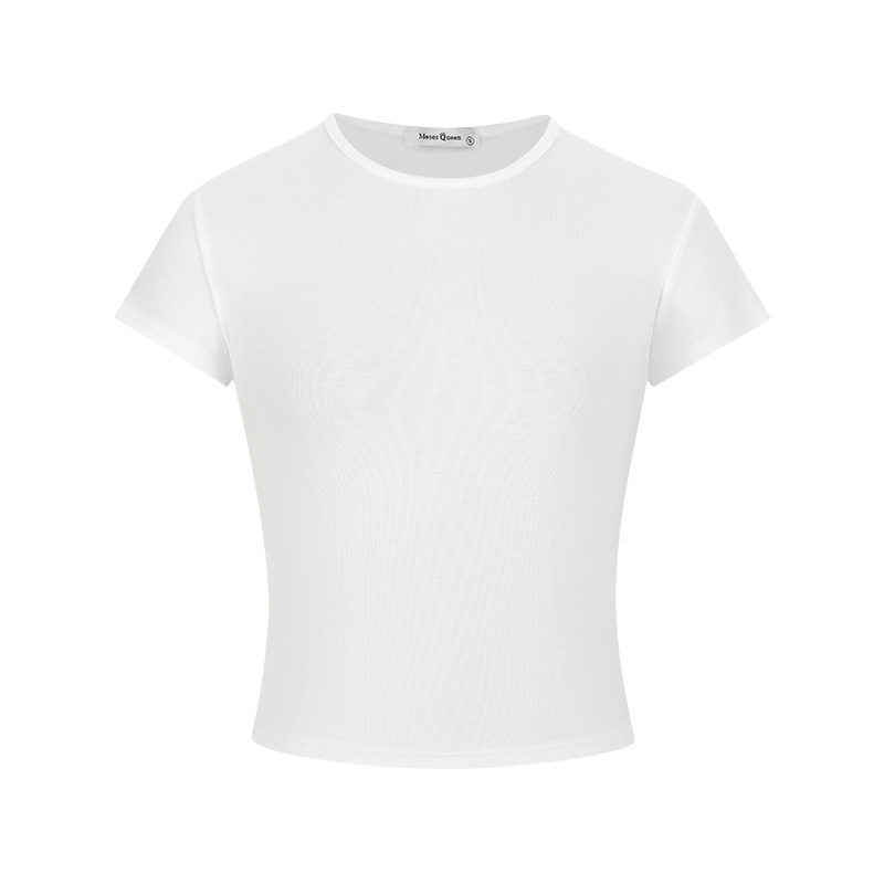 外贸修身短袖T恤女2025夏季新款韩系休闲白色正肩打底衫女装上衣
