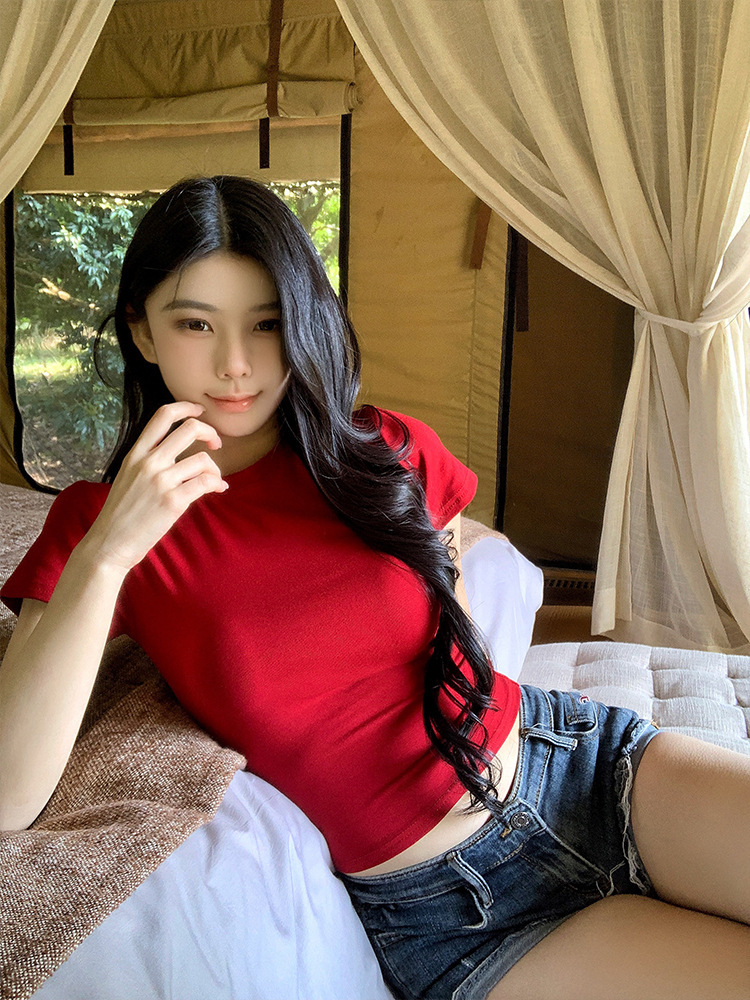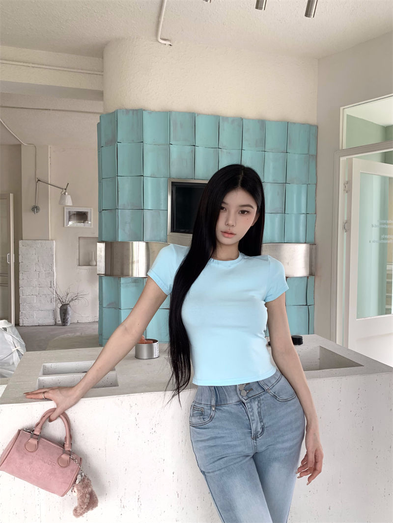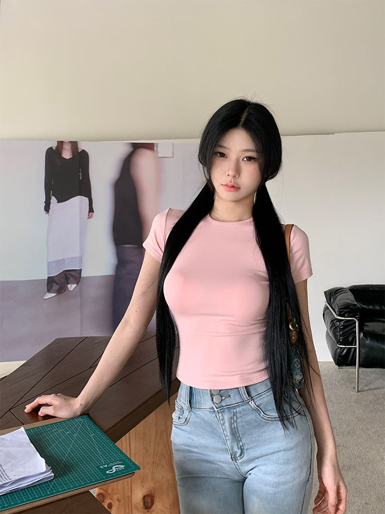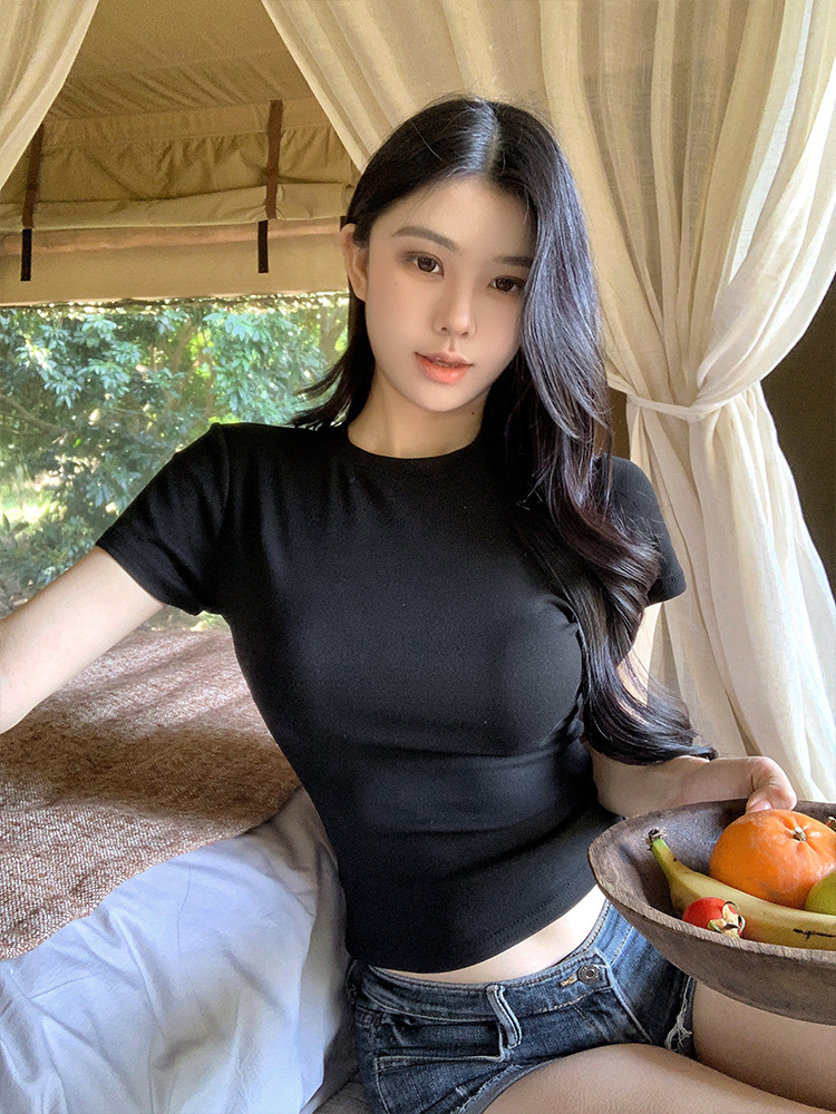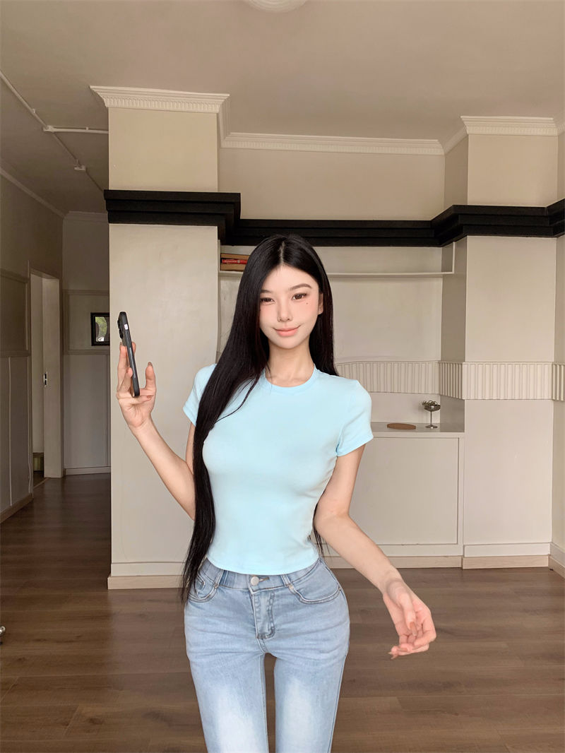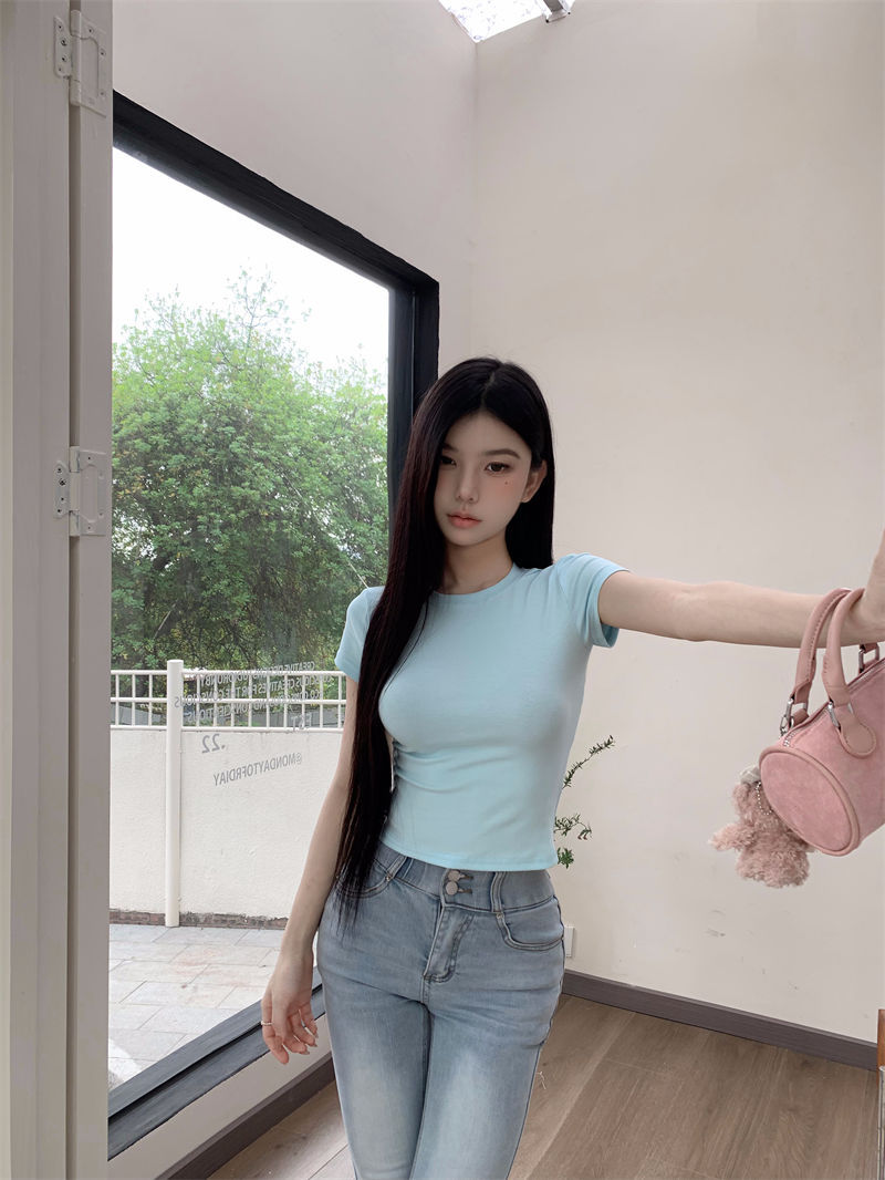 外贸修身短袖T恤女2025夏季新款韩系休闲白色正肩打底衫女装上衣