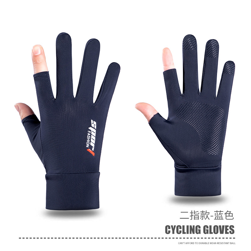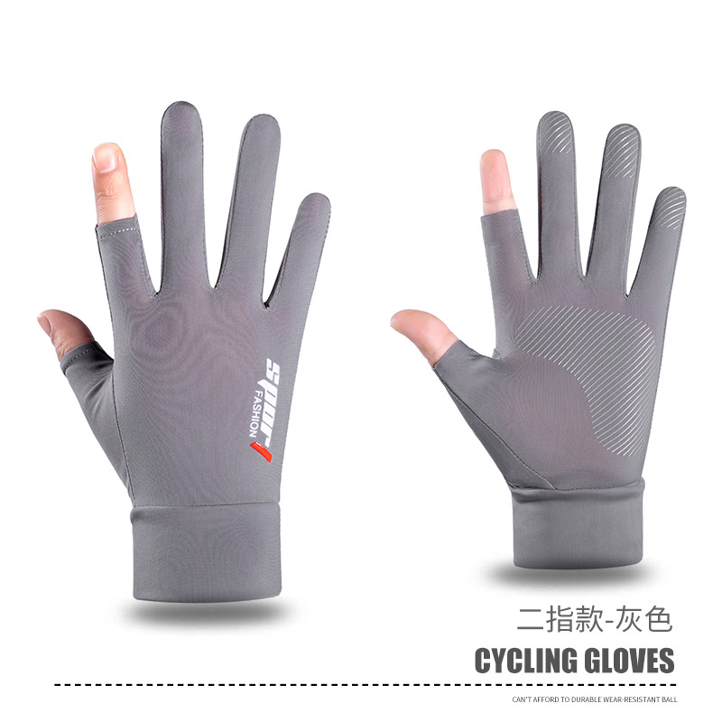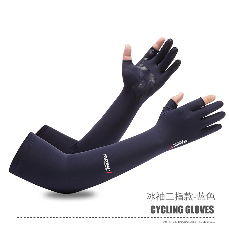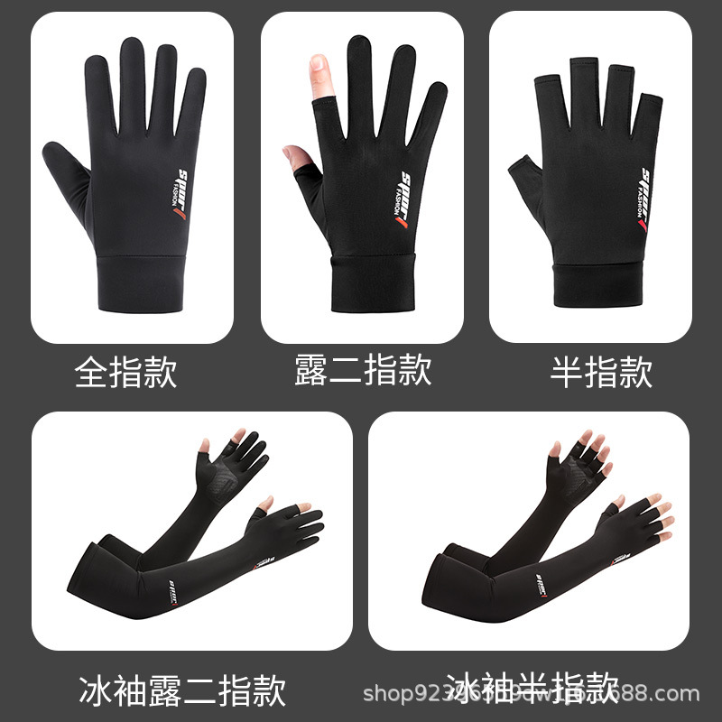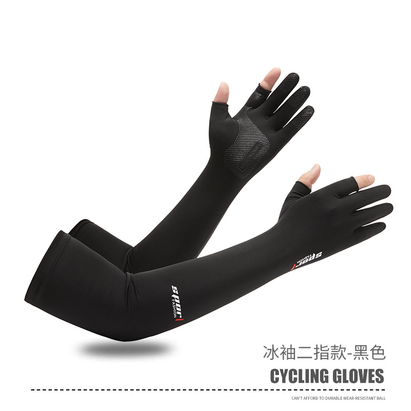 夏男女冰丝防晒钓鱼手套防紫外线户外骑行护臂冰袖防滑漏2指手套