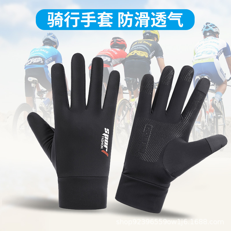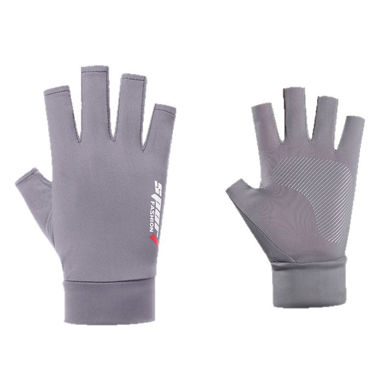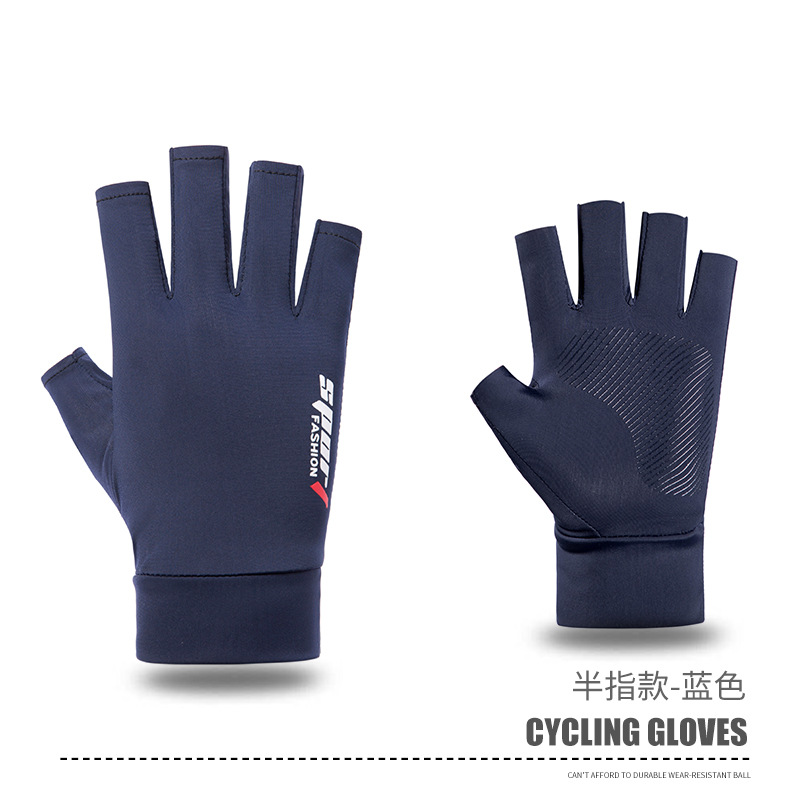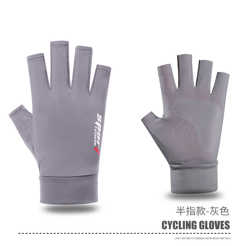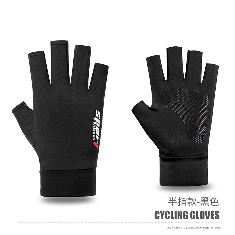 夏男女冰丝防晒钓鱼手套防紫外线户外骑行护臂冰袖防滑漏2指手套