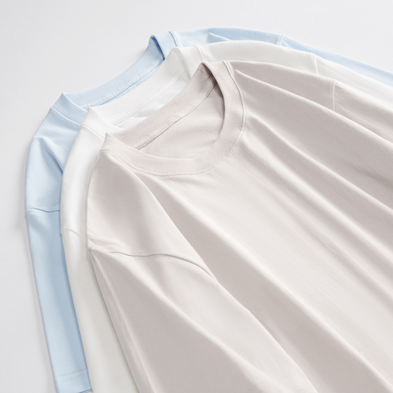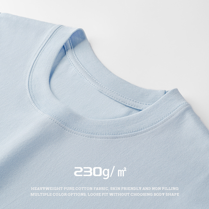 230g纯棉宽松落肩短袖男夏季新款日式纯色简约t恤批发百搭衣服男
