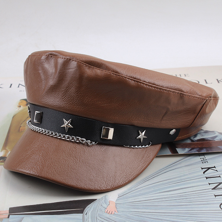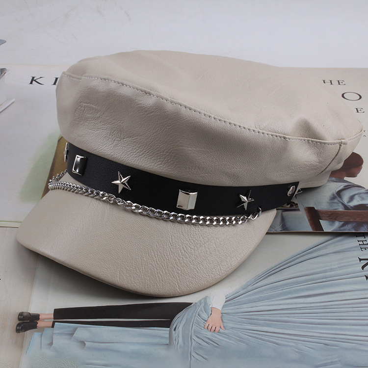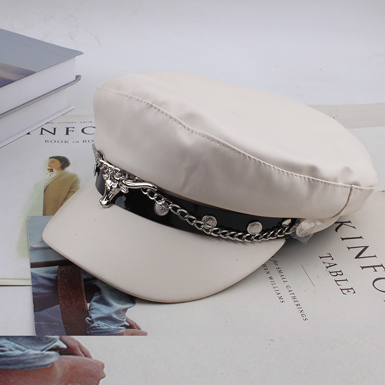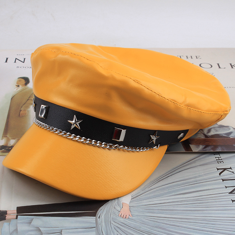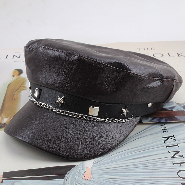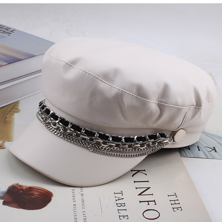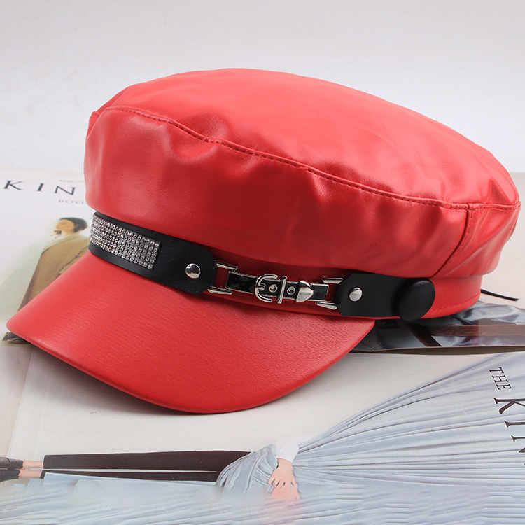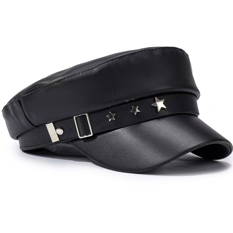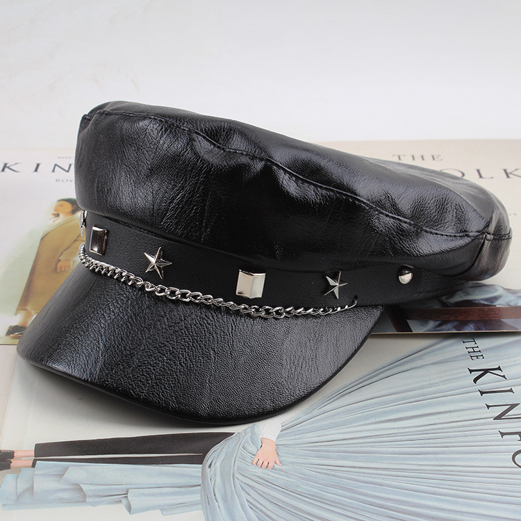 INS网红春秋百搭贝雷帽复古平顶遮阳帽显脸小黑色画家帽子时装