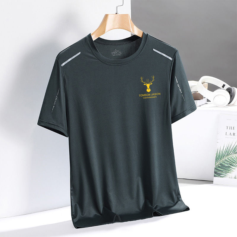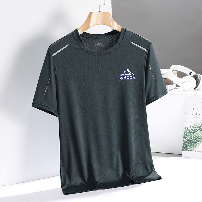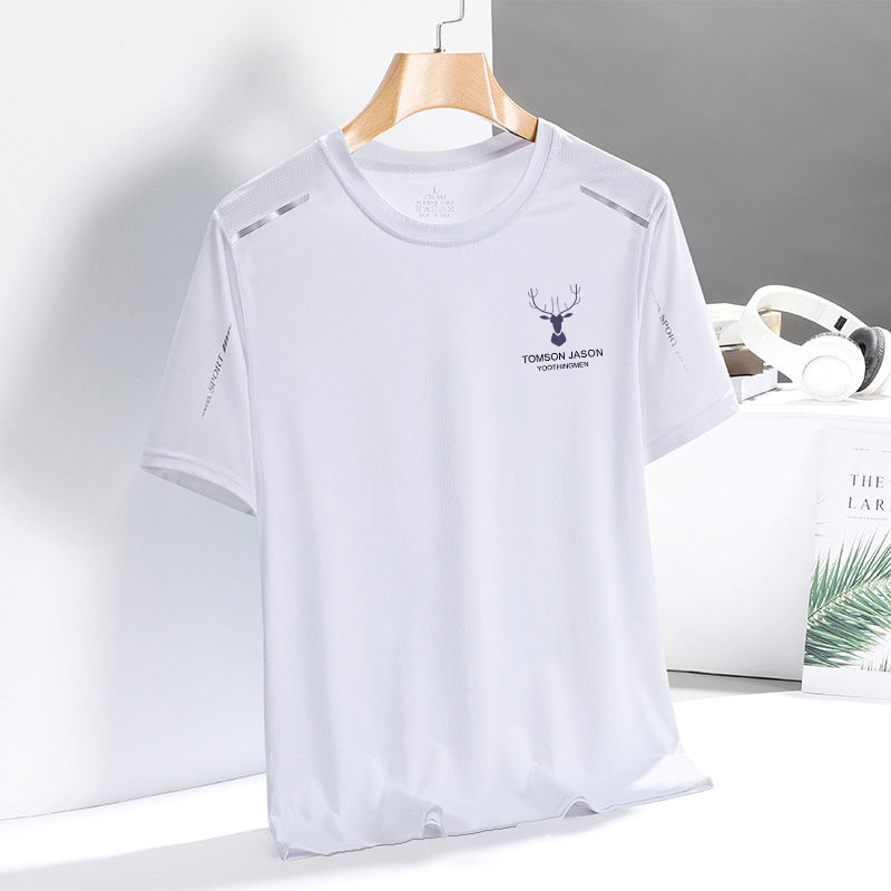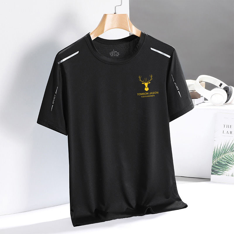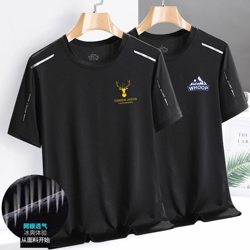 新款夏季网眼冰丝t恤男圆领速干衣休闲短袖潮流印花透气大码运动