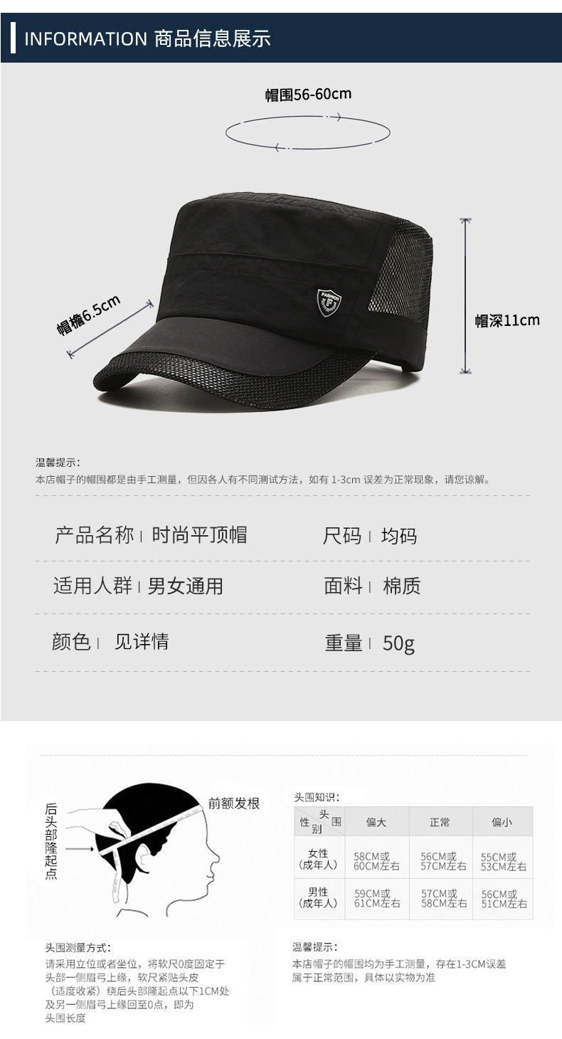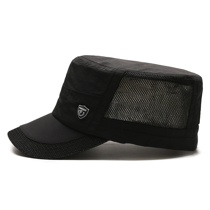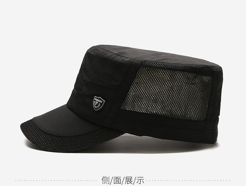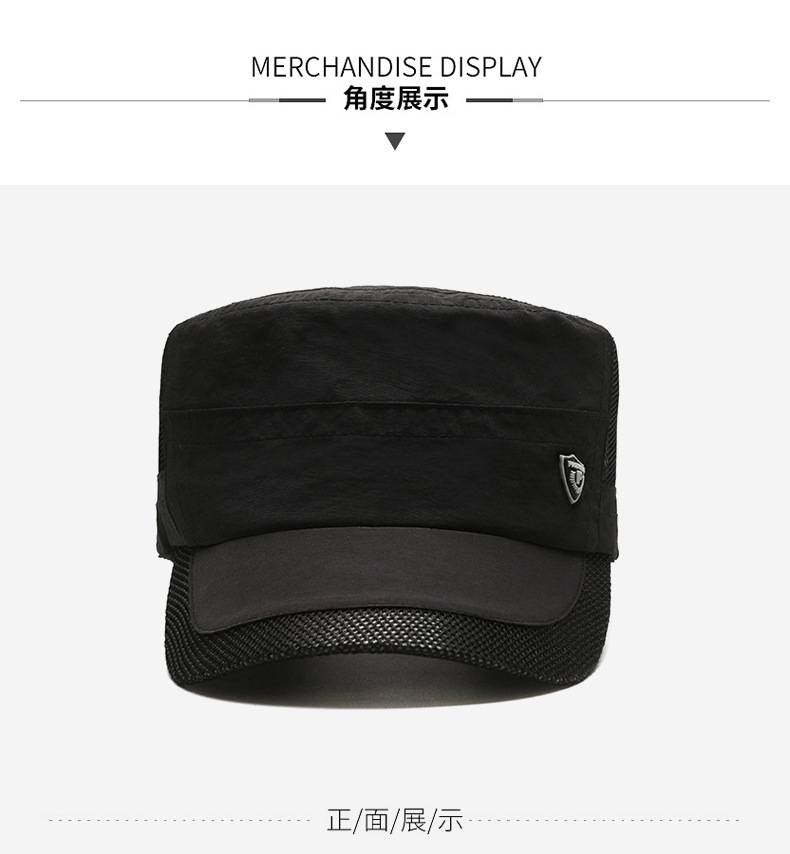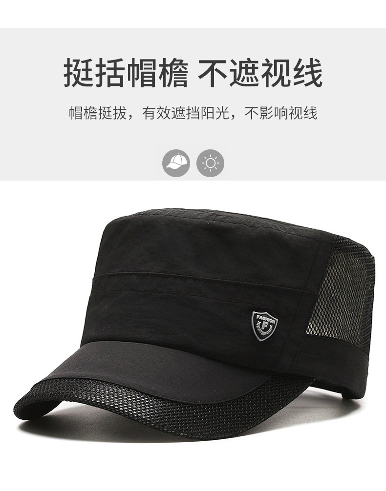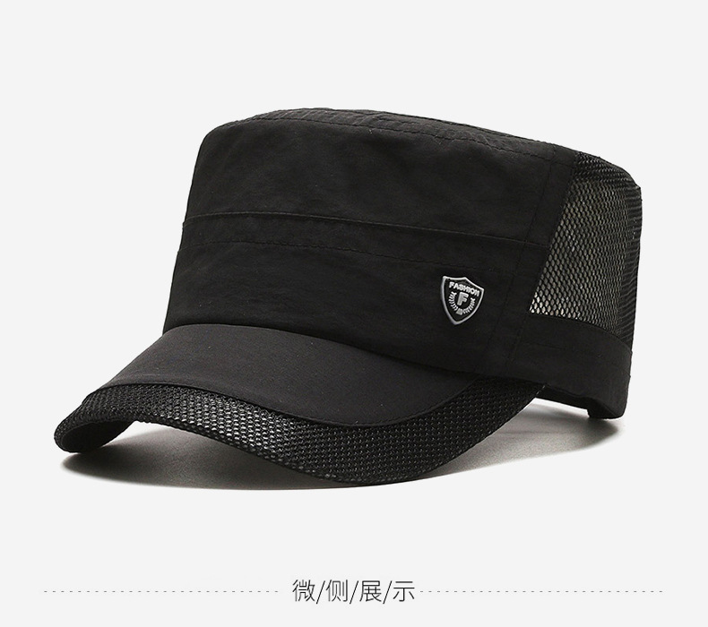 夏季休闲平顶帽男士薄款休闲速干网眼透气中老年鸭舌帽跨境