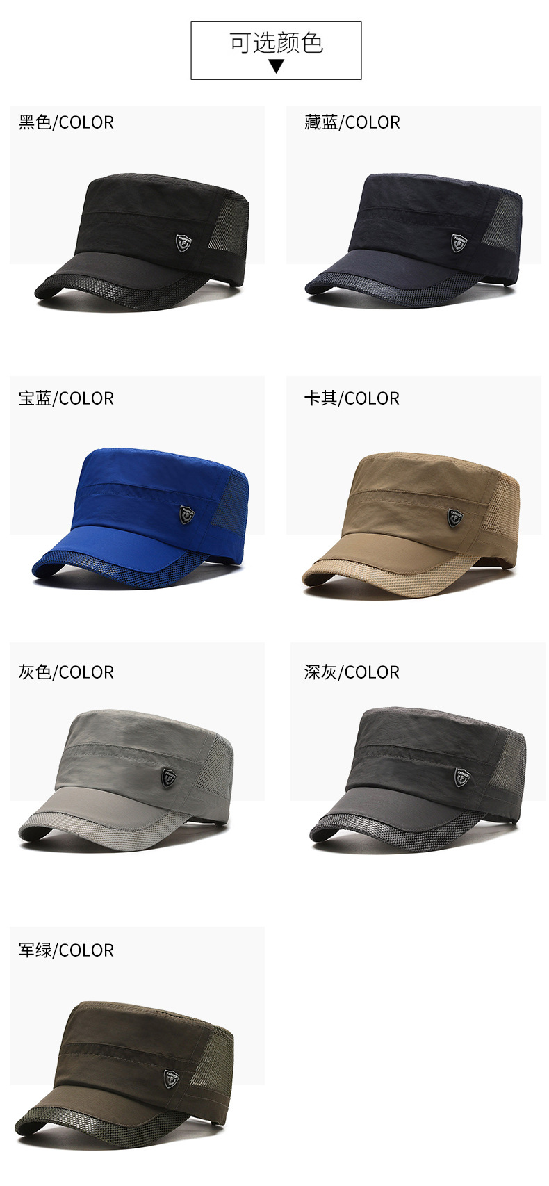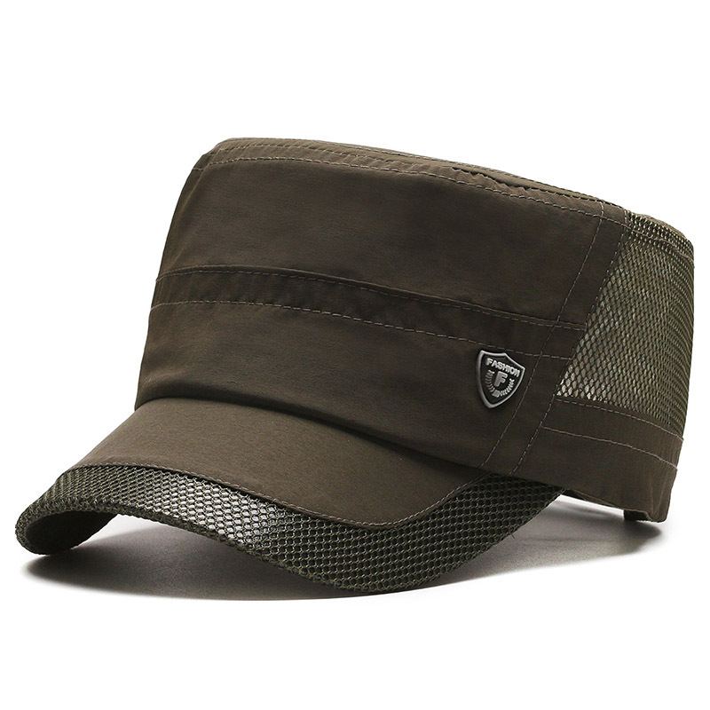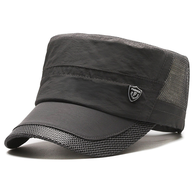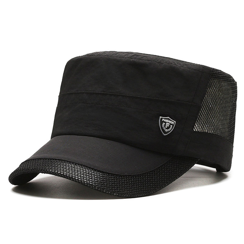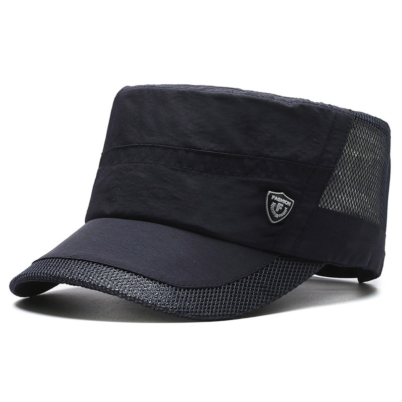 夏季休闲平顶帽男士薄款休闲速干网眼透气中老年鸭舌帽跨境
