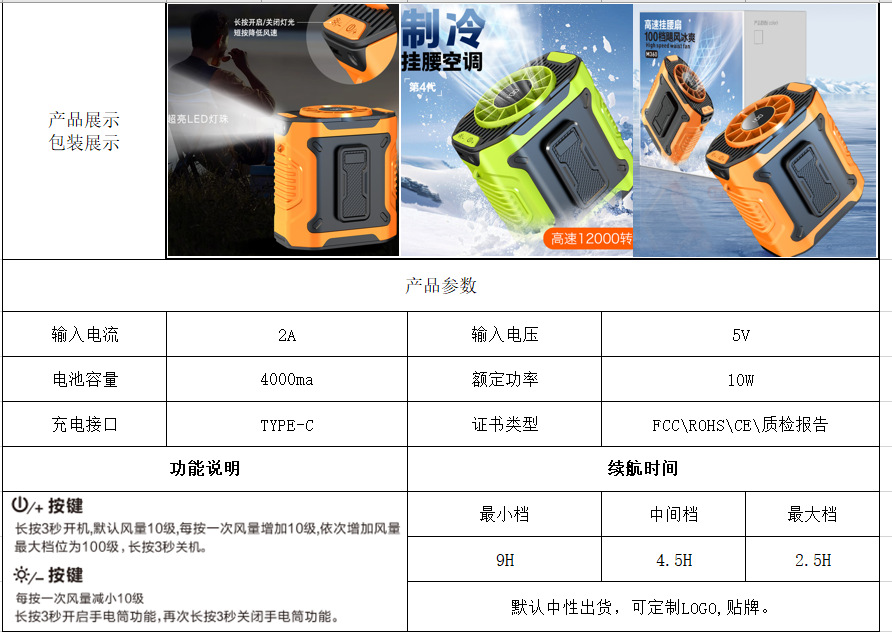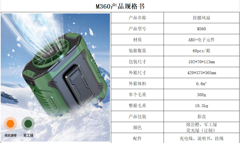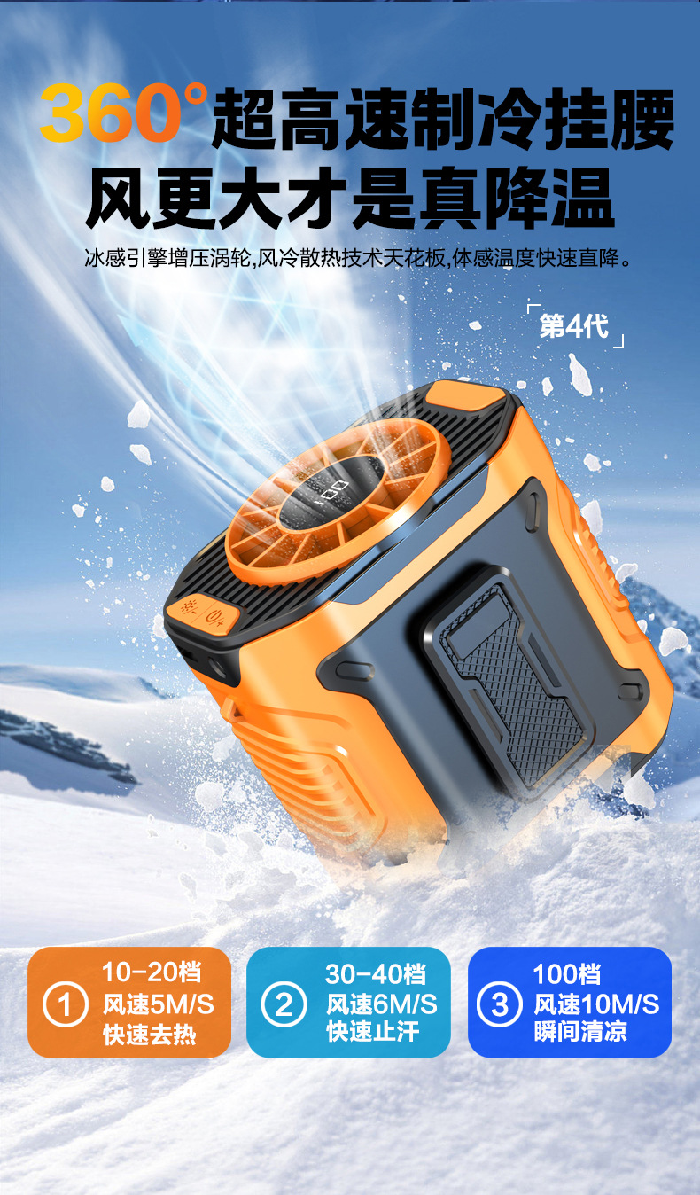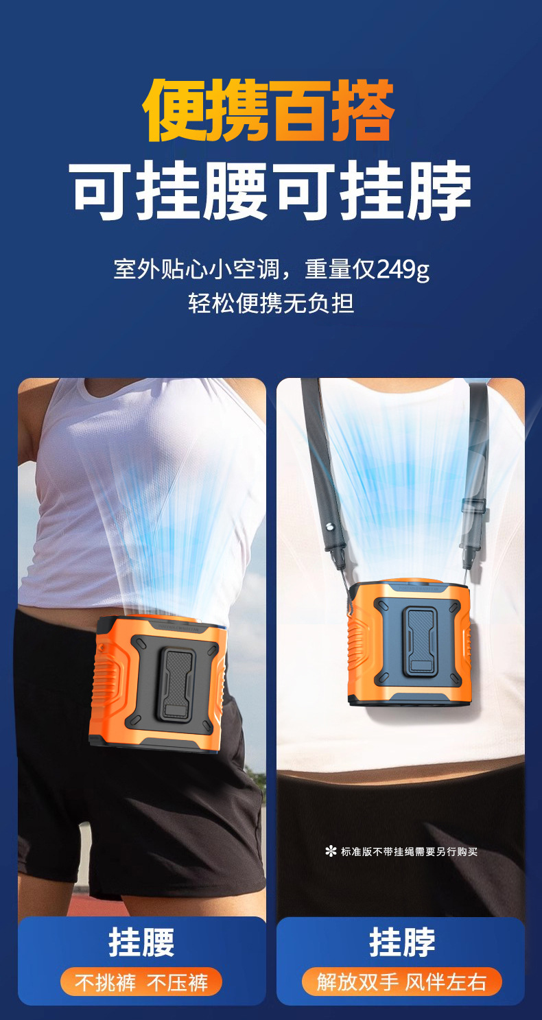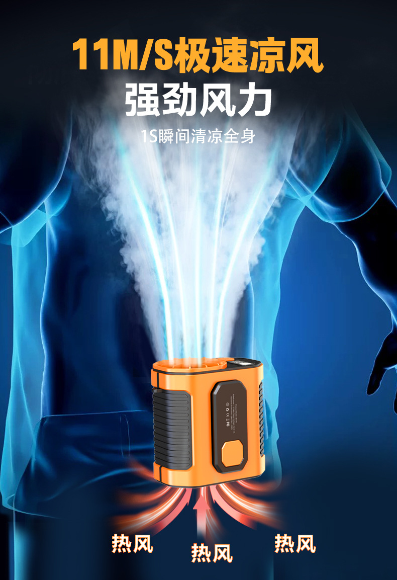 跨境挂腰风扇户外工地随身夹腰便携风扇消暑降温usb迷你高速风扇