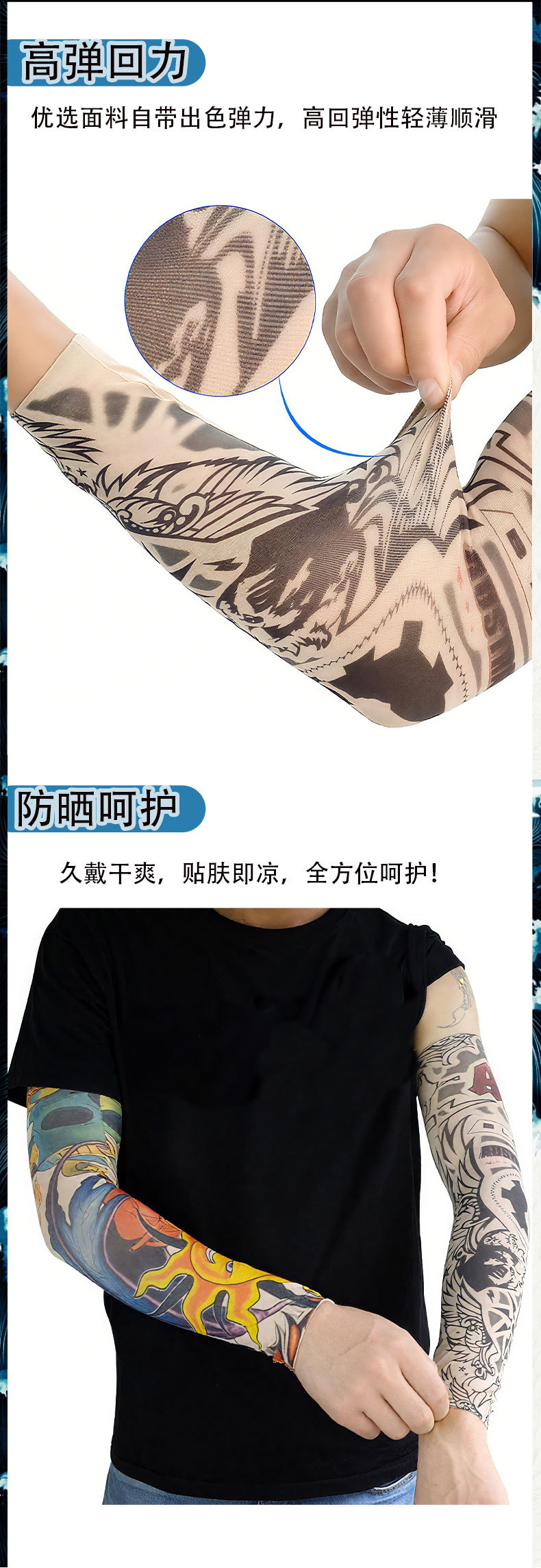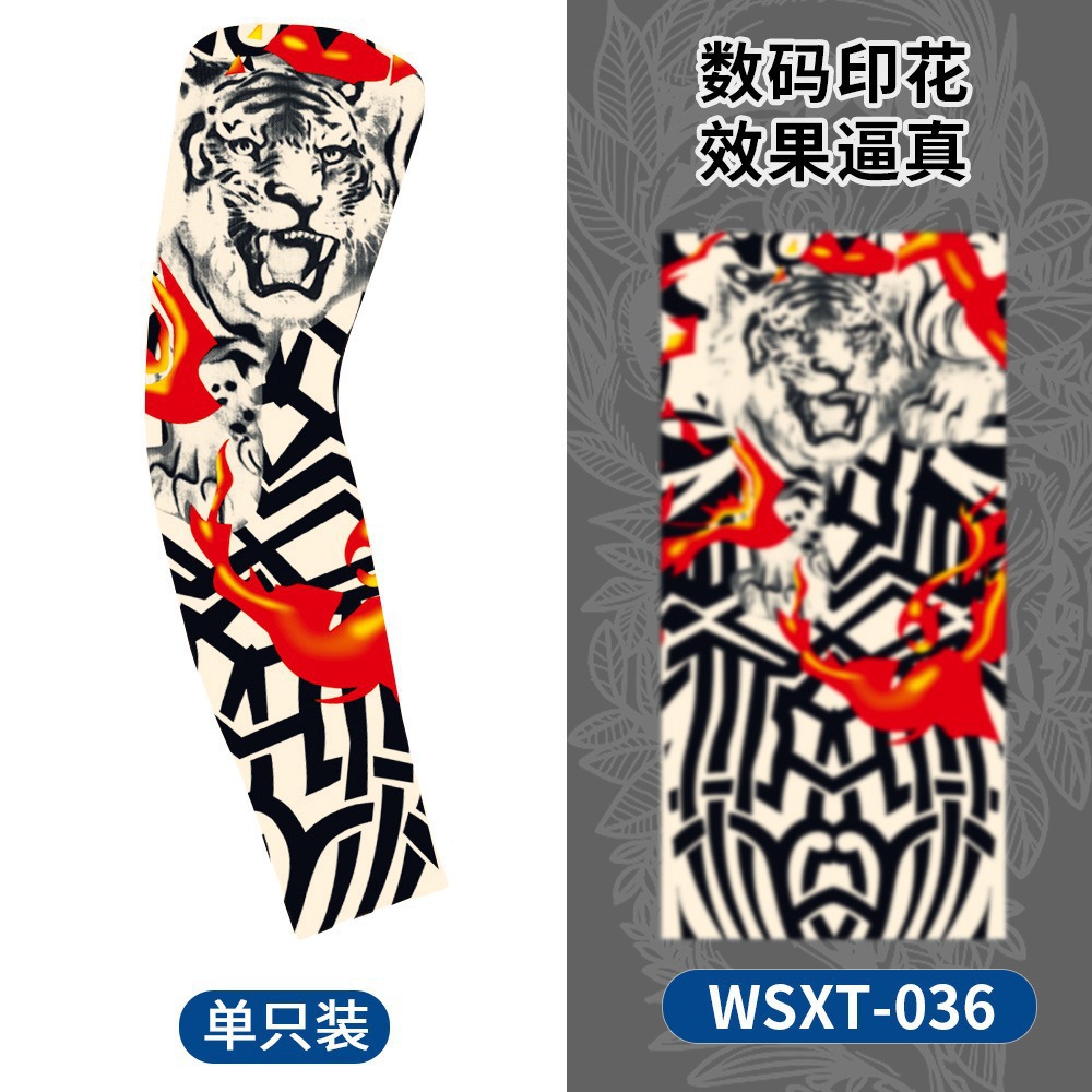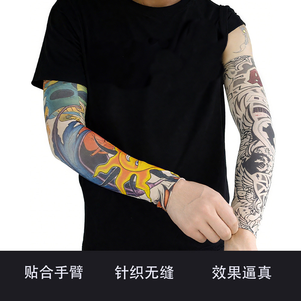 夏季户外防晒纹身袖套运动透气无缝花臂男女刺青冰袖吸汗透气套袖