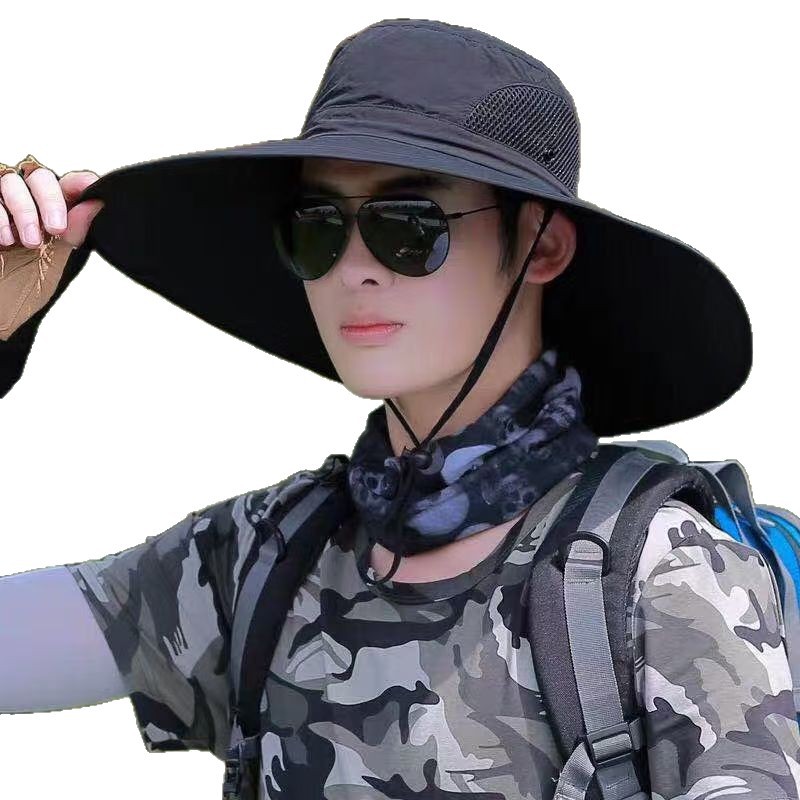 防晒帽男士夏季遮阳帽户外登山钓鱼大檐遮脸防紫外线渔夫太阳帽子