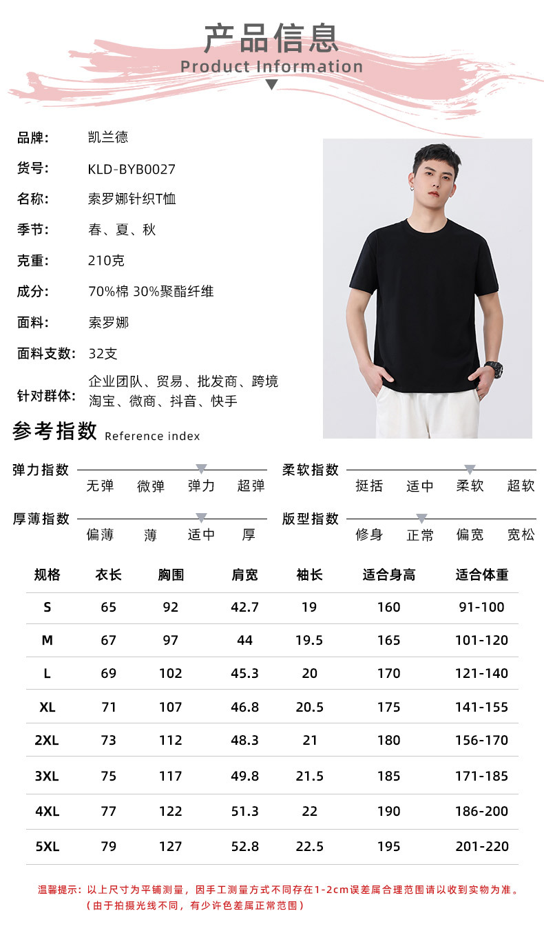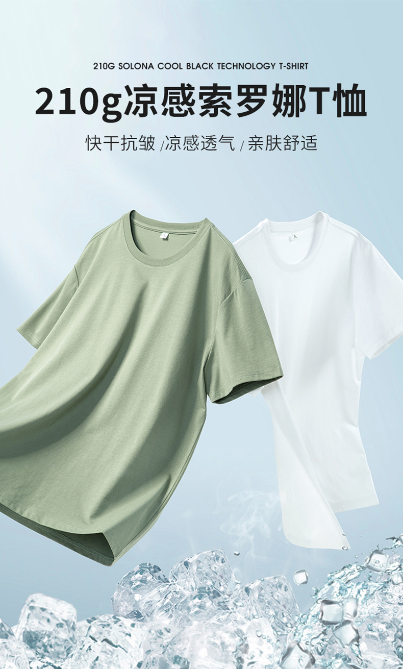 纯色短袖索罗娜针织T恤男定制210G凉感打底体恤圆领广告衫工作服