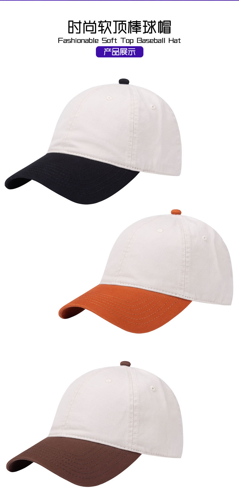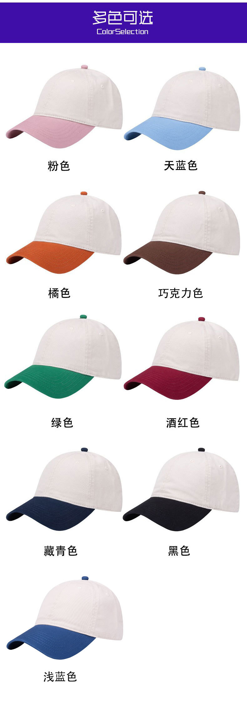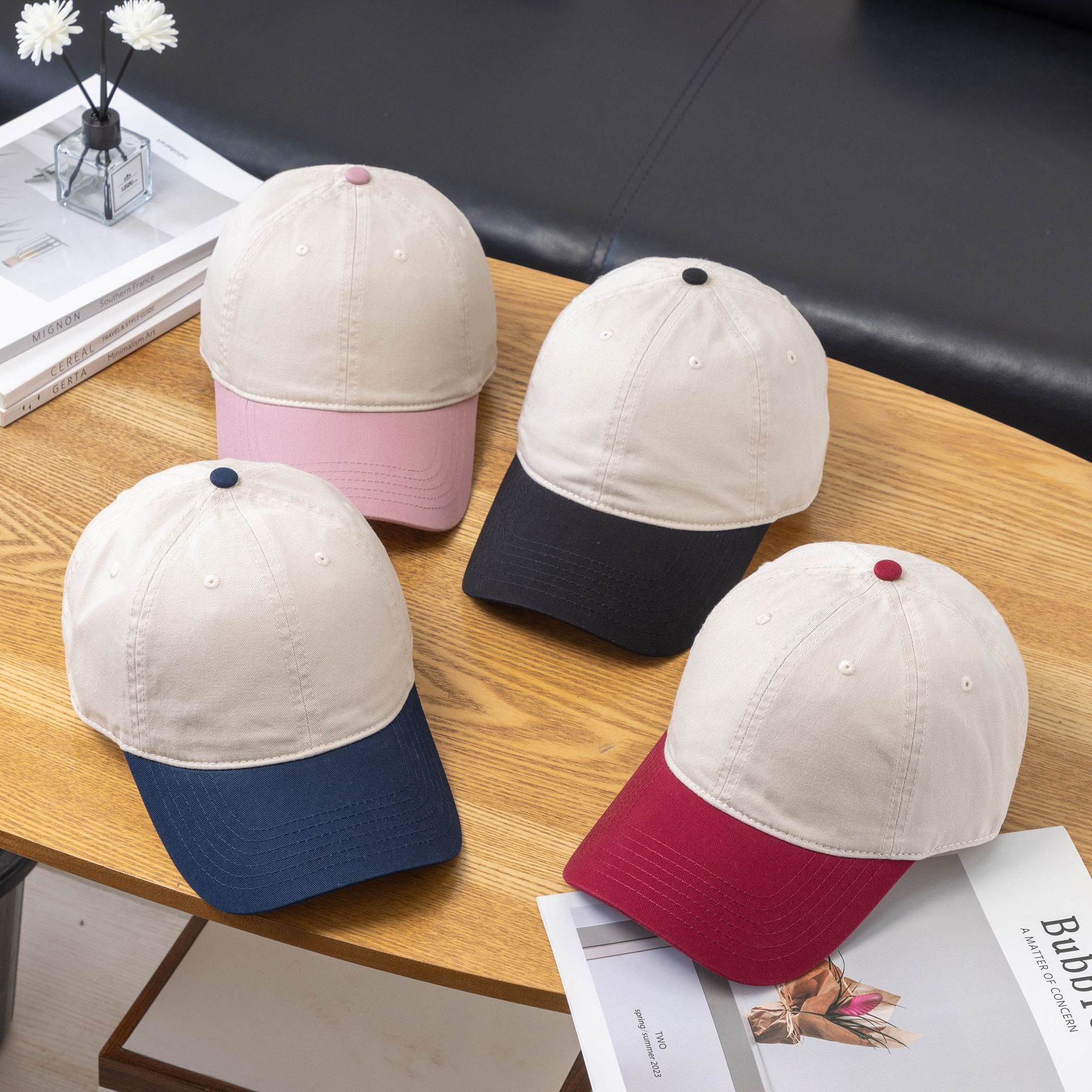 韩国ins 风拼色棒球帽时尚百搭深顶鸭舌帽男女款休闲户外遮阳帽子