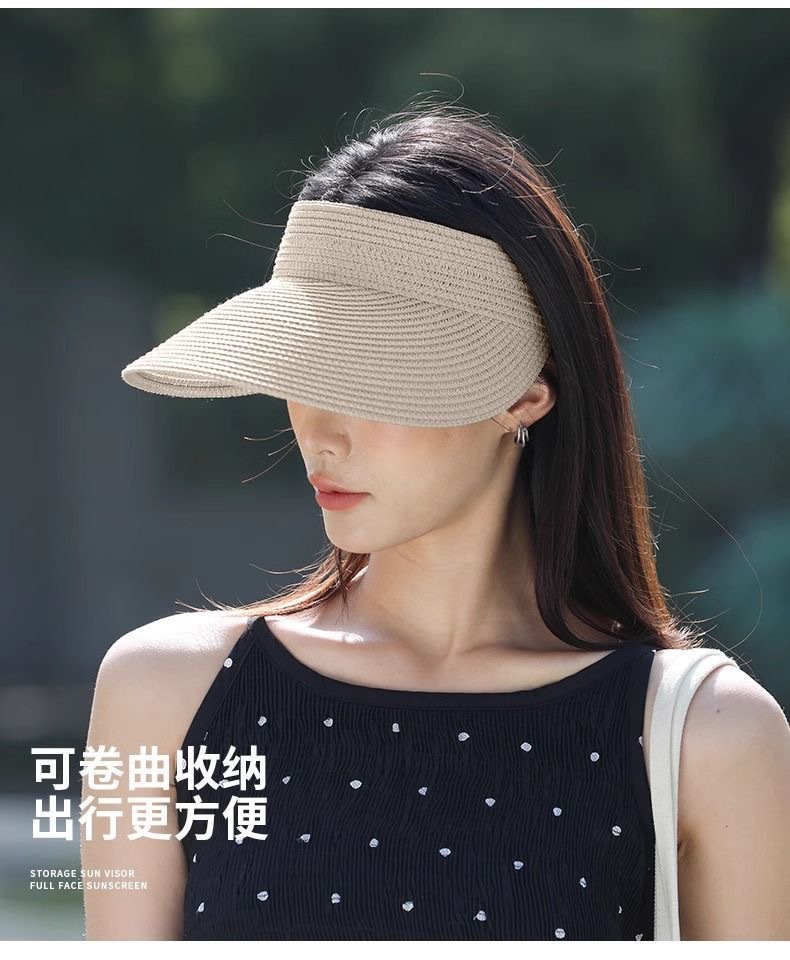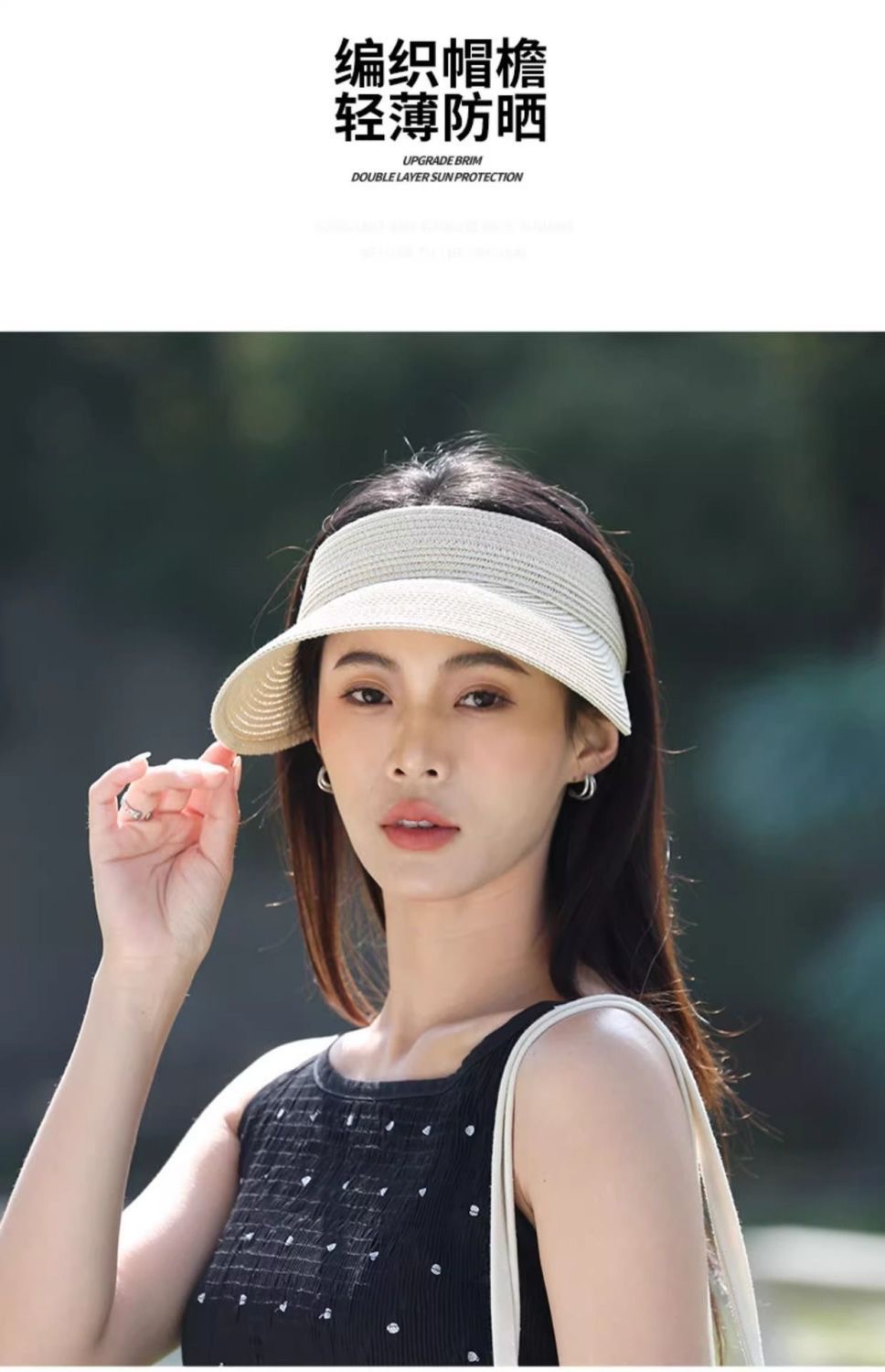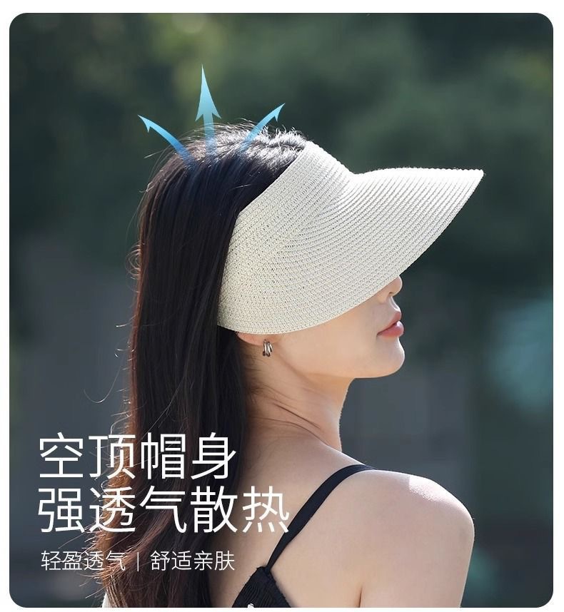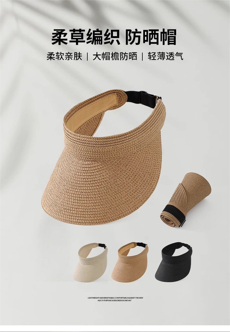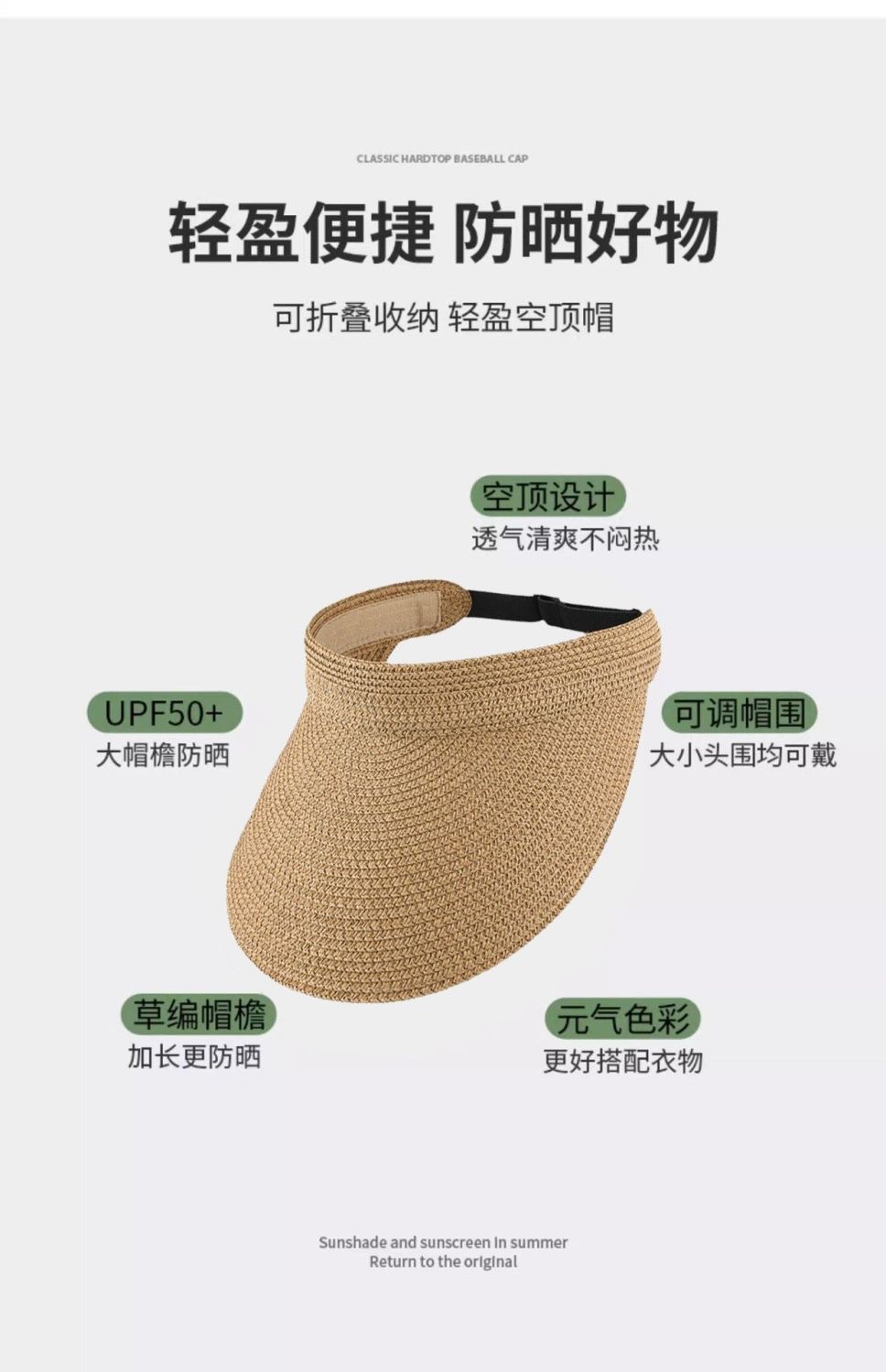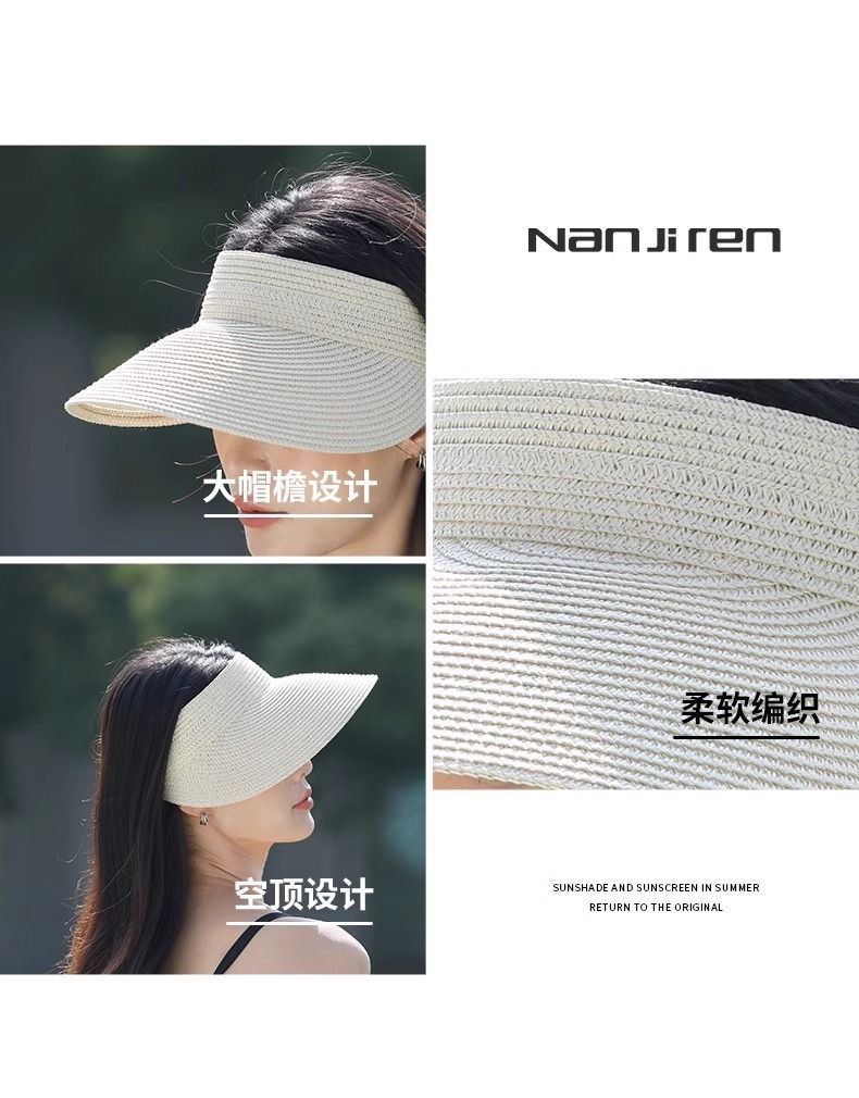 草编防晒帽女夏季度假出游空顶草帽大帽檐防紫外线遮阳太阳帽子潮