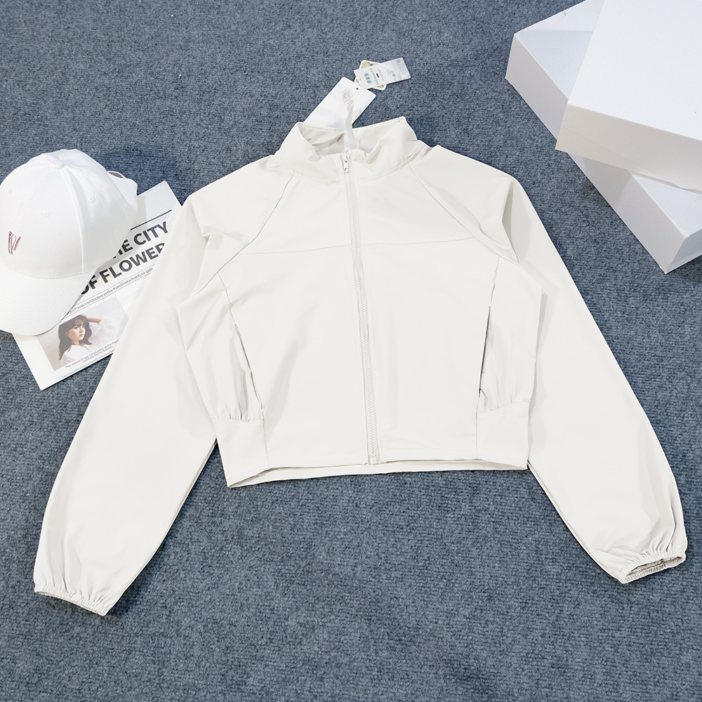 瑜伽服美式运动防风立领防晒外套透气上衣户外速干短款拉链女健身