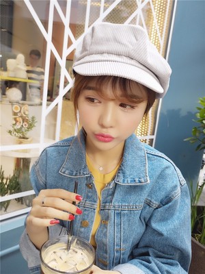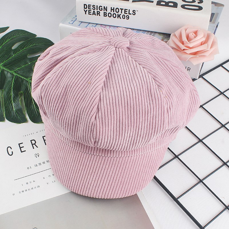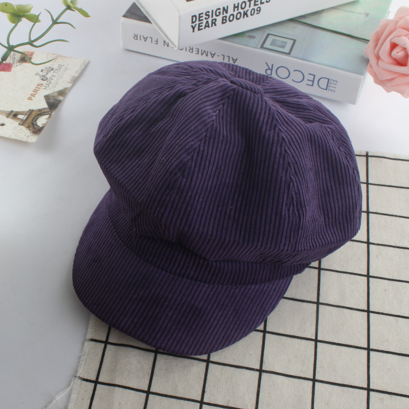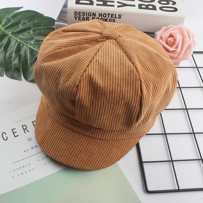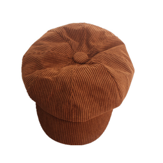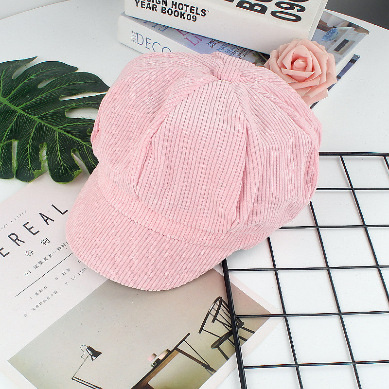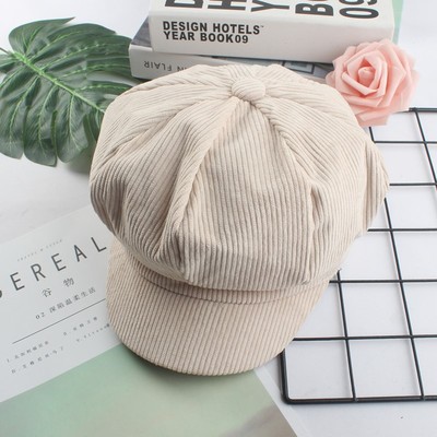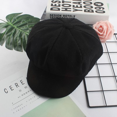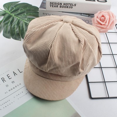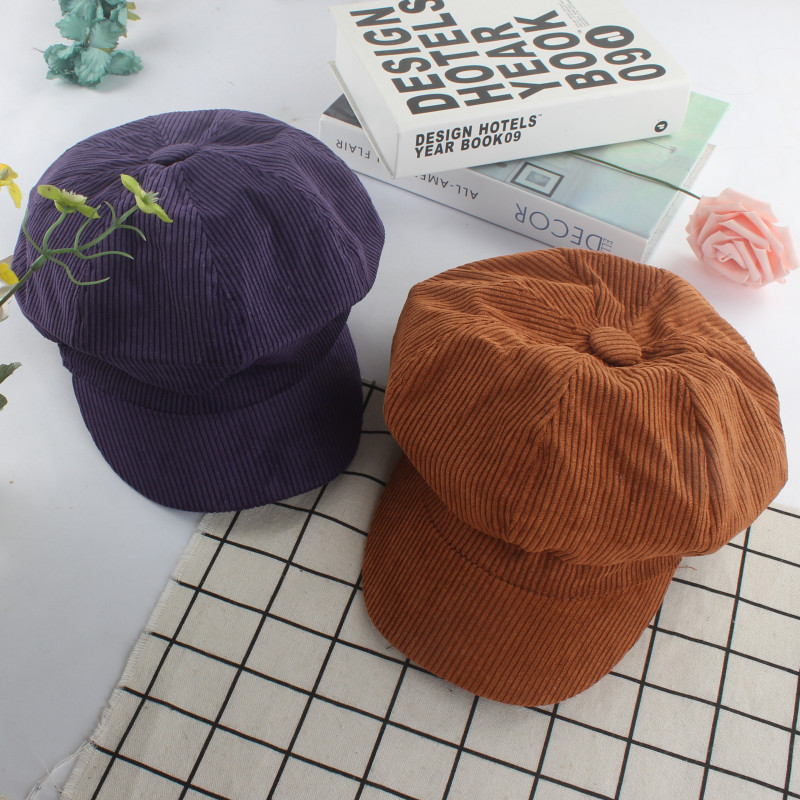 新款文艺清新灯芯绒鸭舌帽子秋冬男女潮八角帽韩版画家帽子贝雷帽