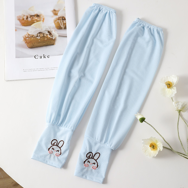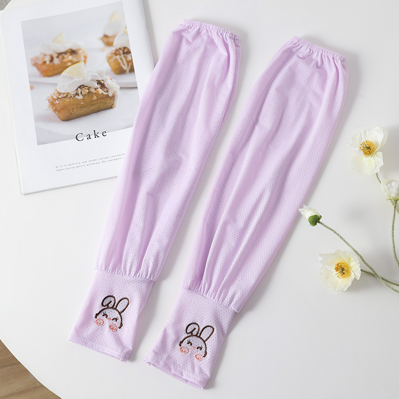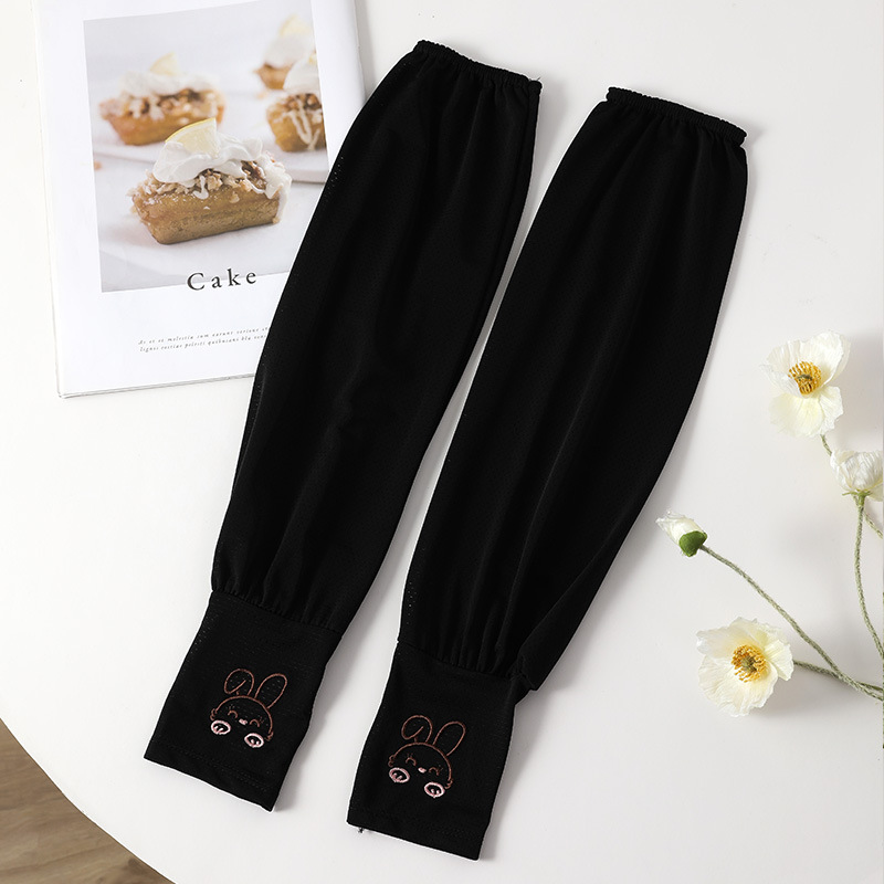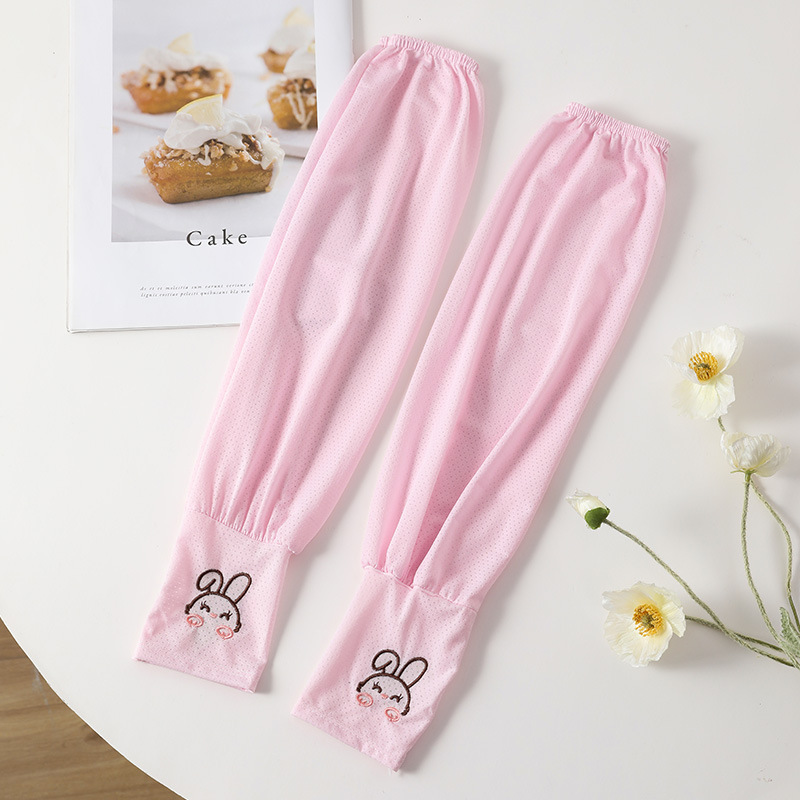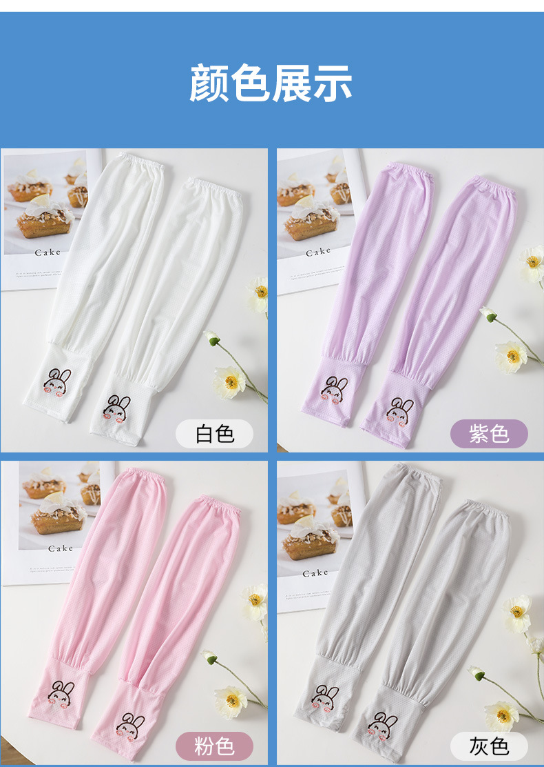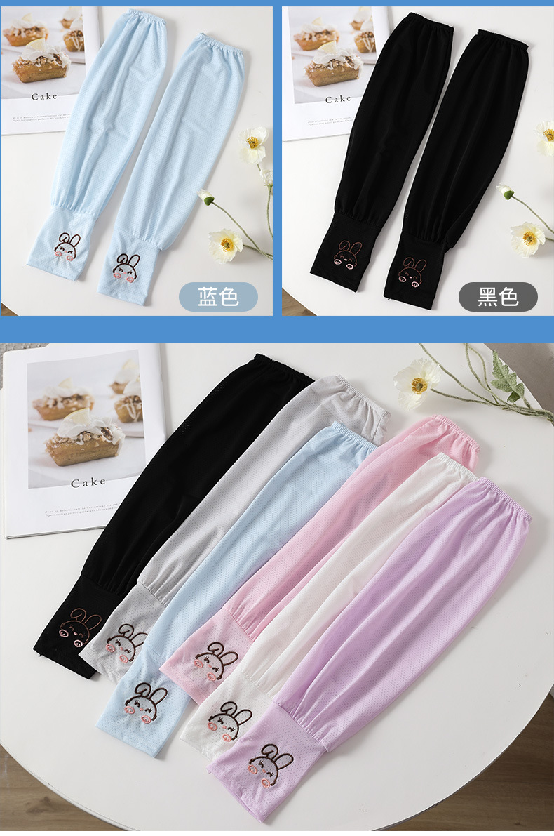 夏季女款冰丝透气网孔加大宽松户外防晒袖套卡通兔子防晒冰袖批发
