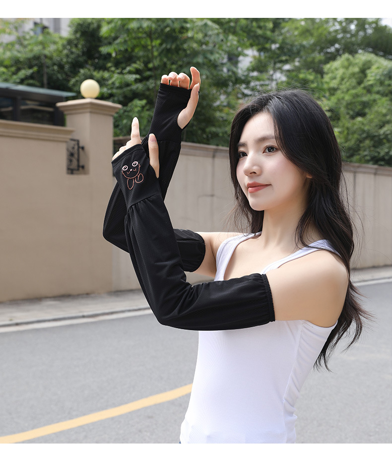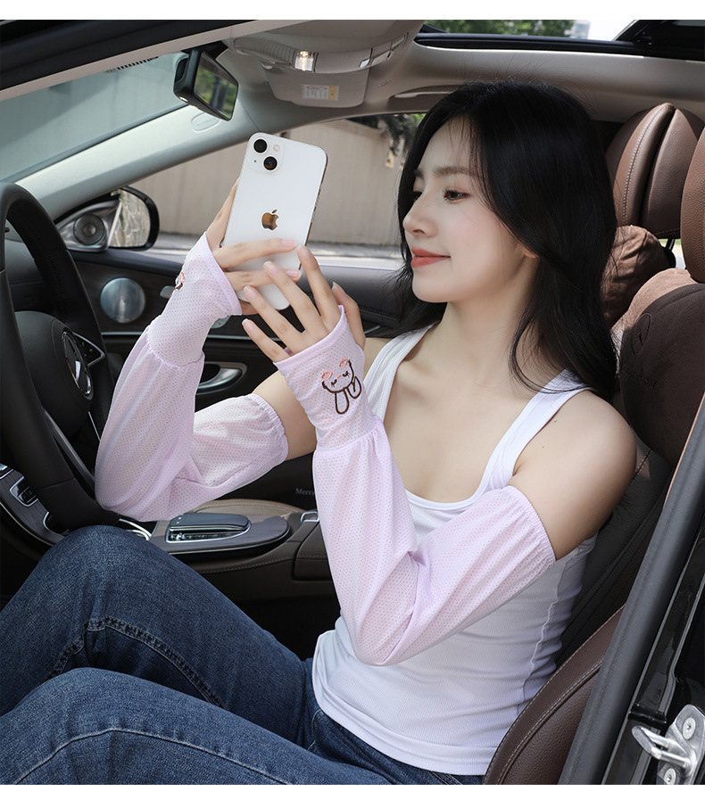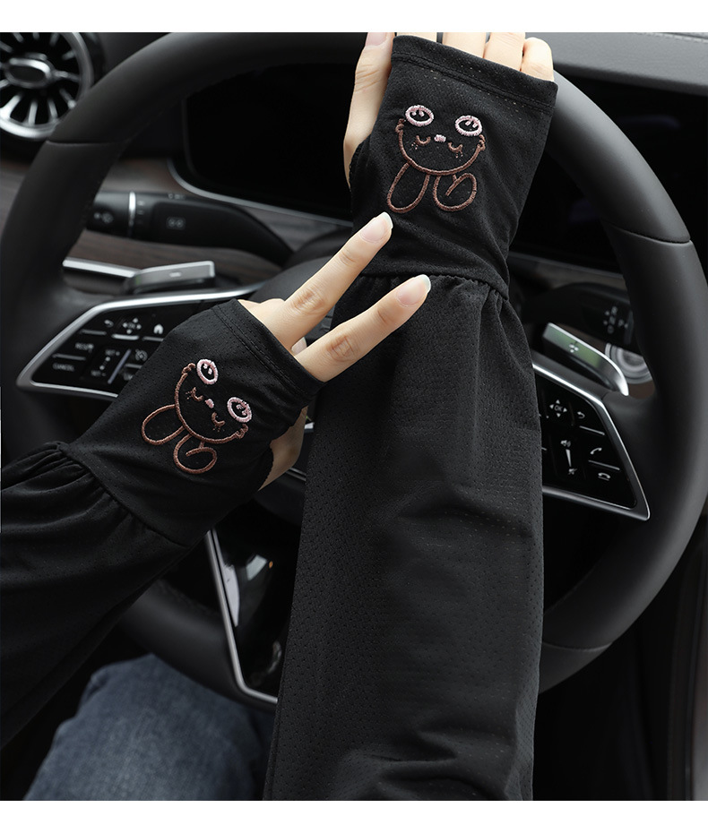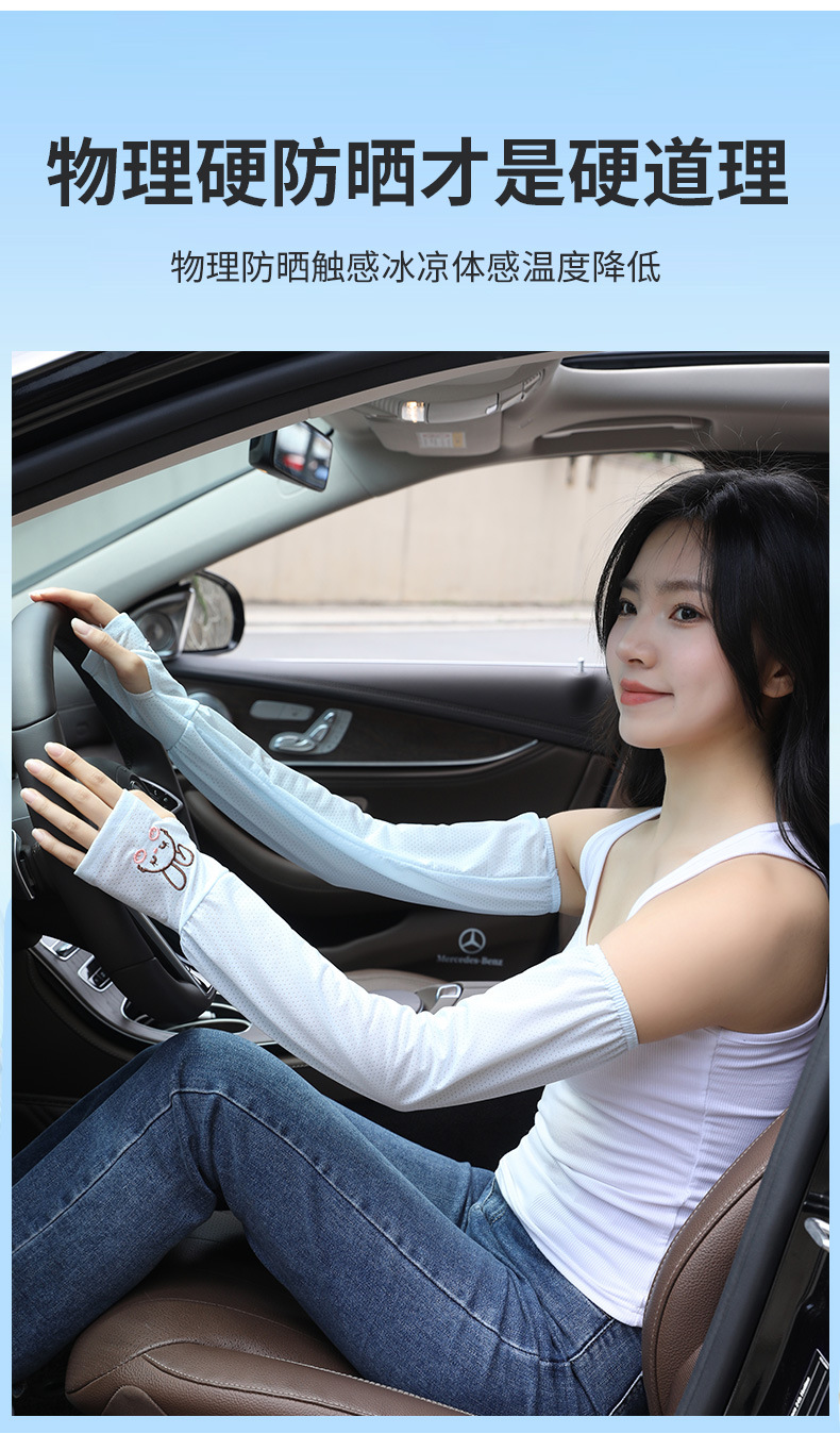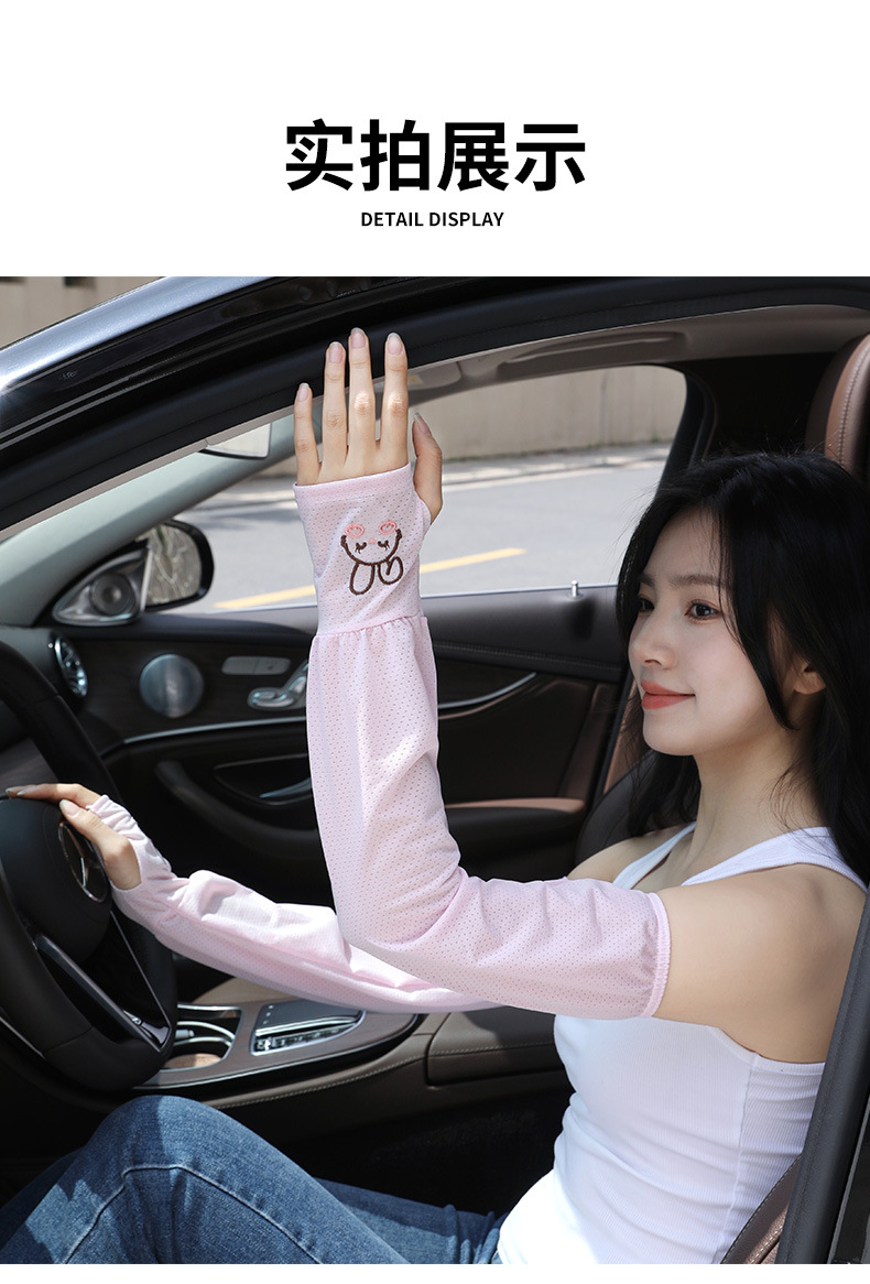 夏季女款冰丝透气网孔加大宽松户外防晒袖套卡通兔子防晒冰袖批发