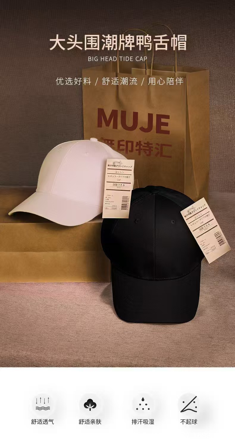无印日系光板帽子男夏季防晒户外遮阳帽棒球帽大头围鸭舌帽显脸小