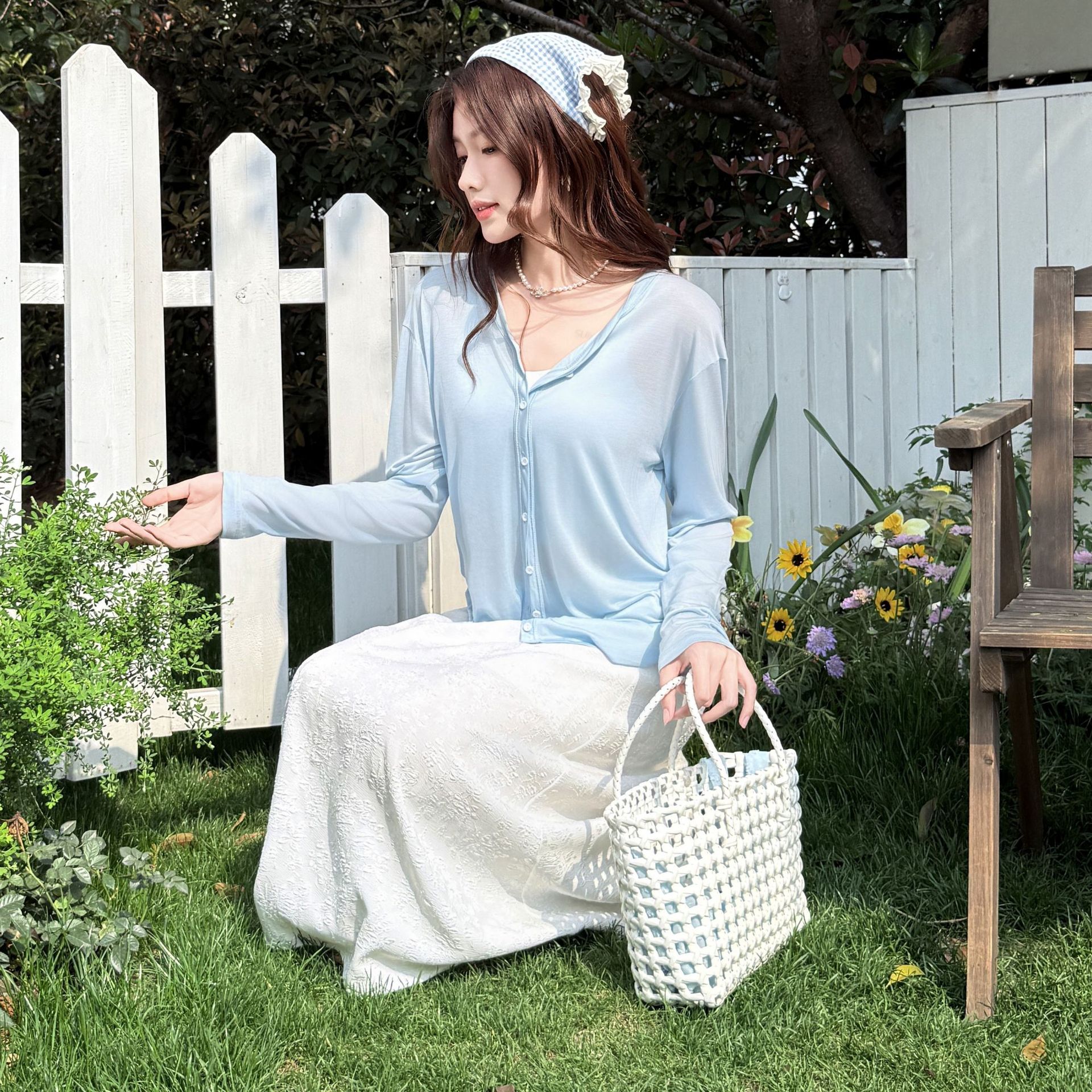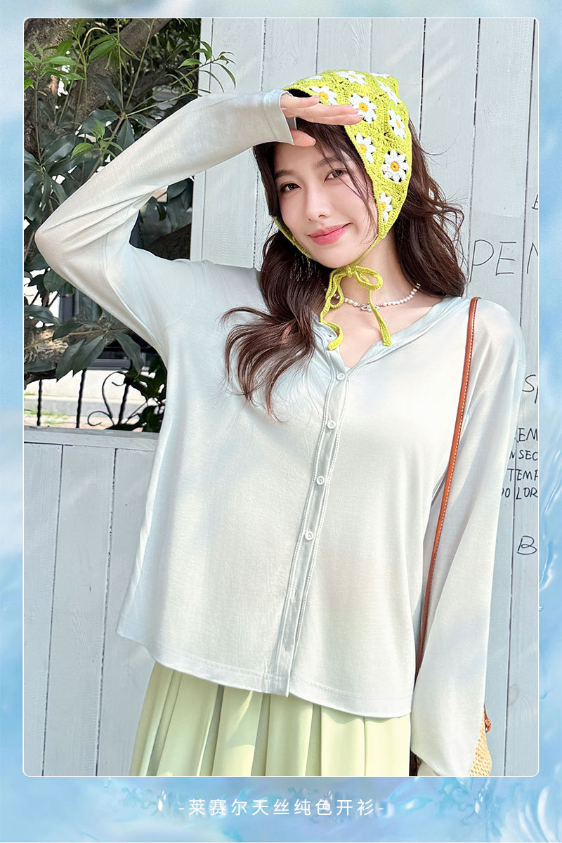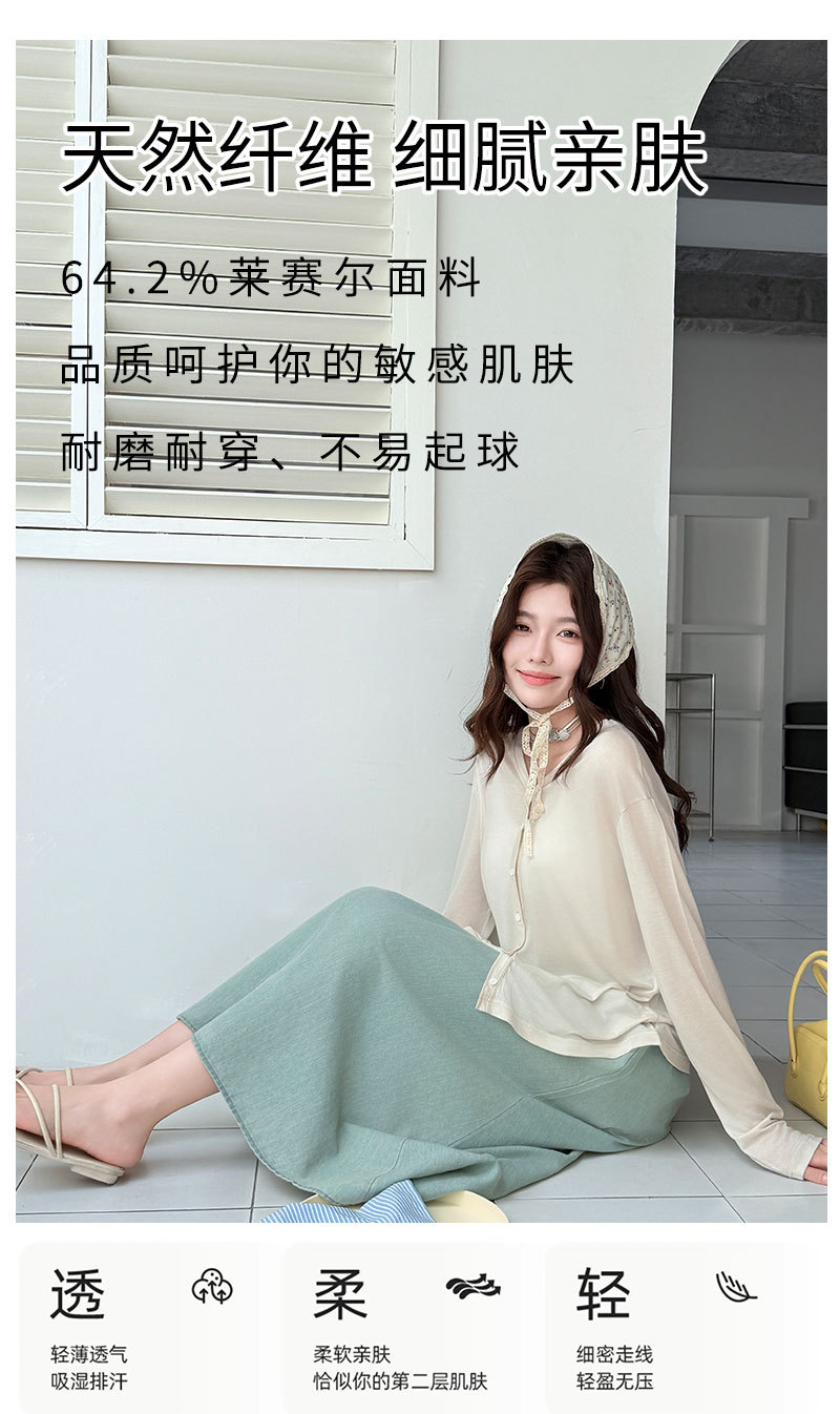 森系休闲风莱赛尔天丝开衫防晒空调杉春夏配裙子薄款针织女士上衣