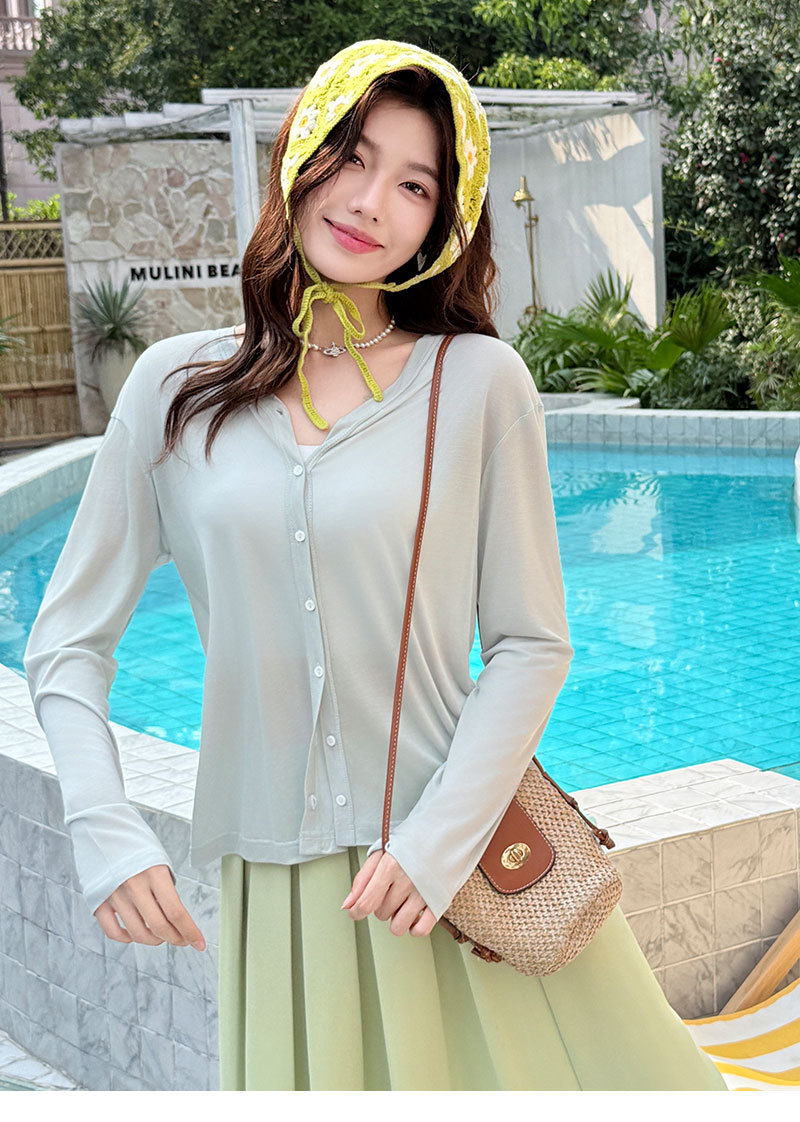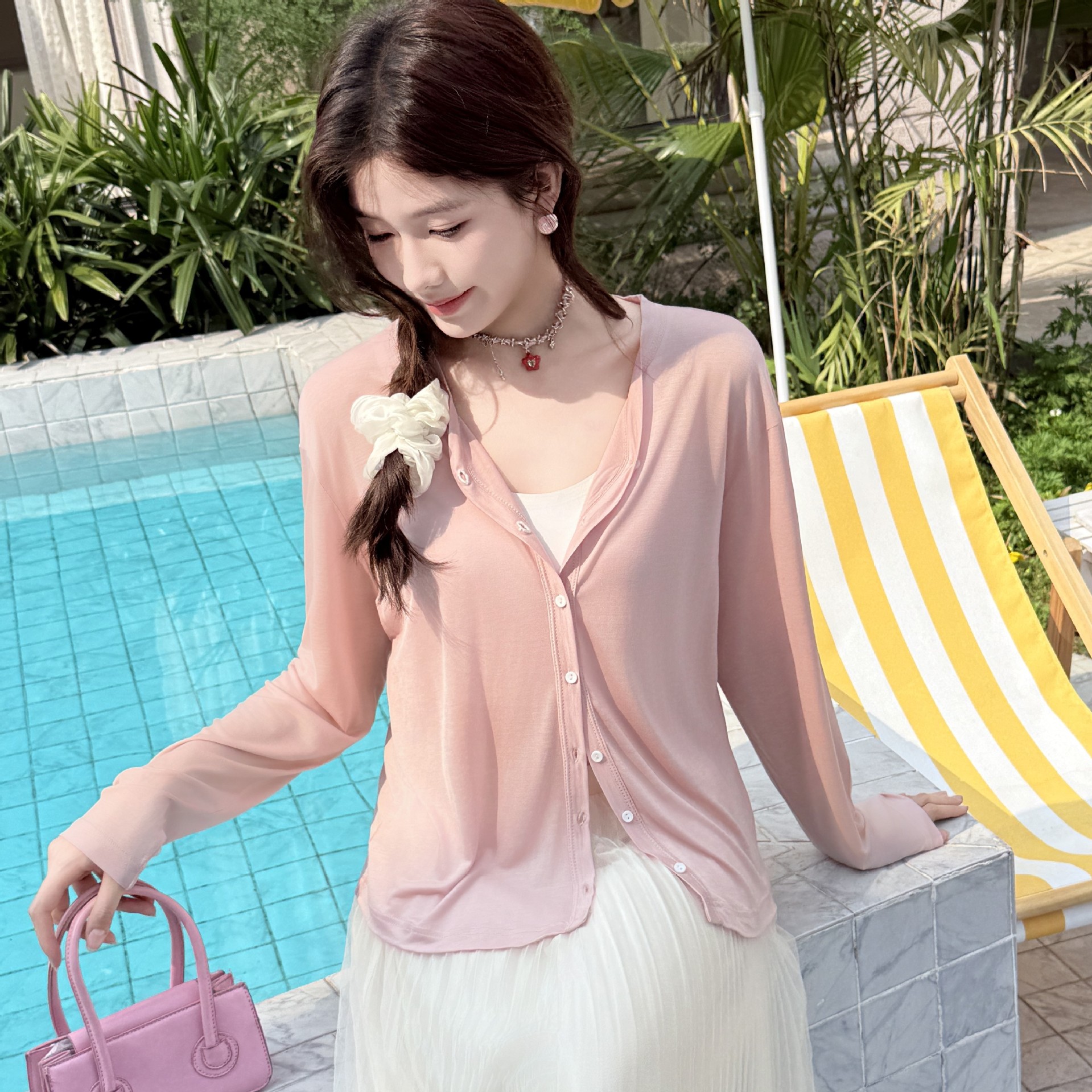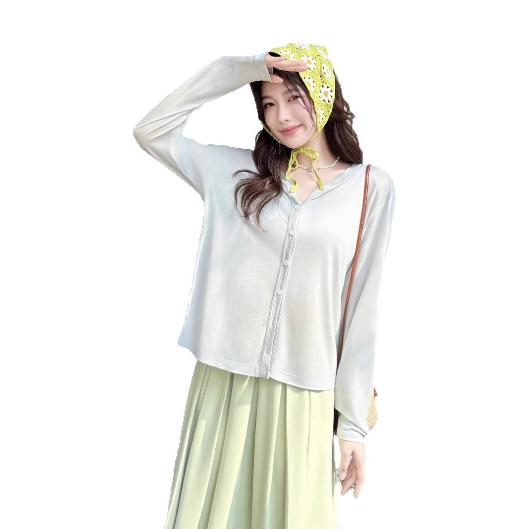 森系休闲风莱赛尔天丝开衫防晒空调杉春夏配裙子薄款针织女士上衣
