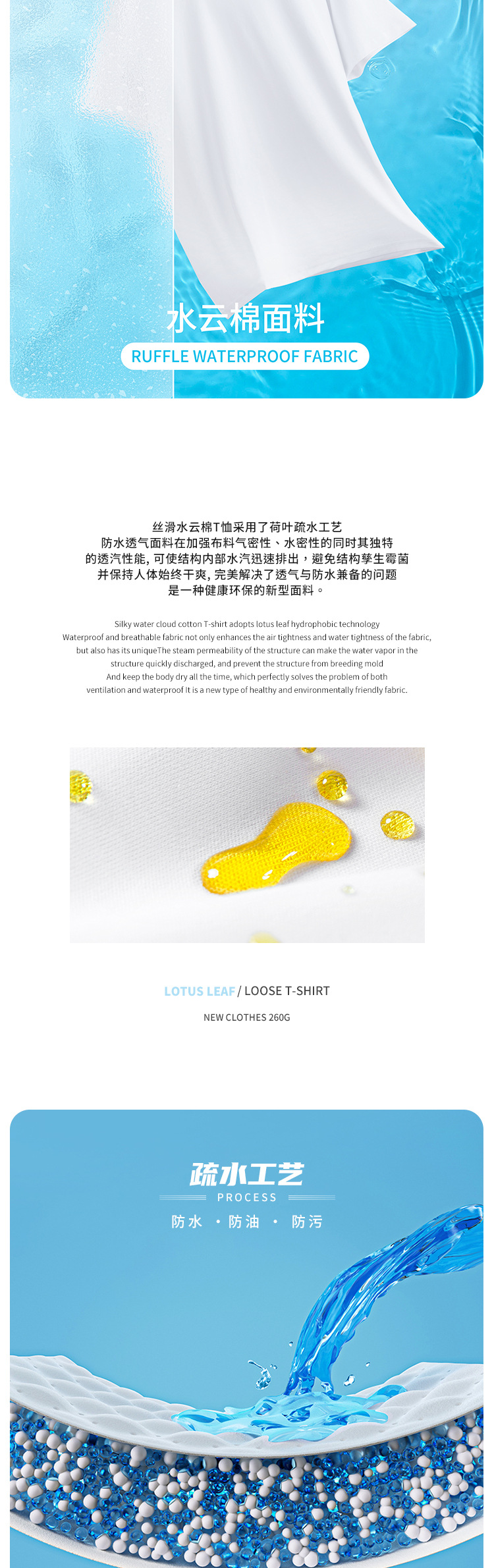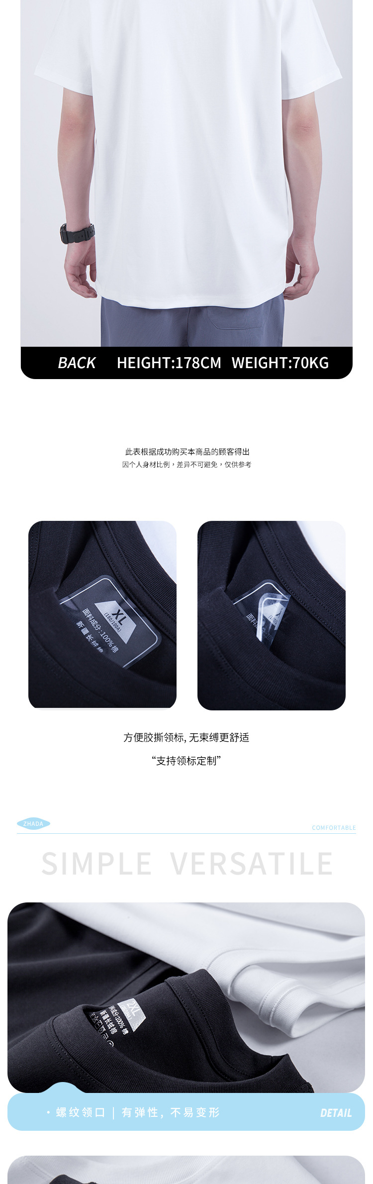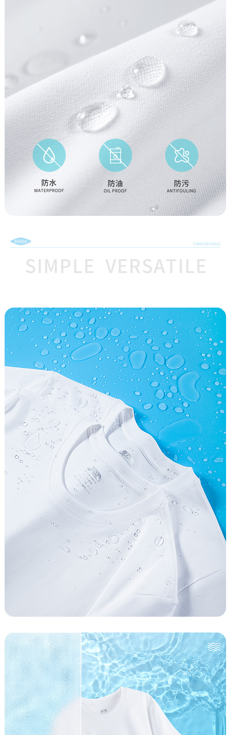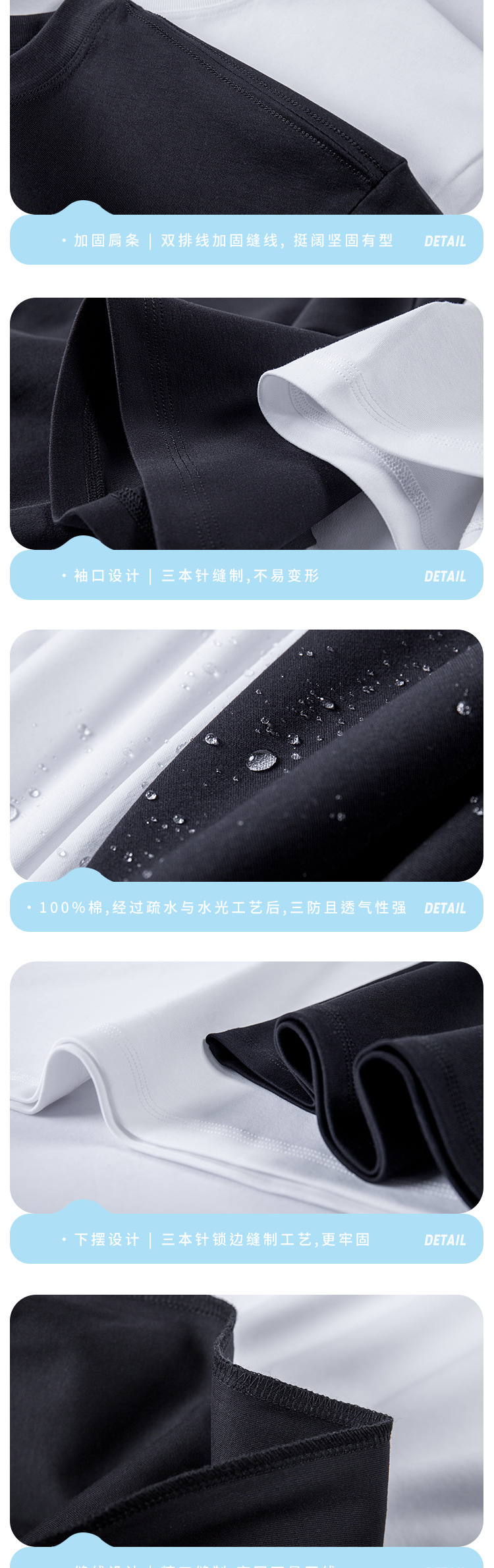 第三代水云棉防污渍男女圆领短袖t恤夏季纯棉宽松白色半袖三防T恤
