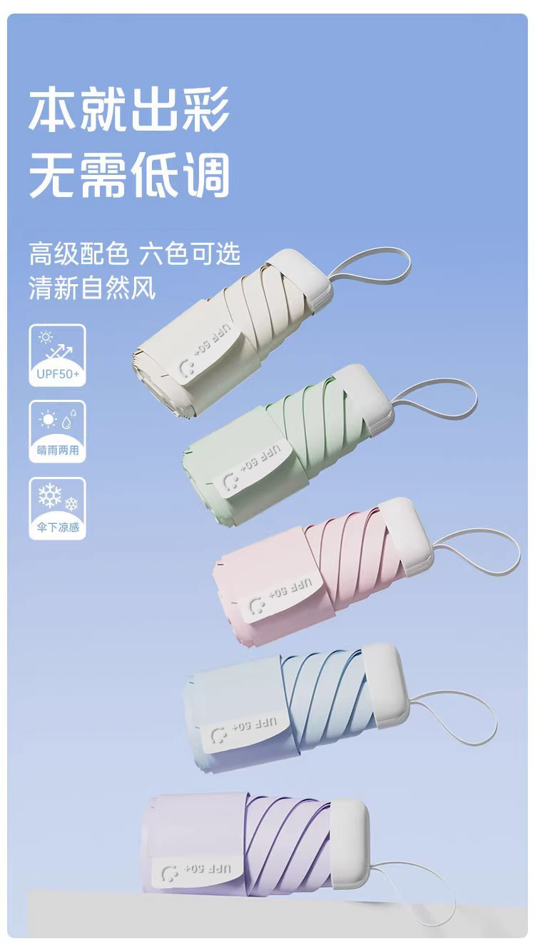 五折扁圆伞晴雨两用女太阳伞防晒防紫外线胶囊伞折叠迷你遮阳雨伞