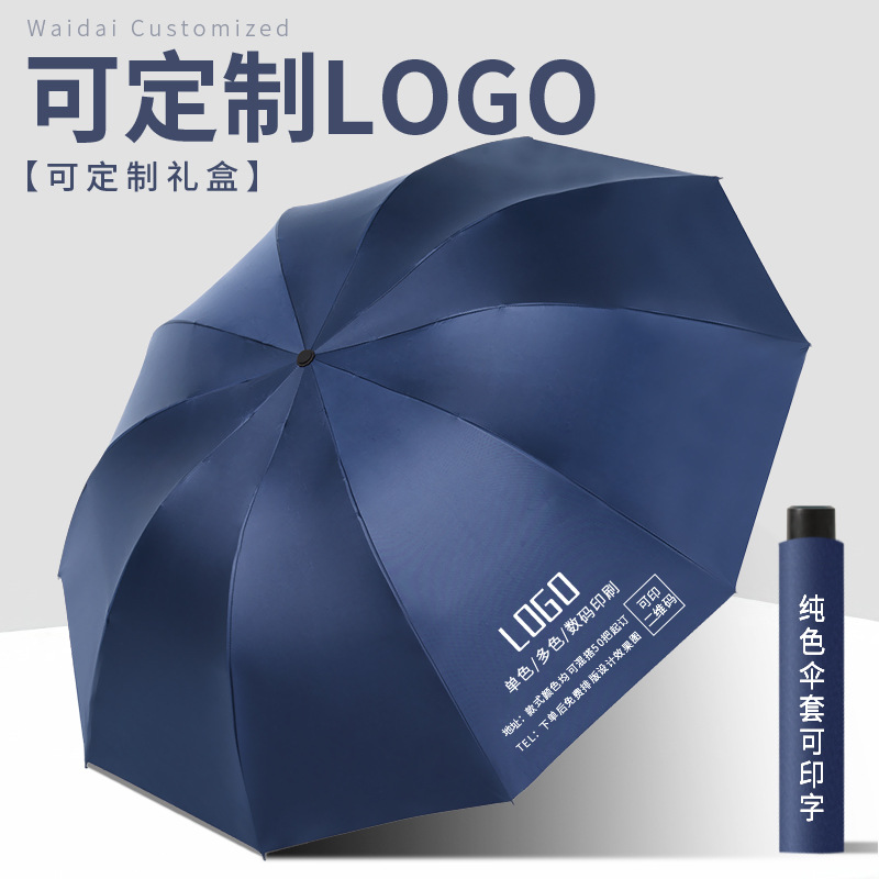 超大号三人黑胶防晒三折叠晴雨伞遮阳伞太阳伞防紫外线印LOGO广告