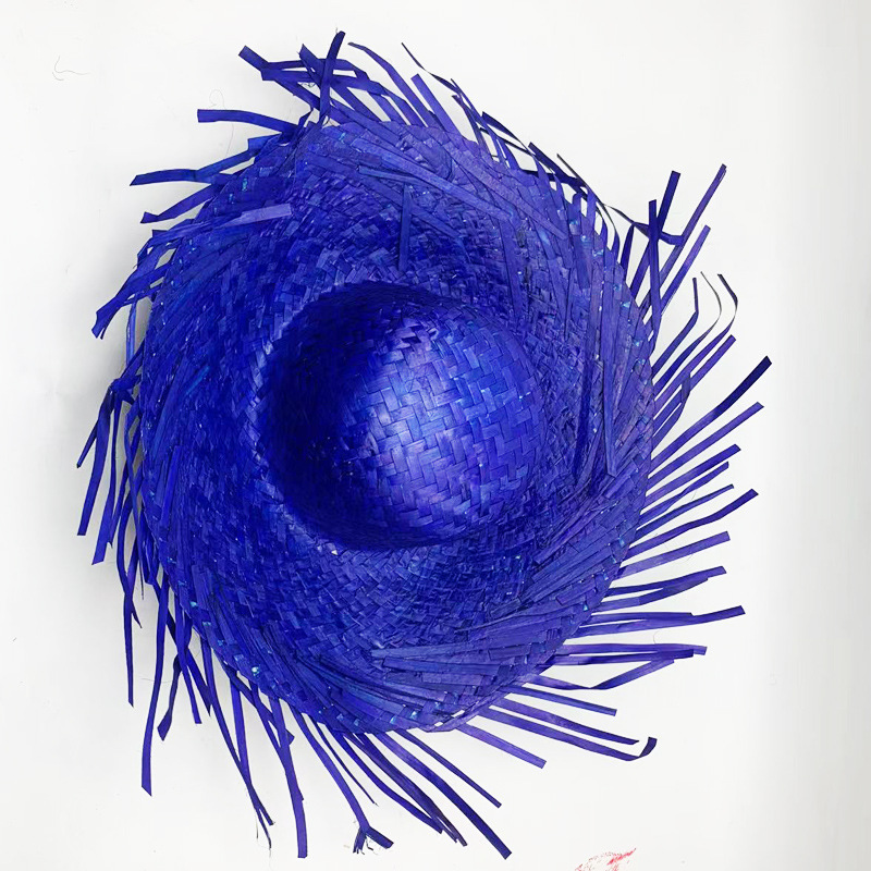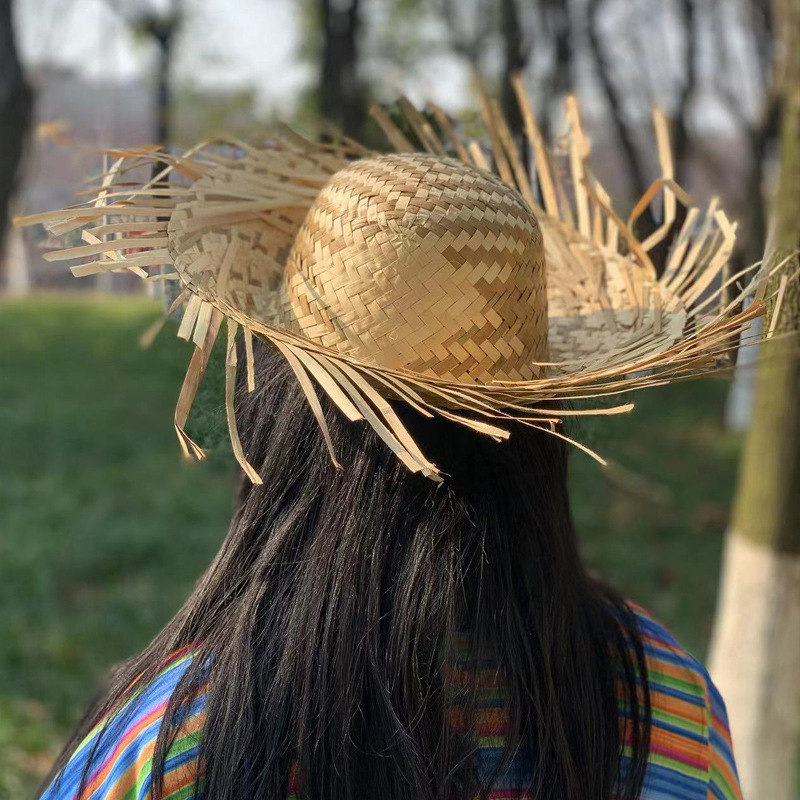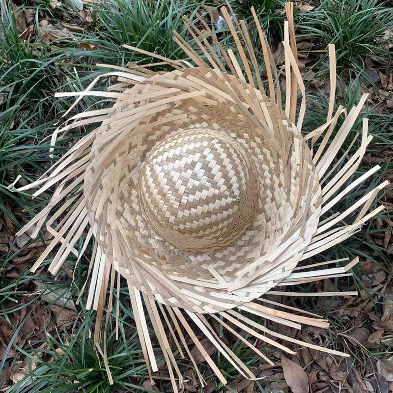 现货沙滩装饰防晒帽 鸡窝葵草帽 散边草帽手工编织复活节草帽