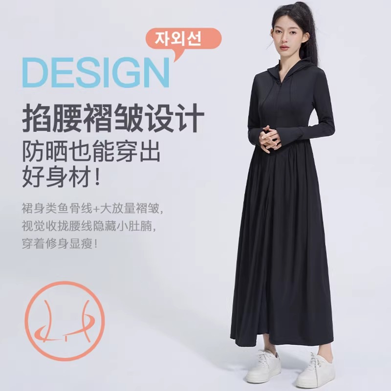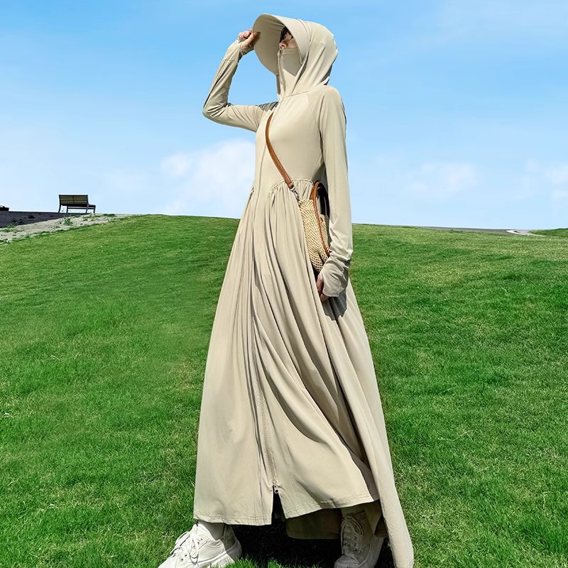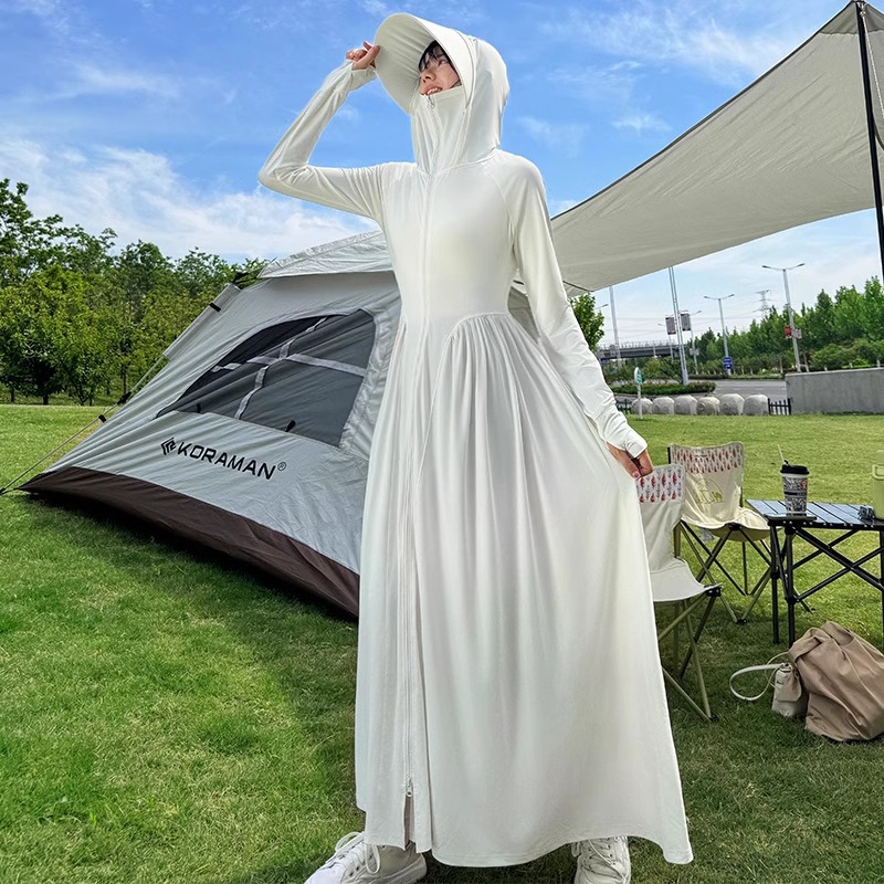 防晒衣女长款全身夏季新款防紫外防晒服连衣裙收腰长裙薄外套开衫