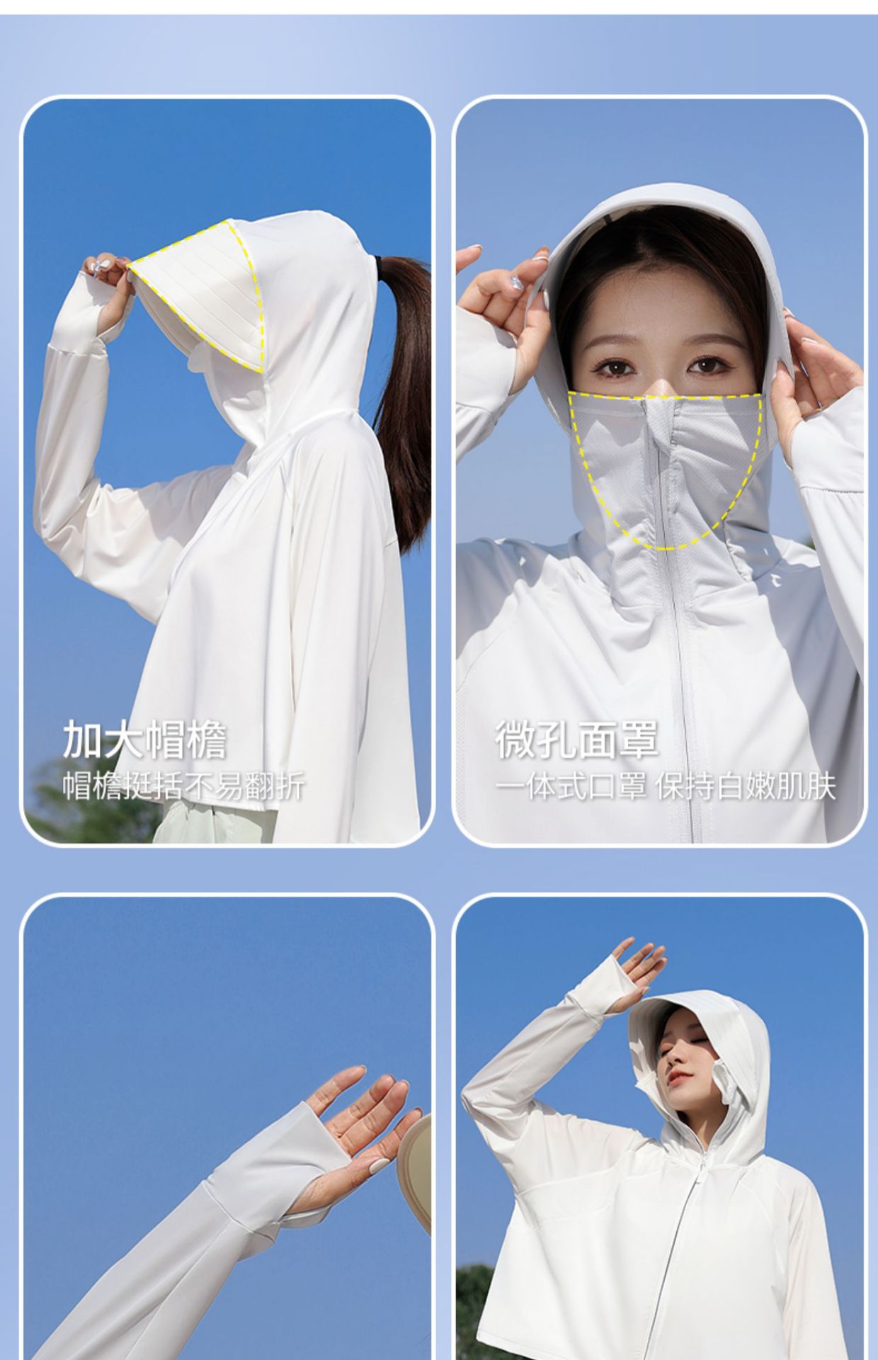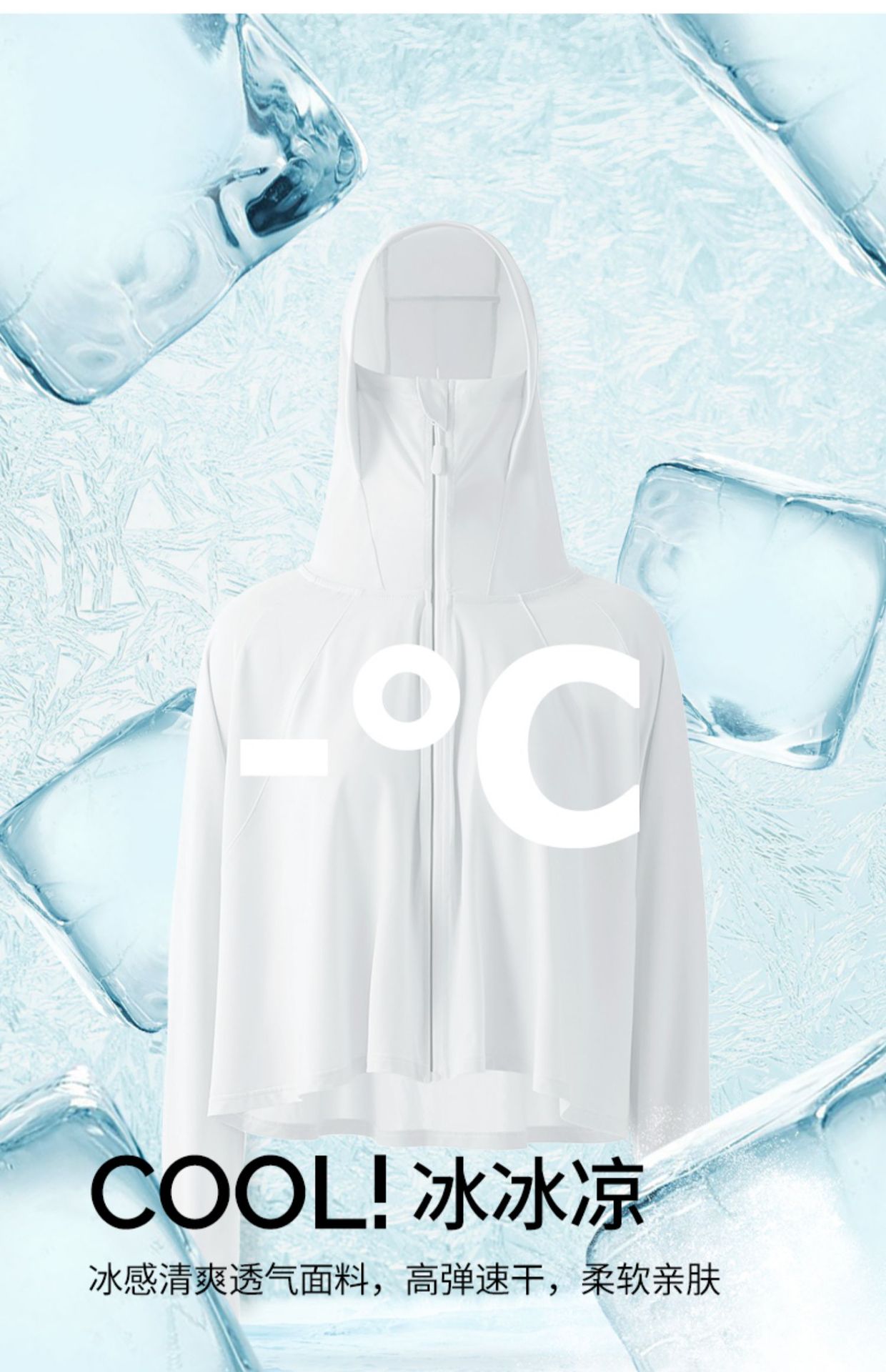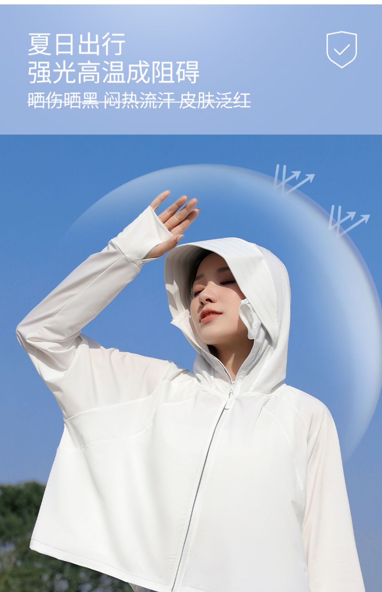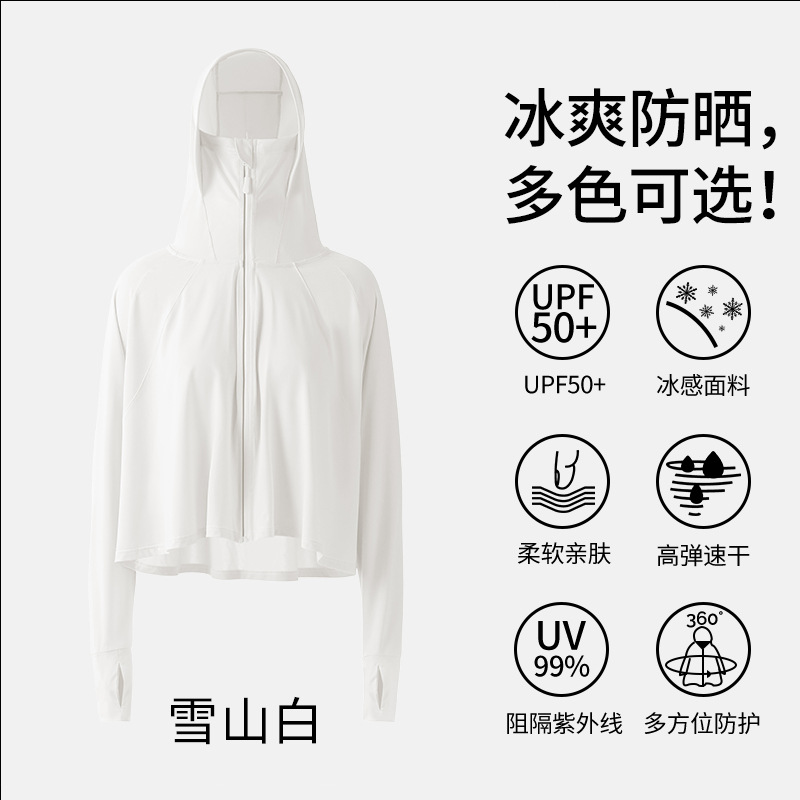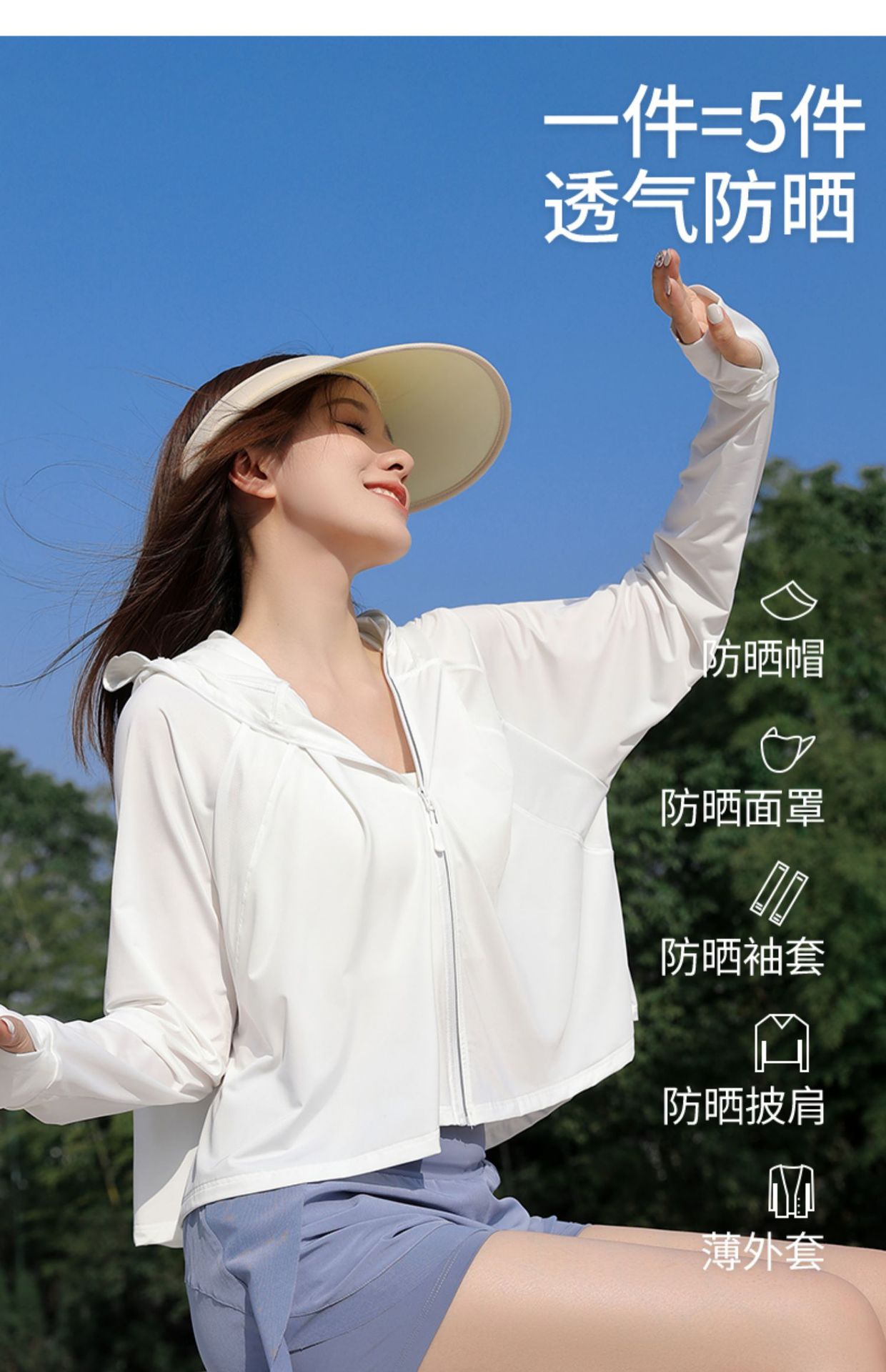 夏季新款冰丝薄款防紫外线短款连帽长袖白色夏季外套防晒衣女春季