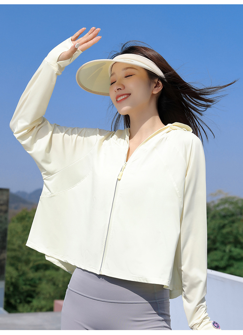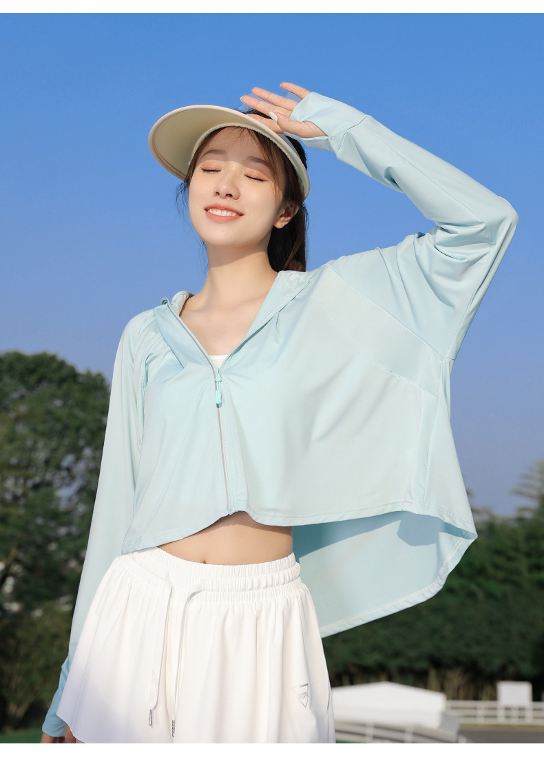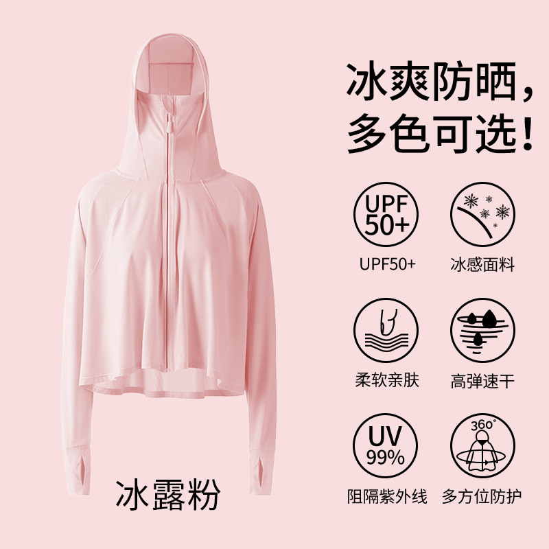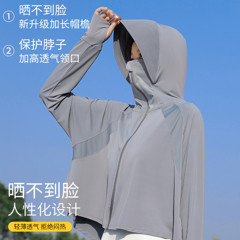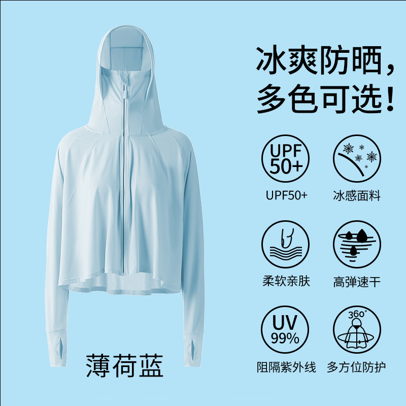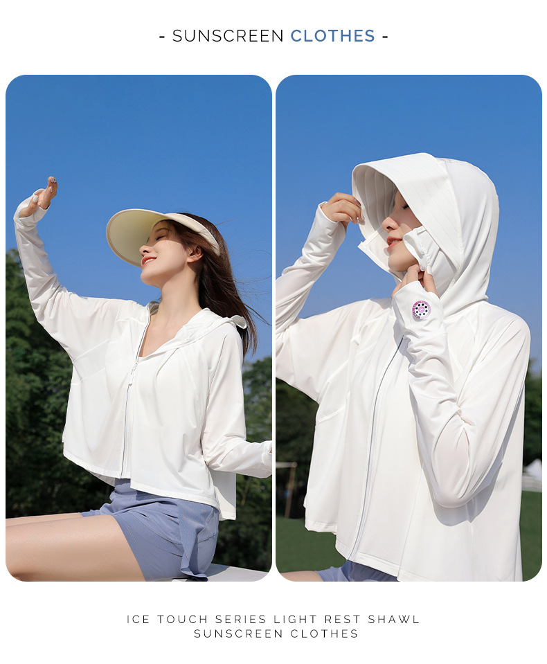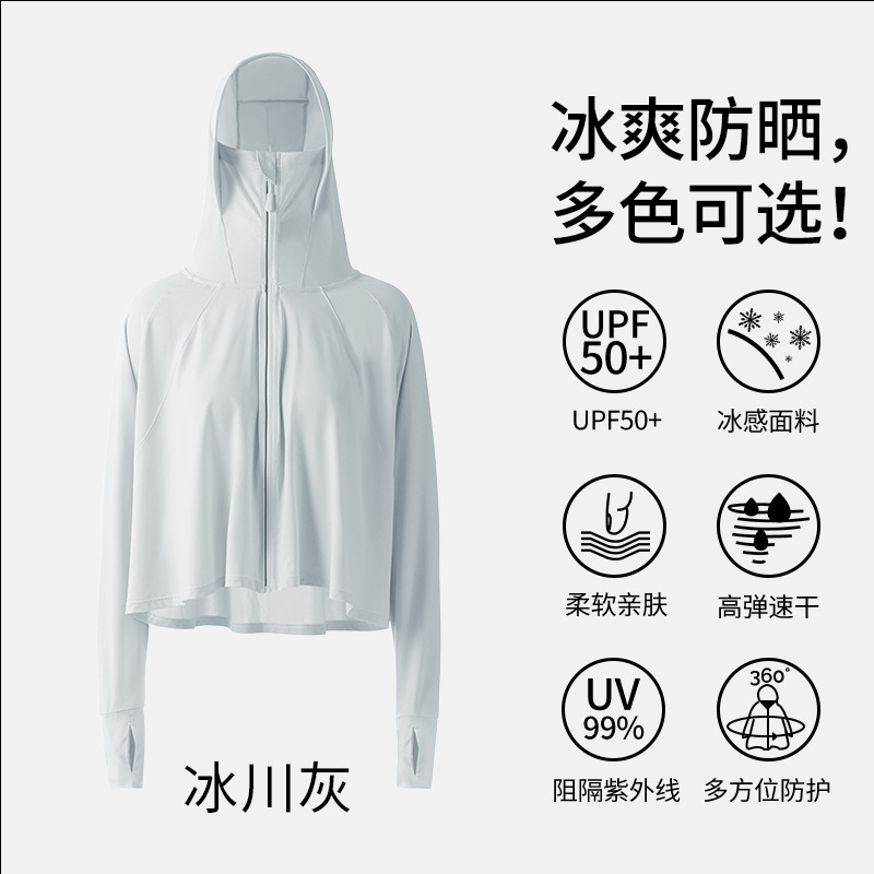 夏季新款冰丝薄款防紫外线短款连帽长袖白色夏季外套防晒衣女春季