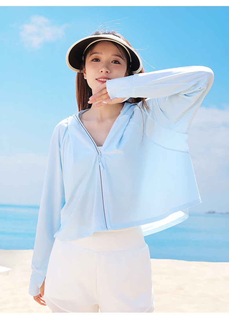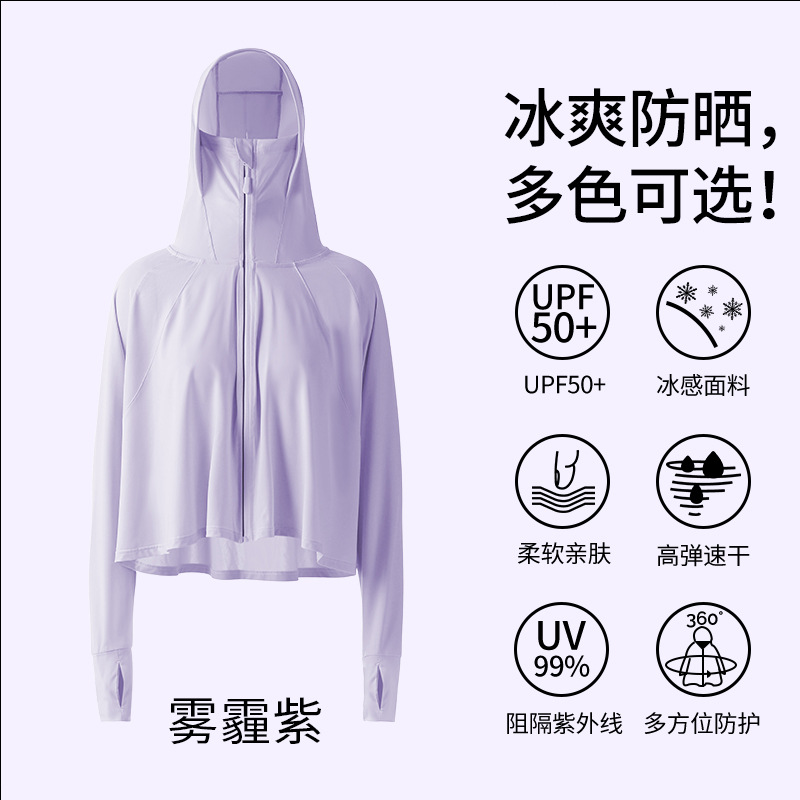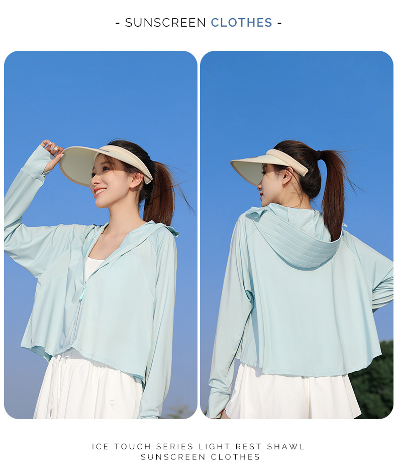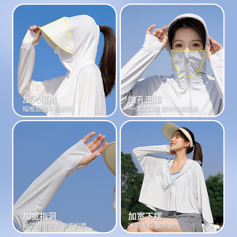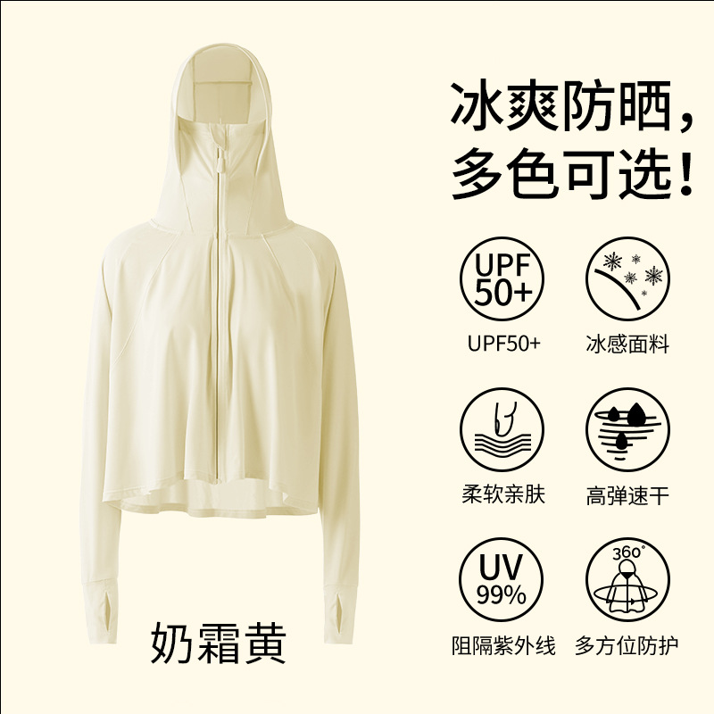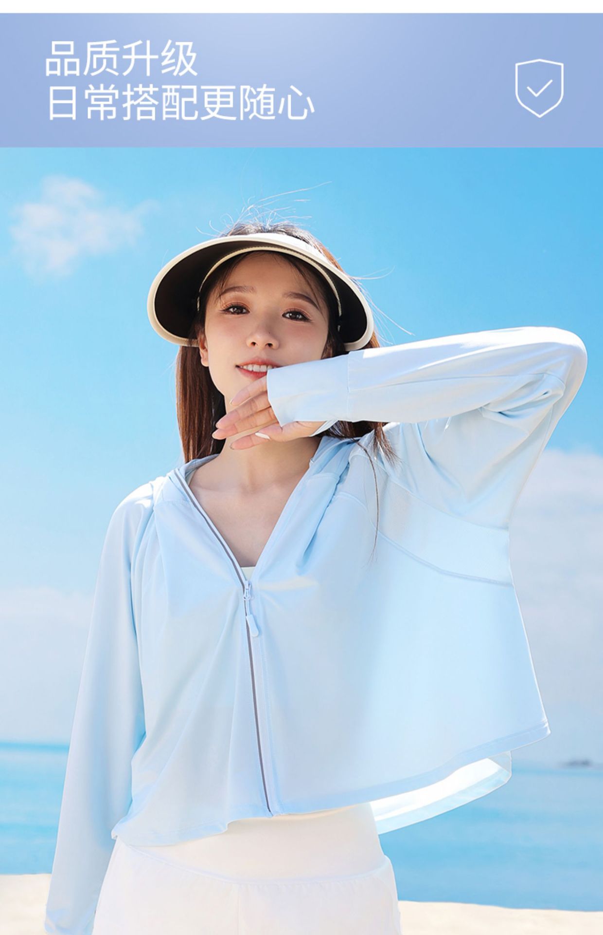 夏季新款冰丝薄款防紫外线短款连帽长袖白色夏季外套防晒衣女春季