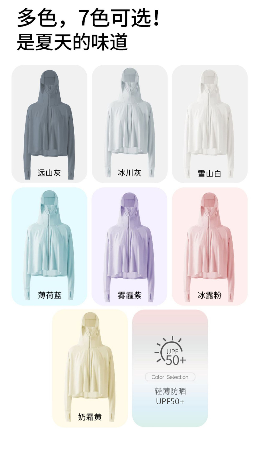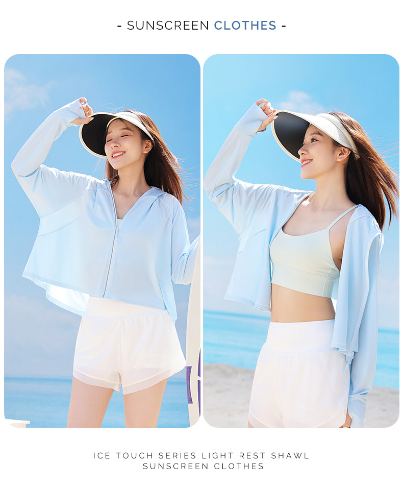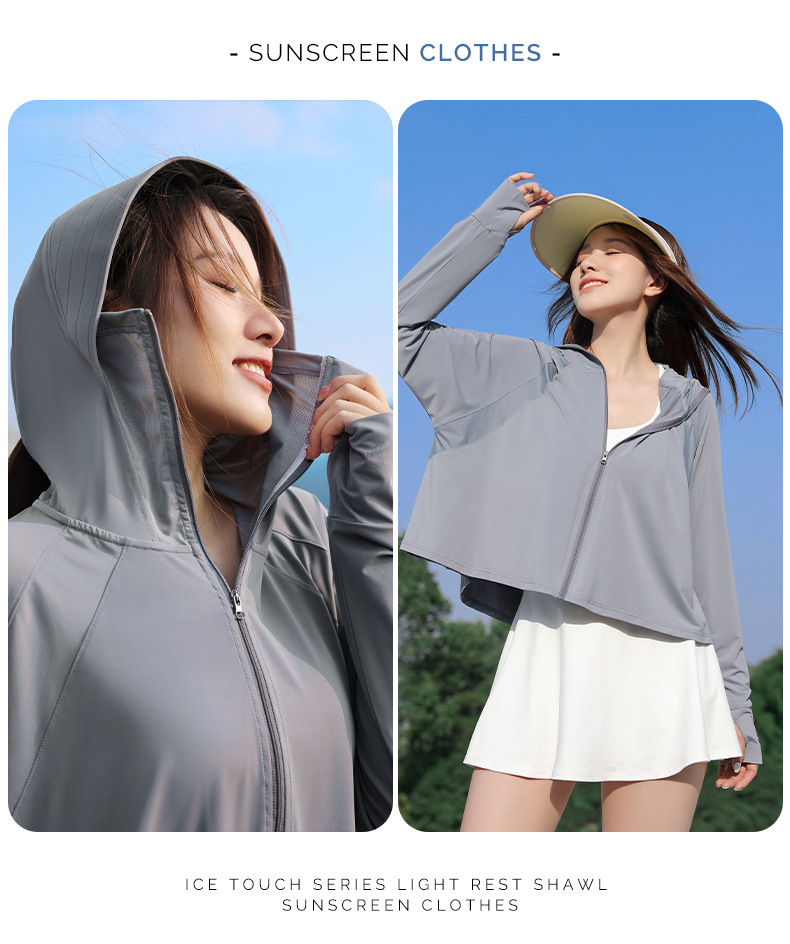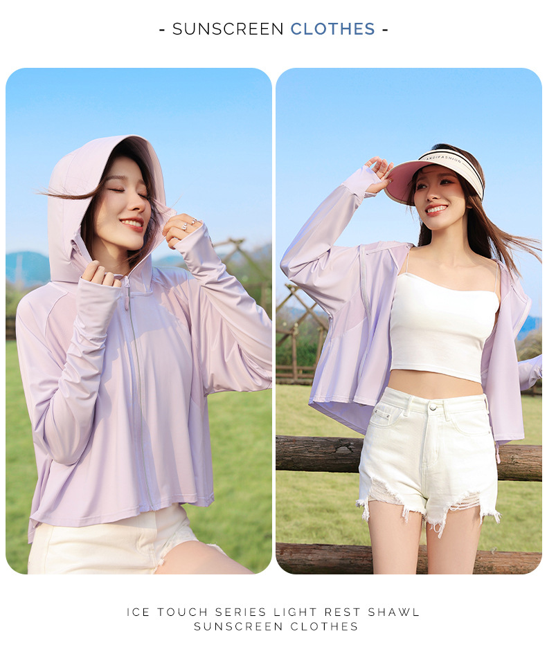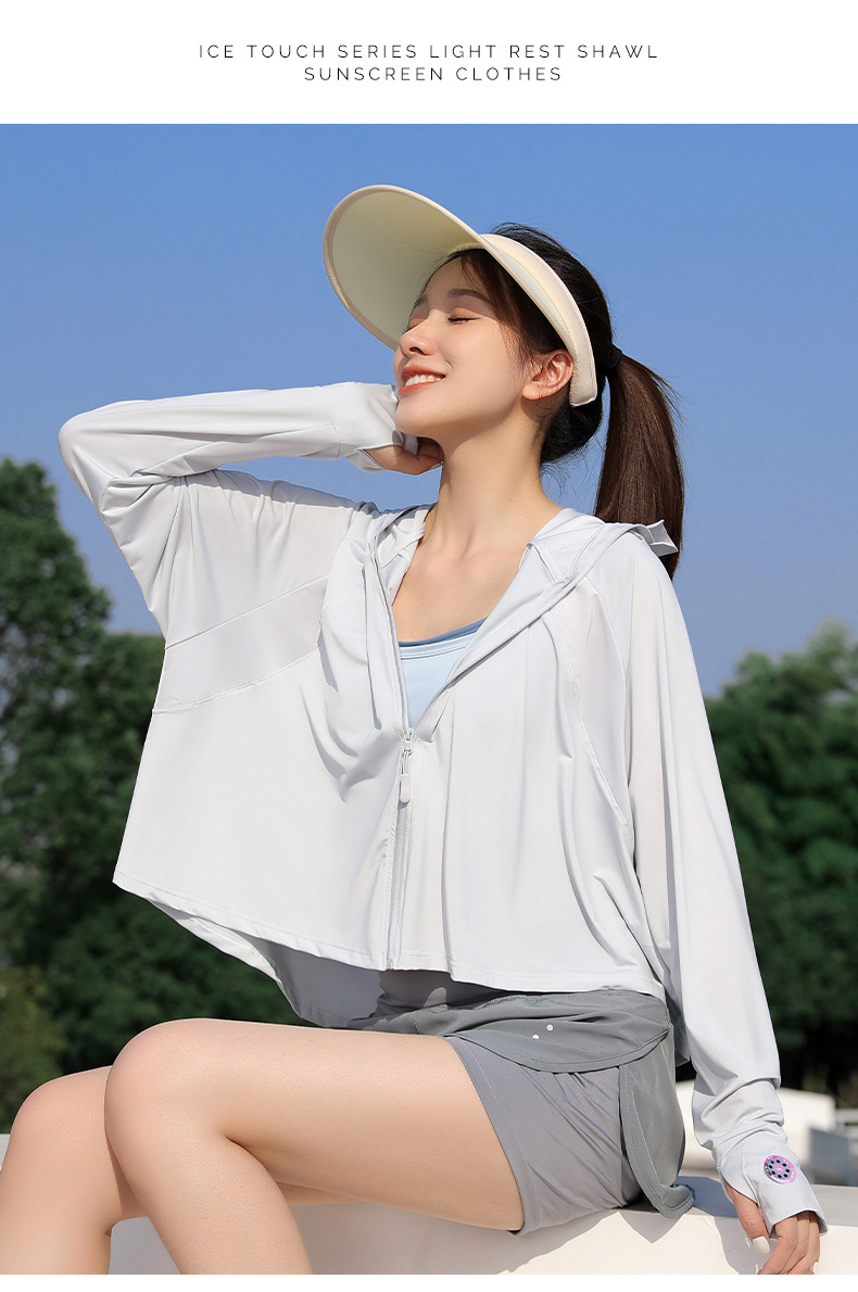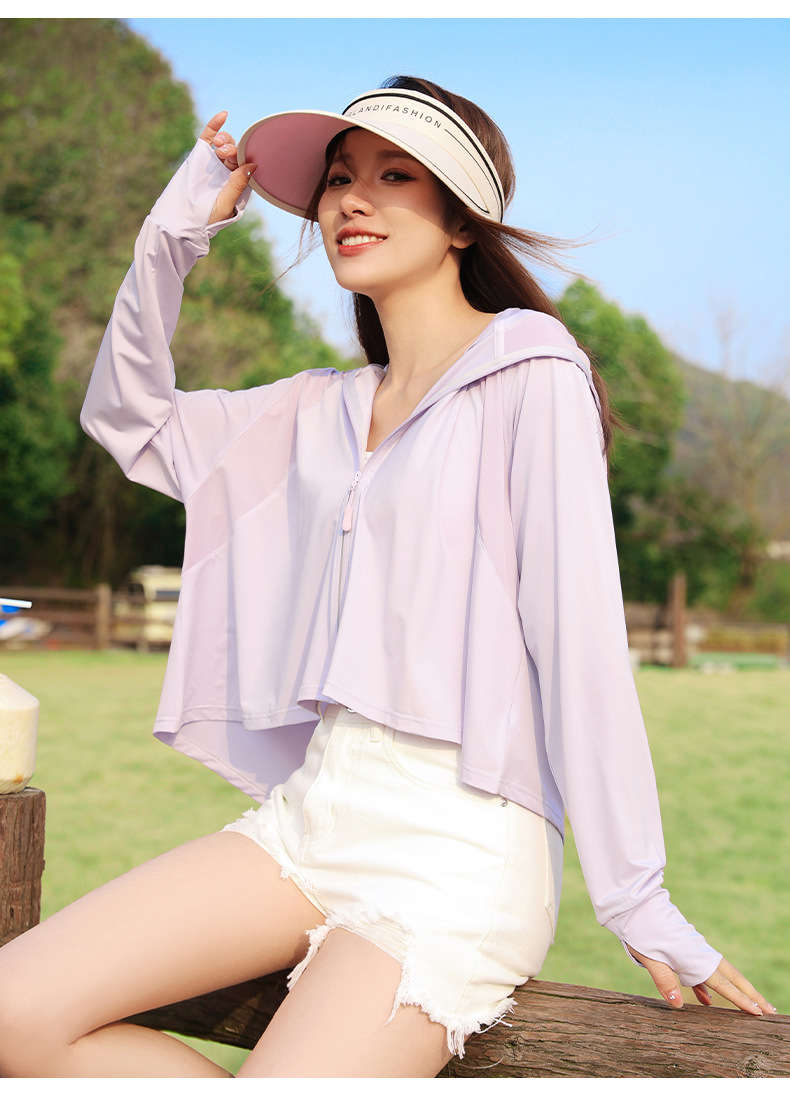 夏季新款冰丝薄款防紫外线短款连帽长袖白色夏季外套防晒衣女春季