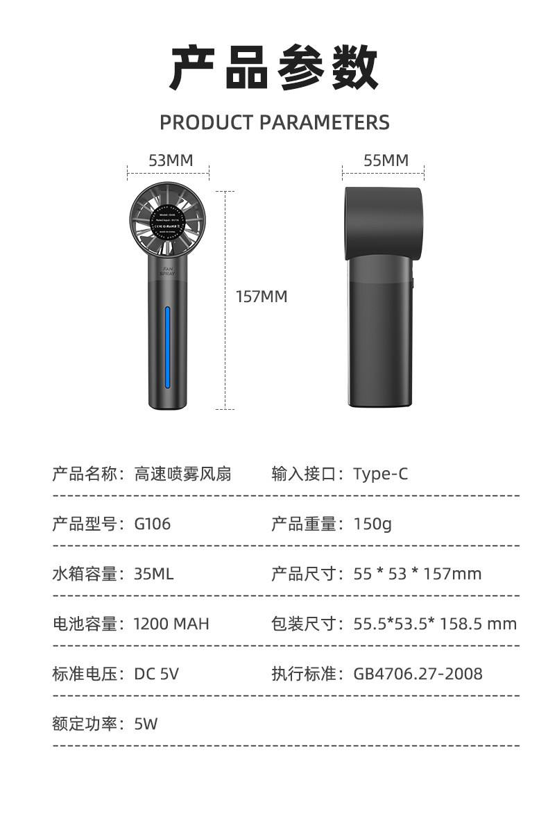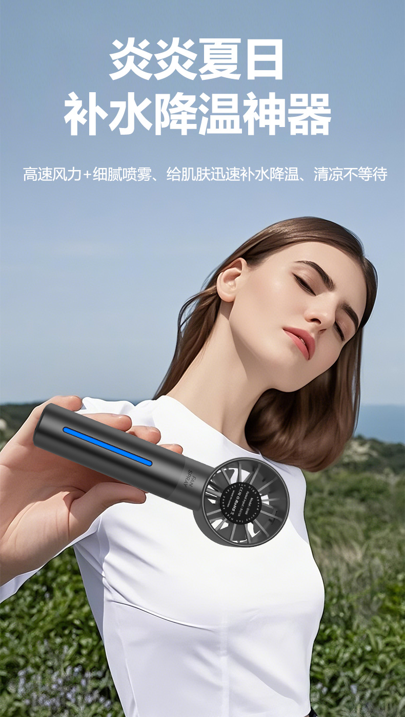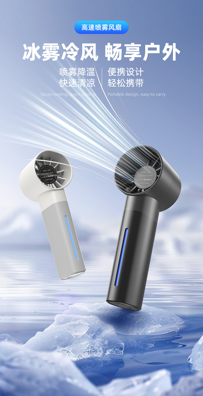 跨境超高速喷雾风扇USB充电便携涡轮暴力补水户外手持无刷小风扇