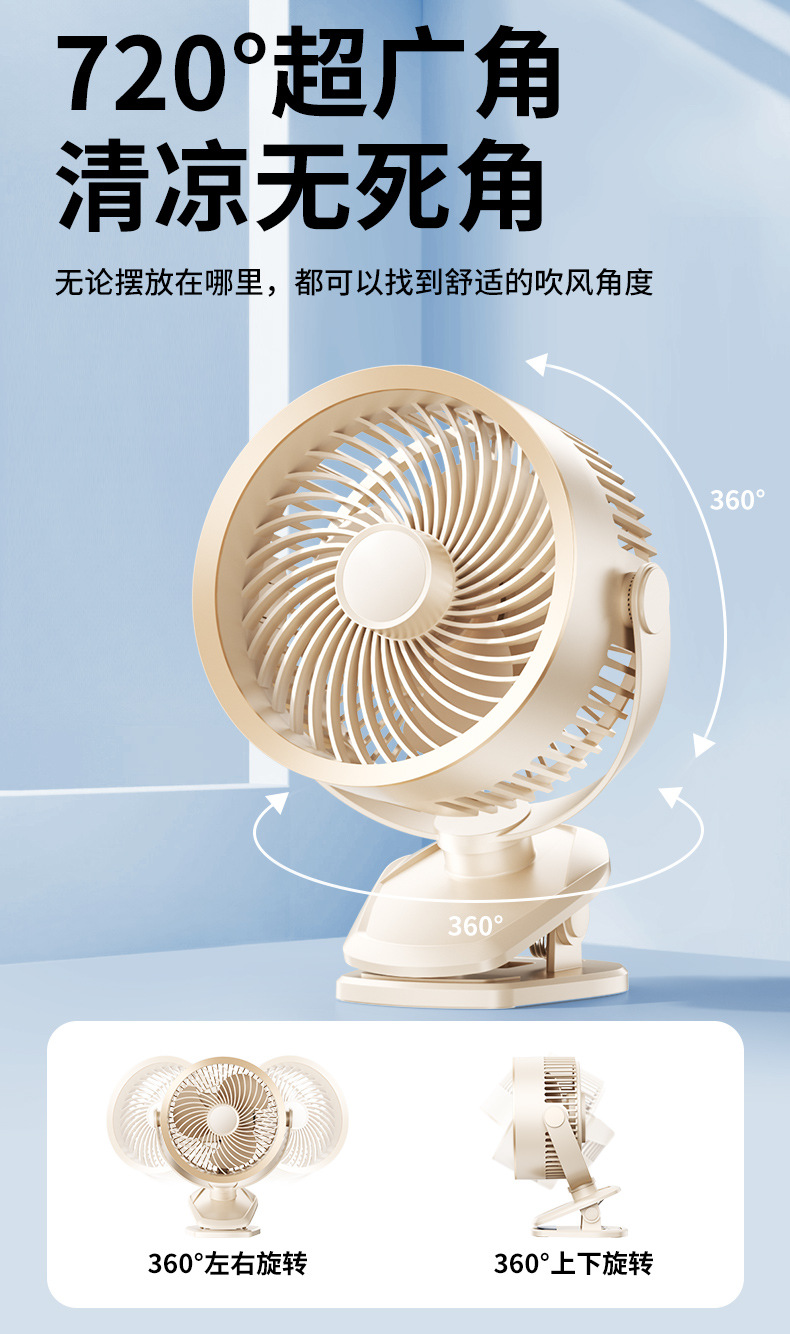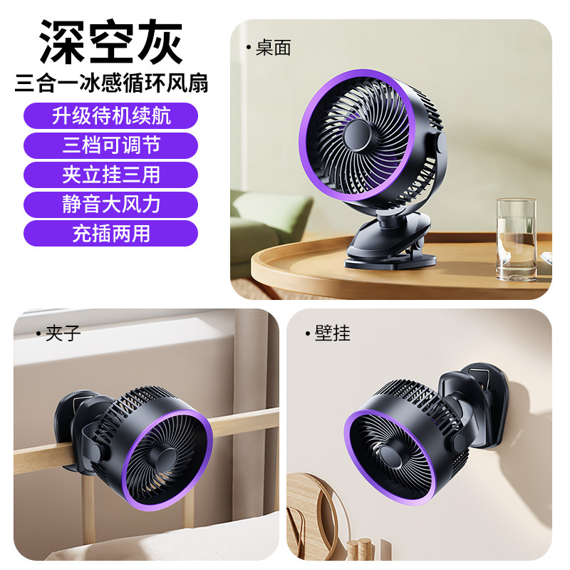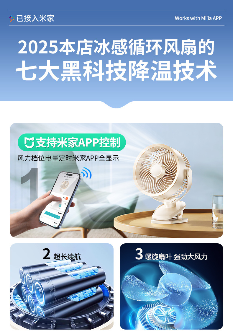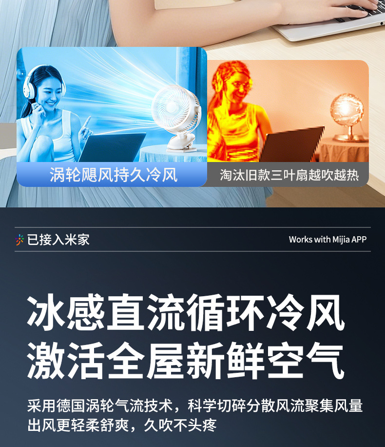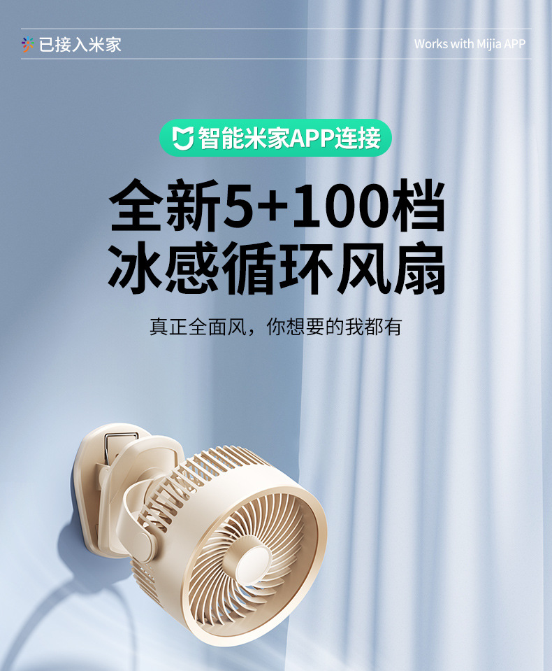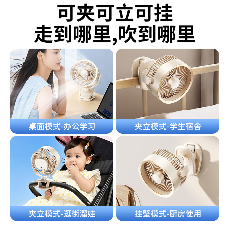跨境新款夹子风扇夜灯照明迷你充电空气循环米家APP控制壁挂风扇