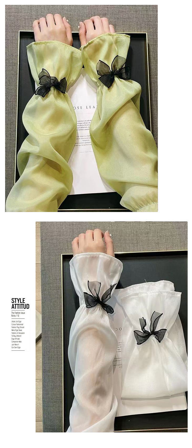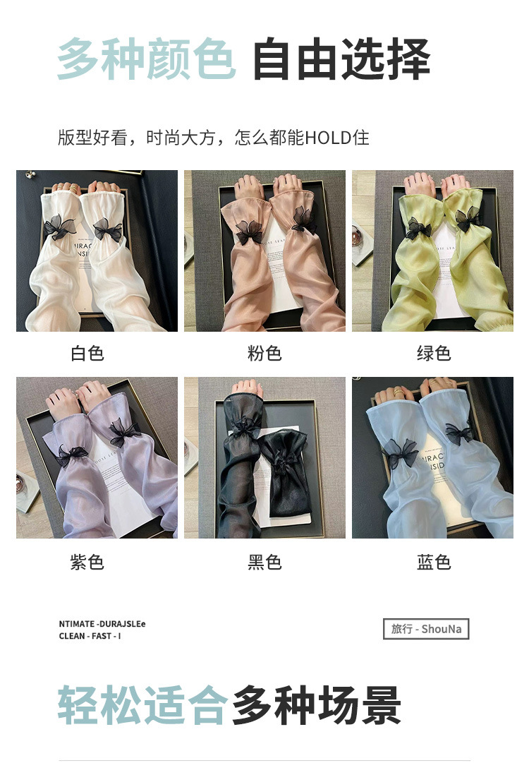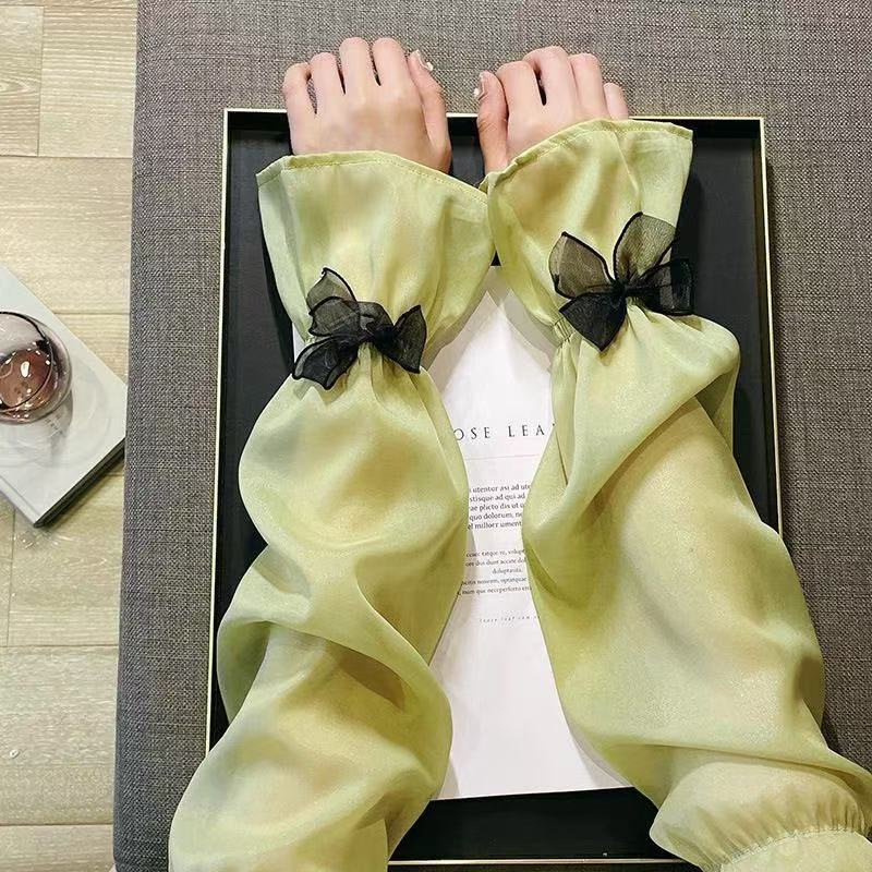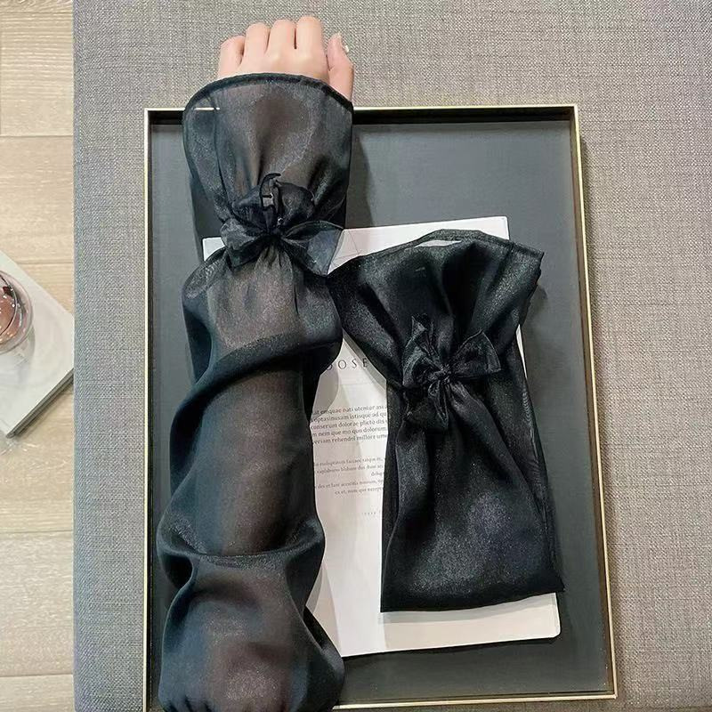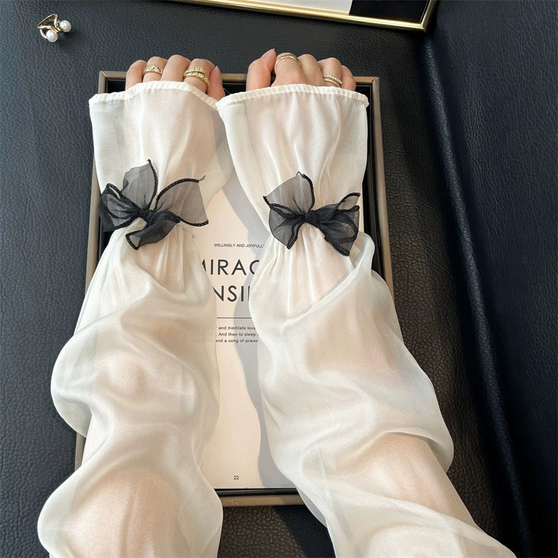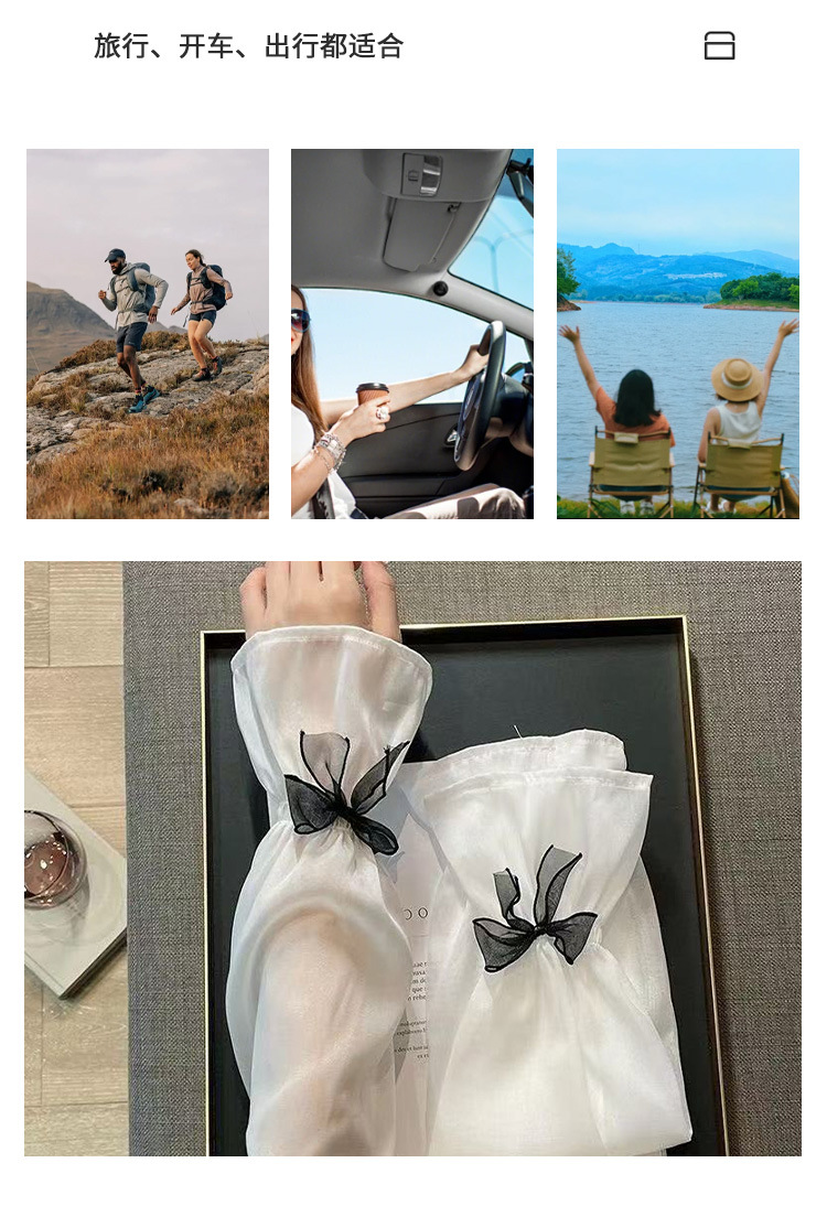 夏季宽松蝴蝶结冰丝冰袖女户外开车骑行手袖薄款遮阳护手臂套袖