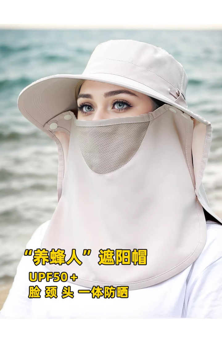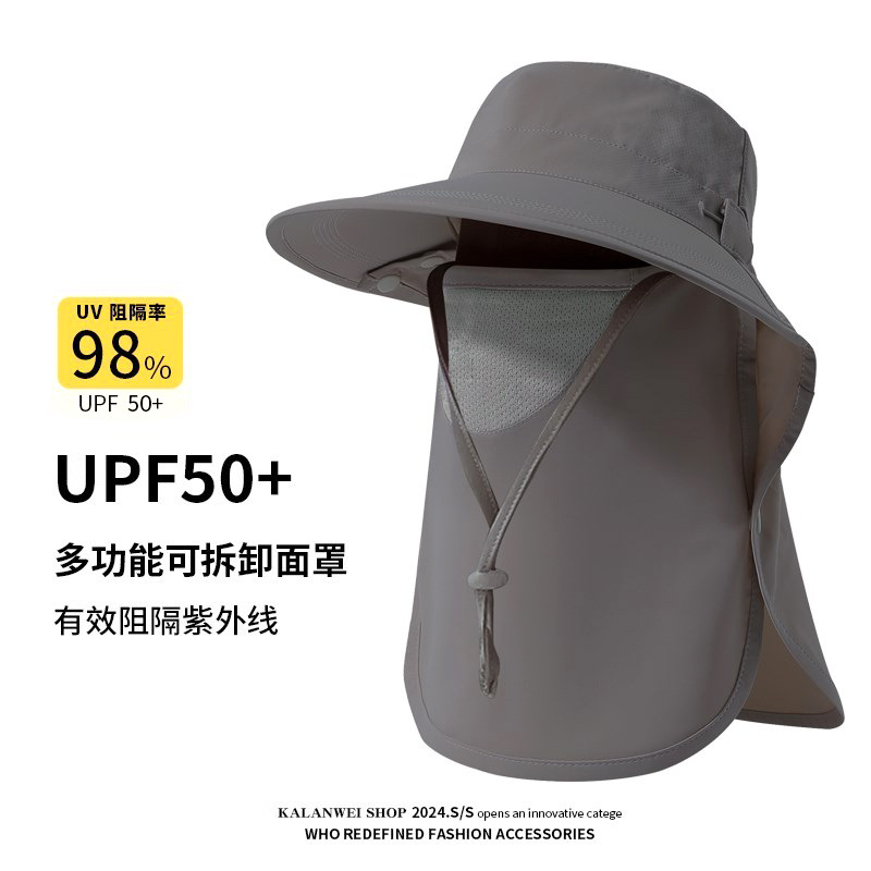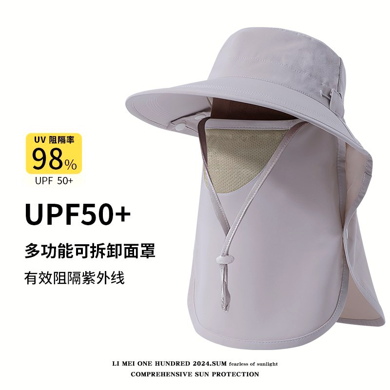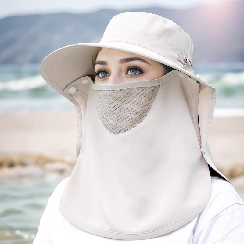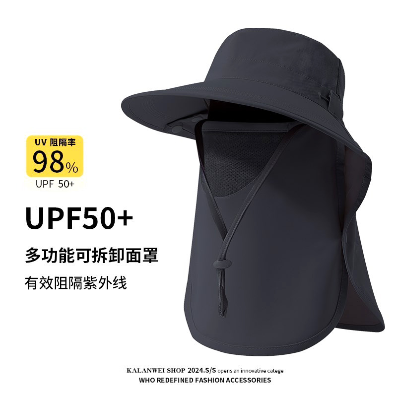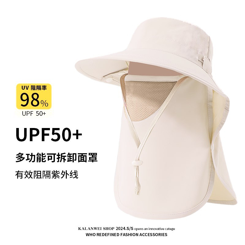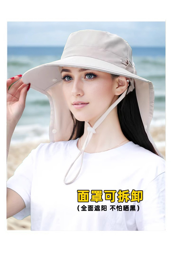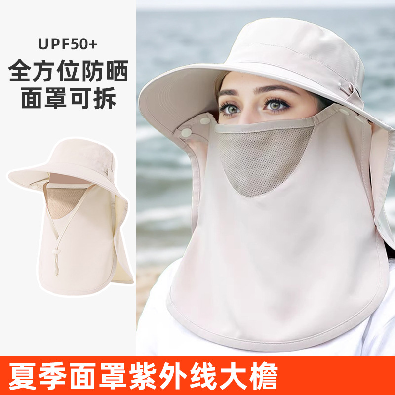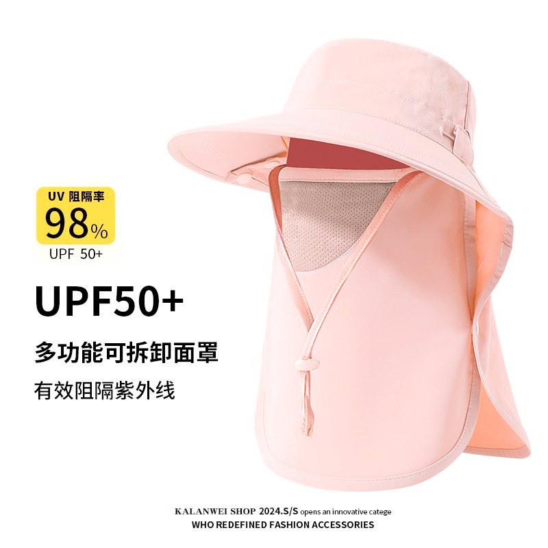 夏季披肩大檐防晒帽护颈面罩一体户外遮阳防紫外线空顶骑行渔夫帽