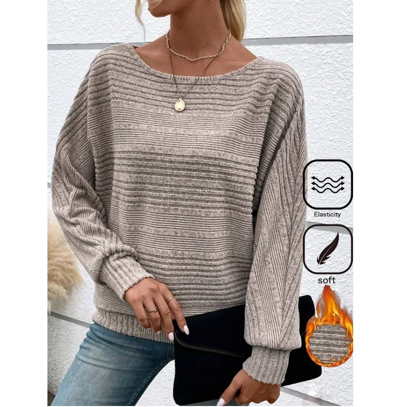 欧美跨境亚马逊秋冬新款舒适休闲纯色长袖圆领拼接套头上衣T恤女