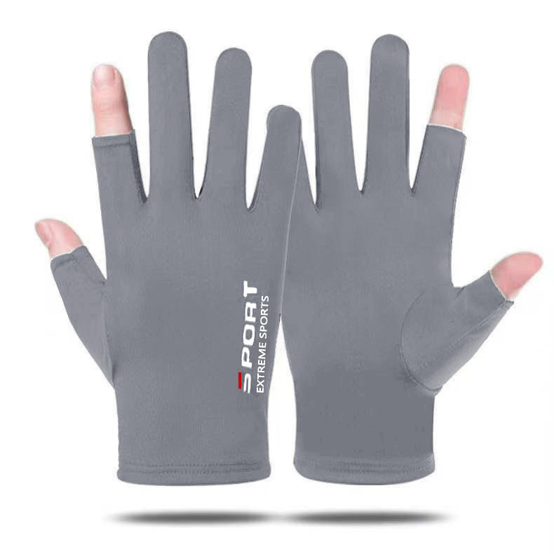 开车钓鱼手套漏指半指冰丝防滑手套透气防晒健身骑行快递速干手套