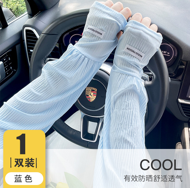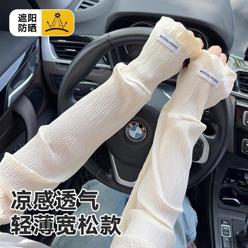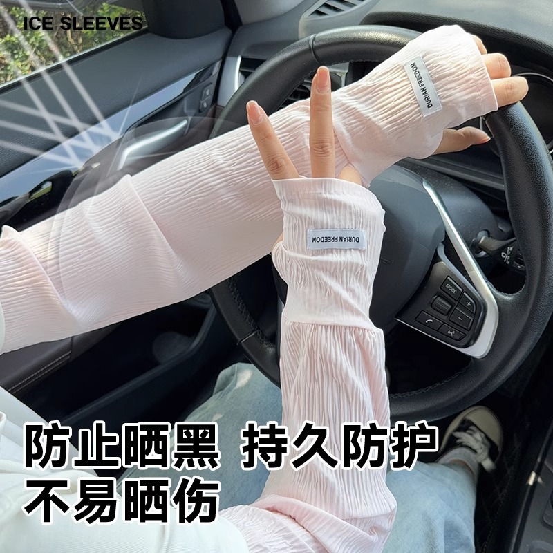 韩版纯色冰丝袖套女2025新款夏天开车遮阳防紫外线护手臂防晒冰袖