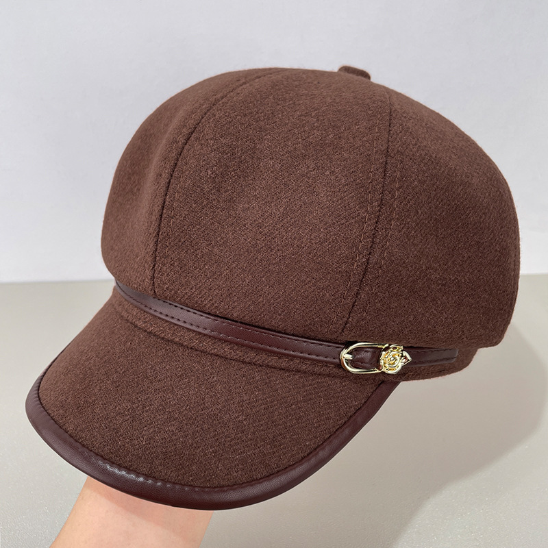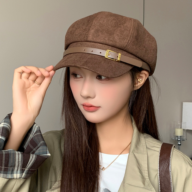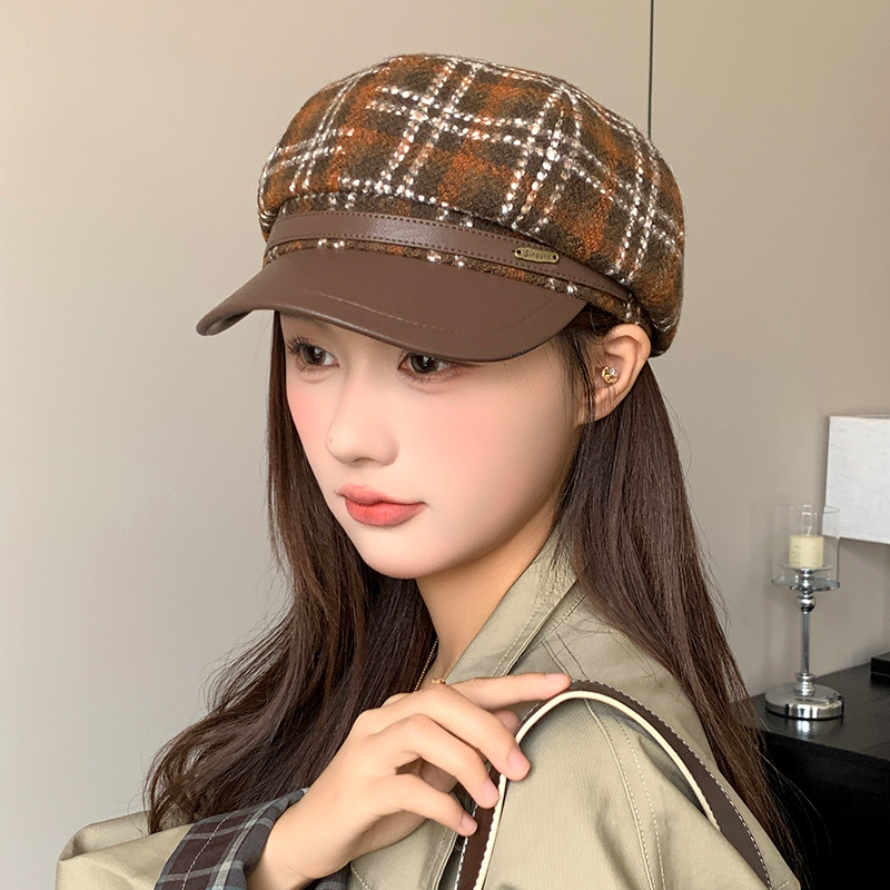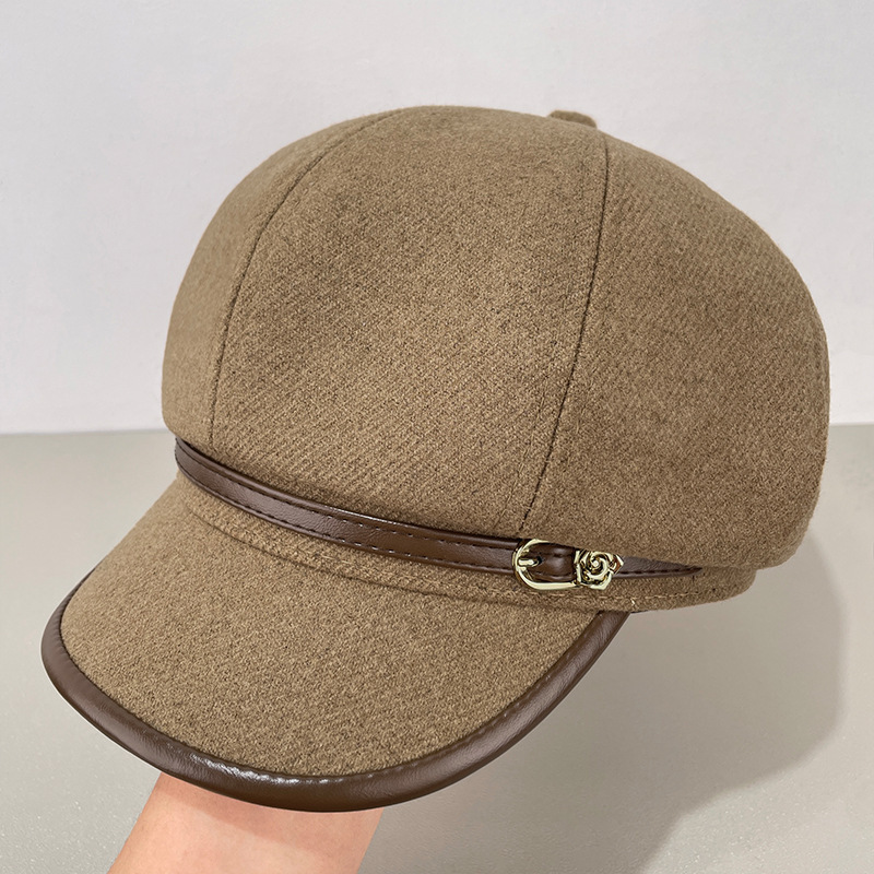 帽子女秋冬季韩版百搭毛呢八角贝雷帽显脸小保暖鸭舌帽大头报童帽