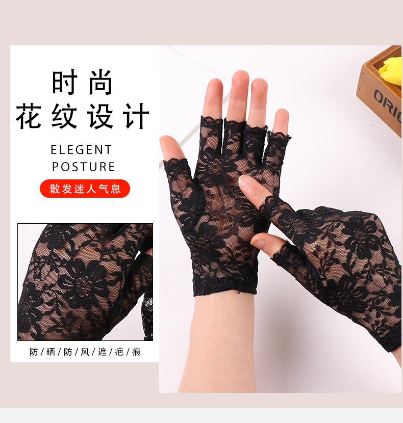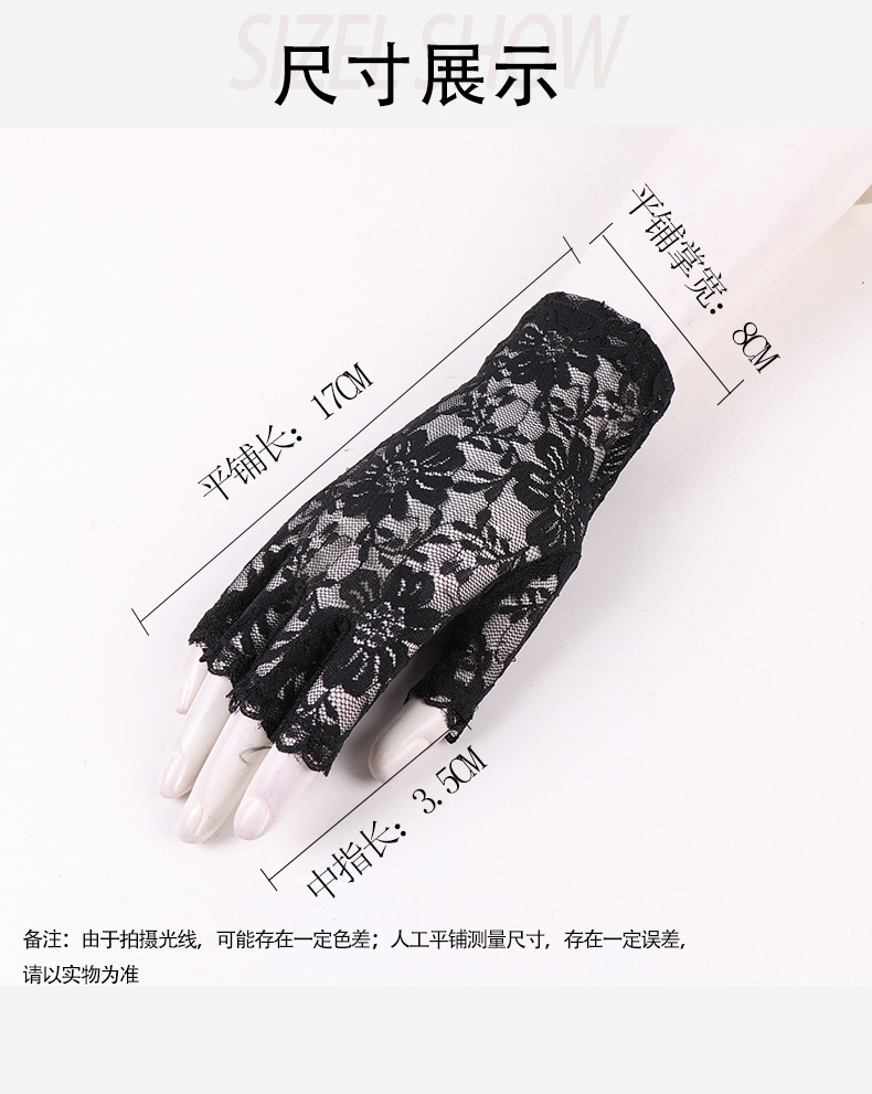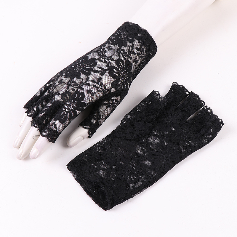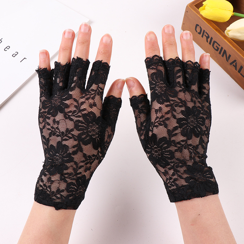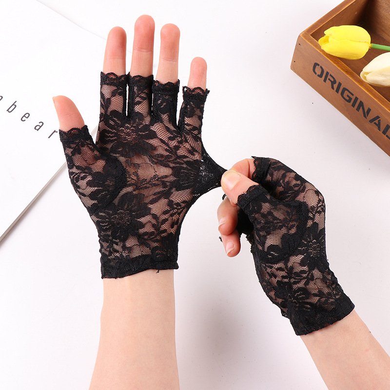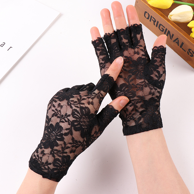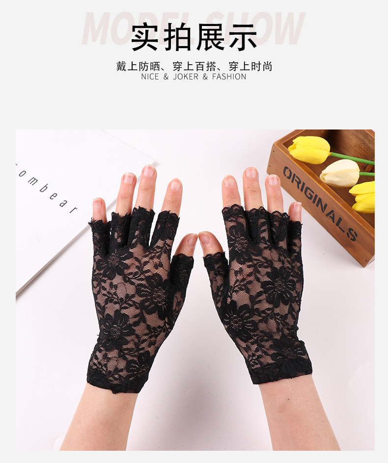 蕾丝半指手套女花朵黑色性感镂空网纱弹力薄款透气漏指半截春夏秋