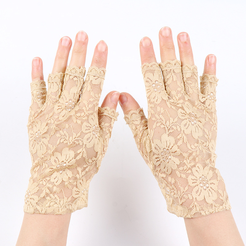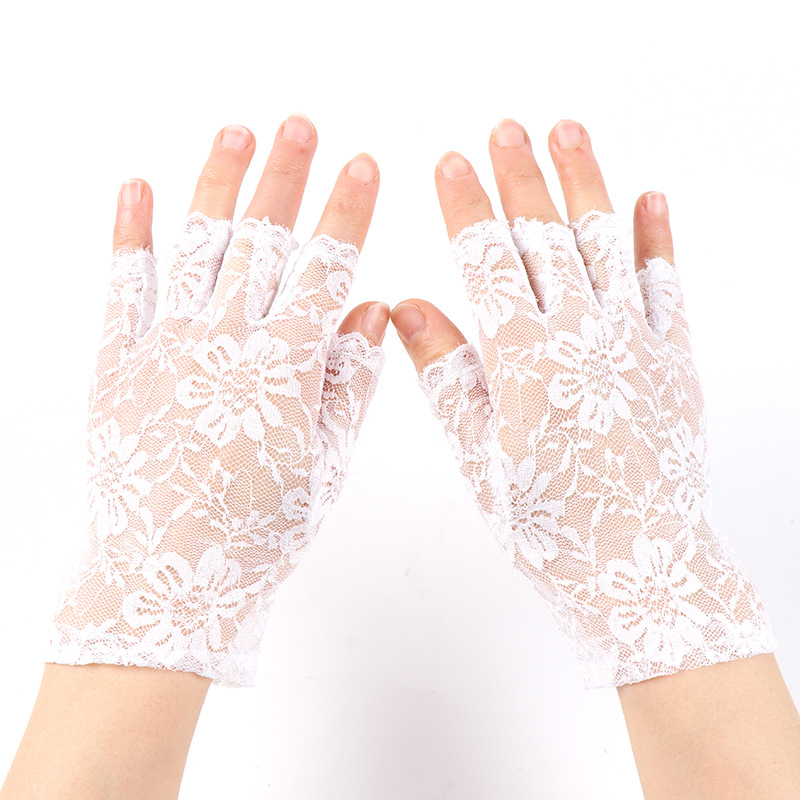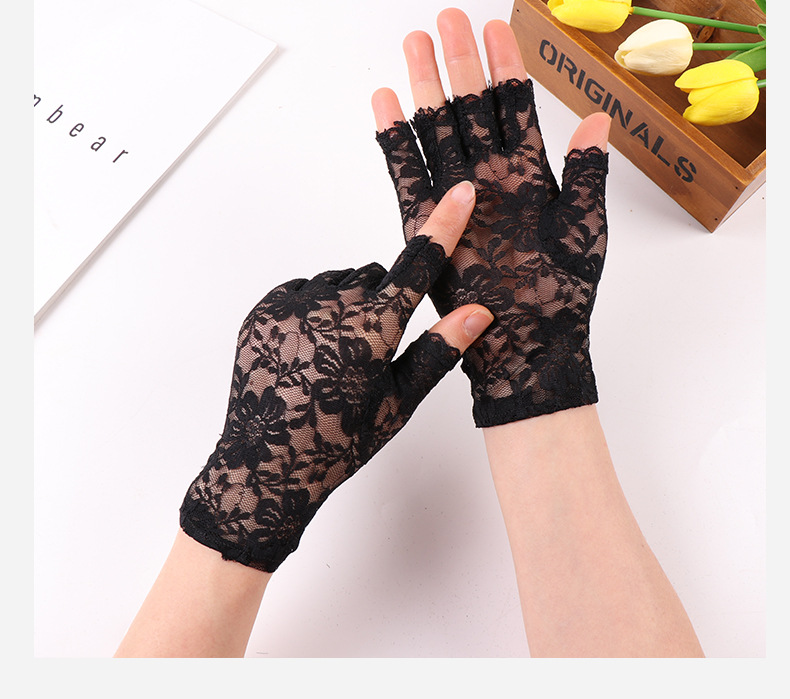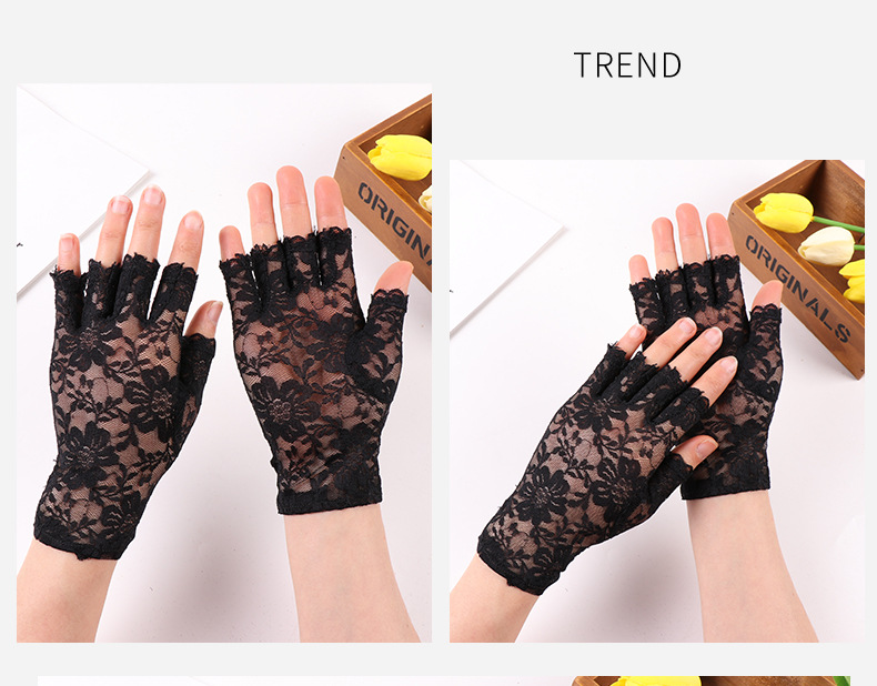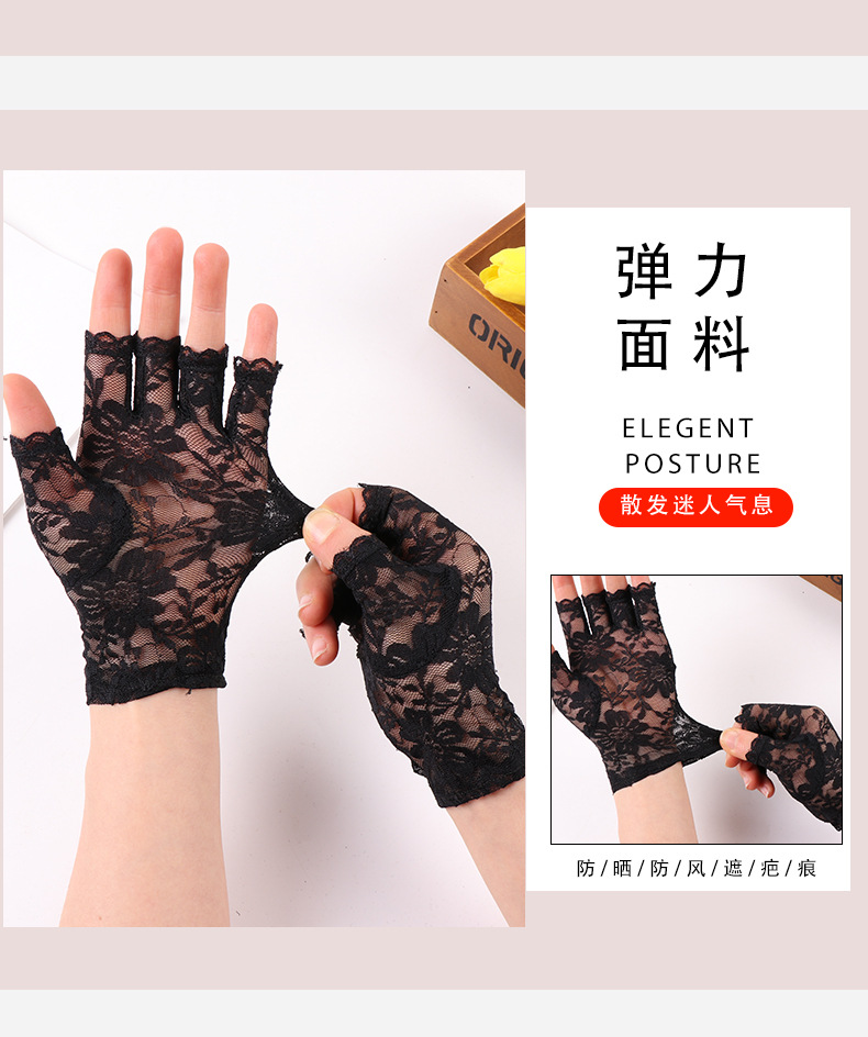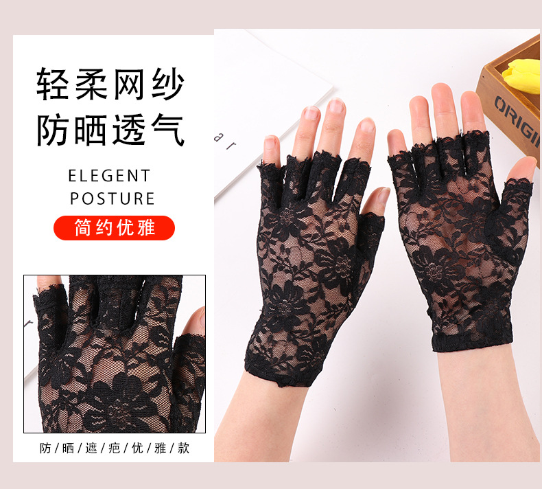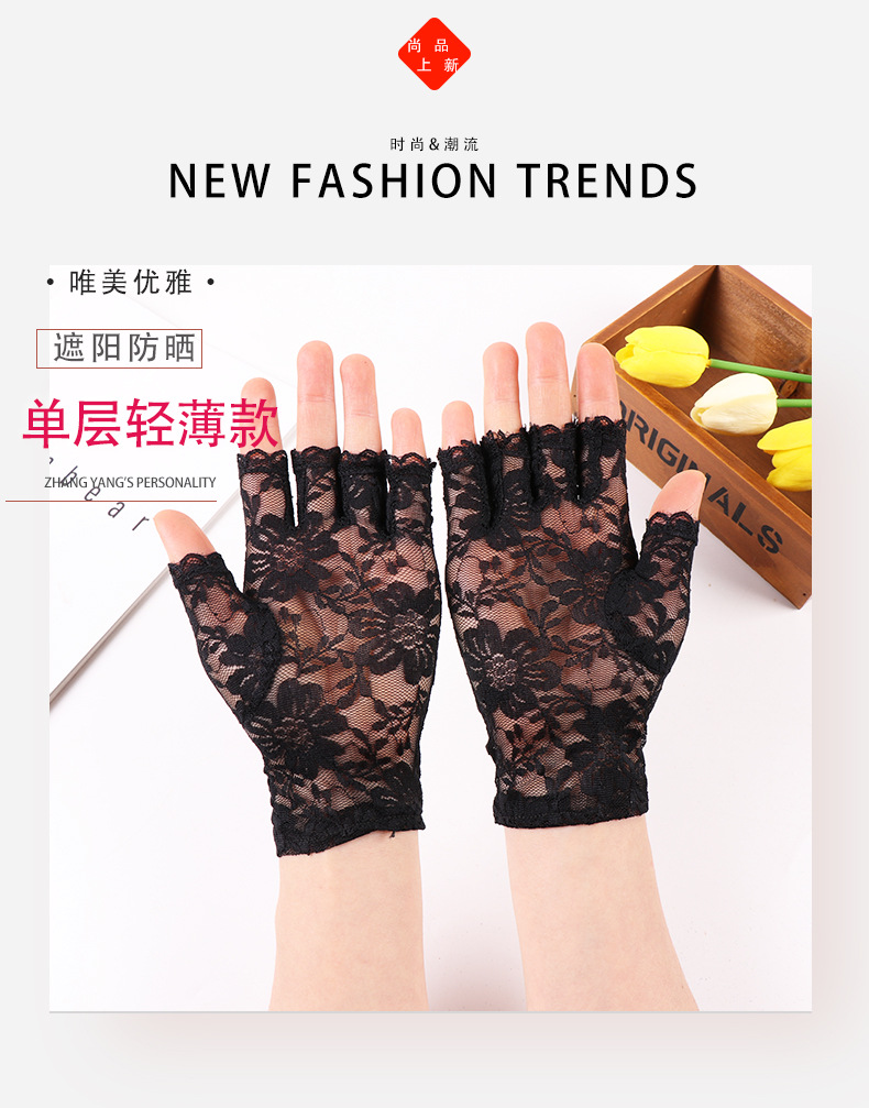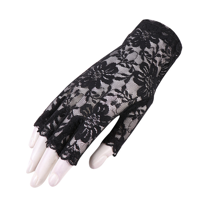 蕾丝半指手套女花朵黑色性感镂空网纱弹力薄款透气漏指半截春夏秋