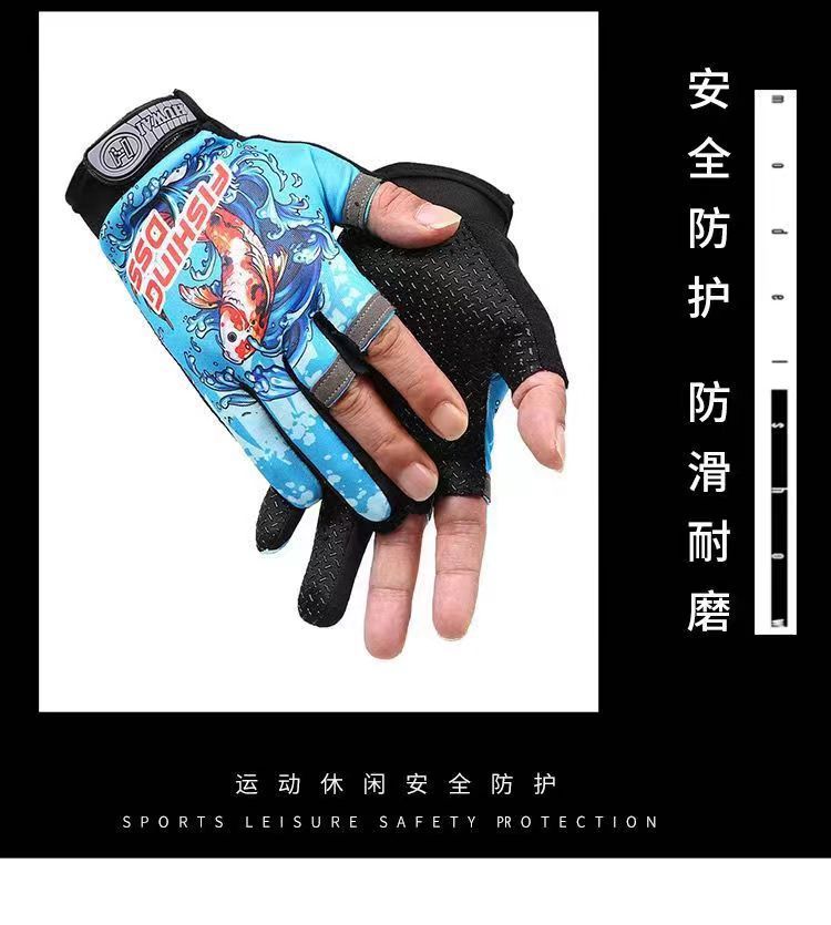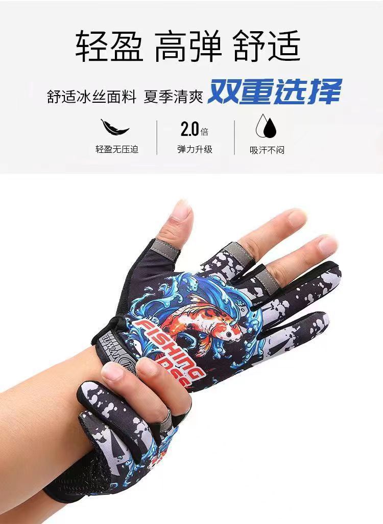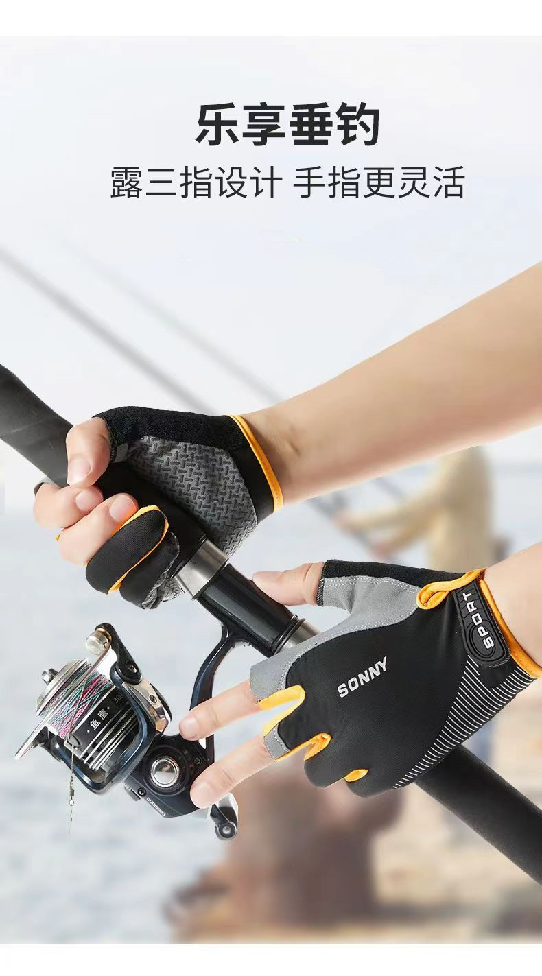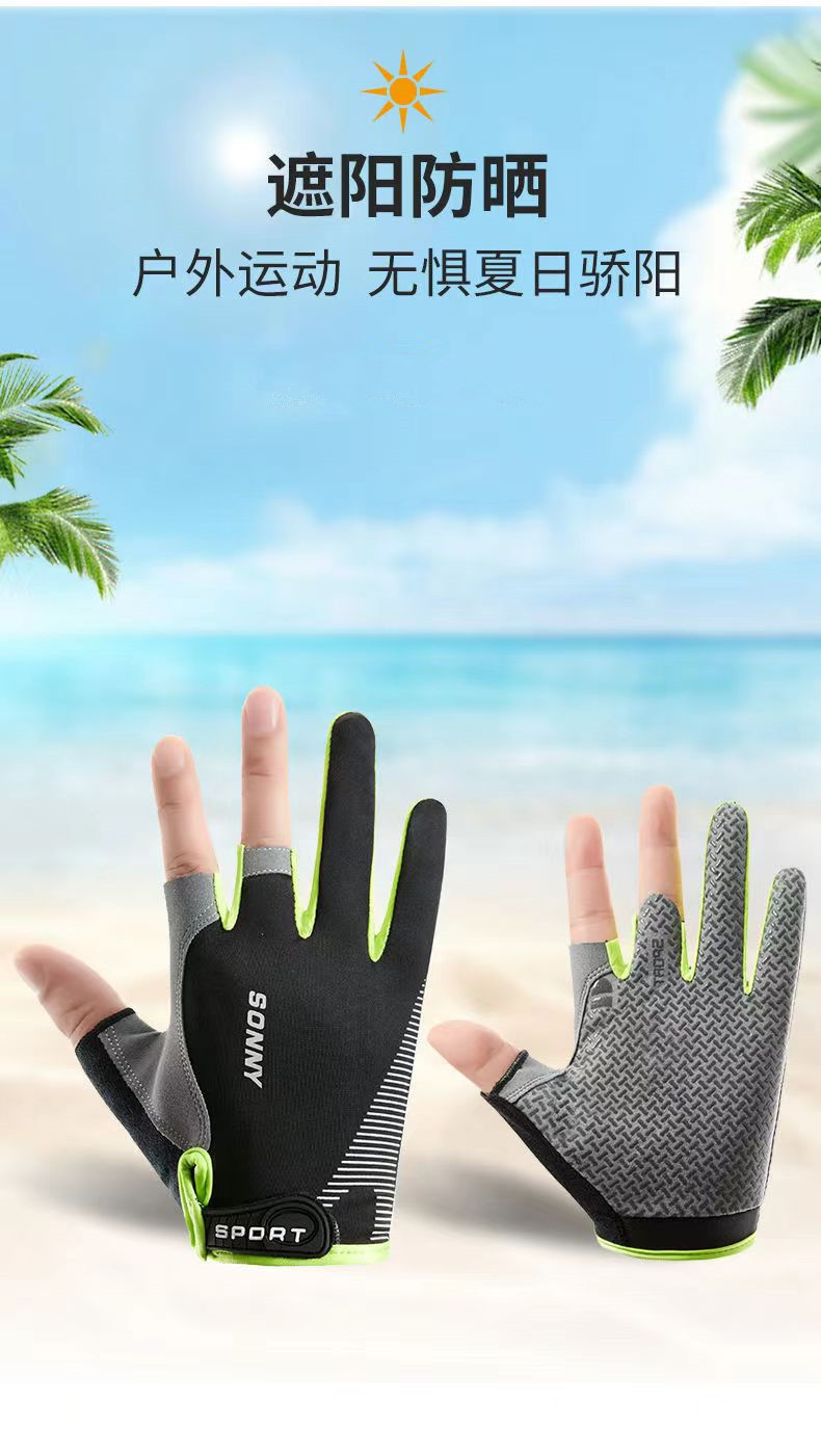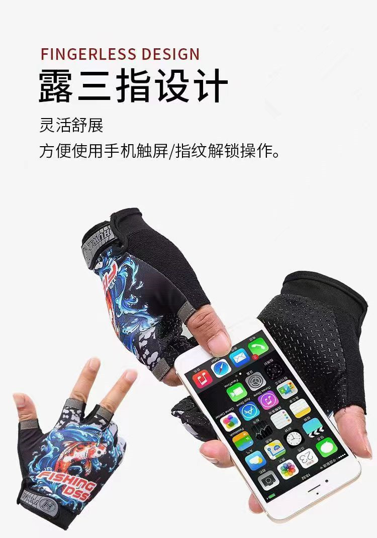 钓鱼手套夏季防晒薄款漏三指户外垂钓防滑防刺防扎耐磨不粘饵手套