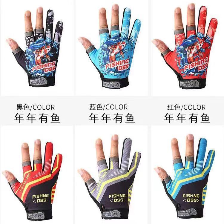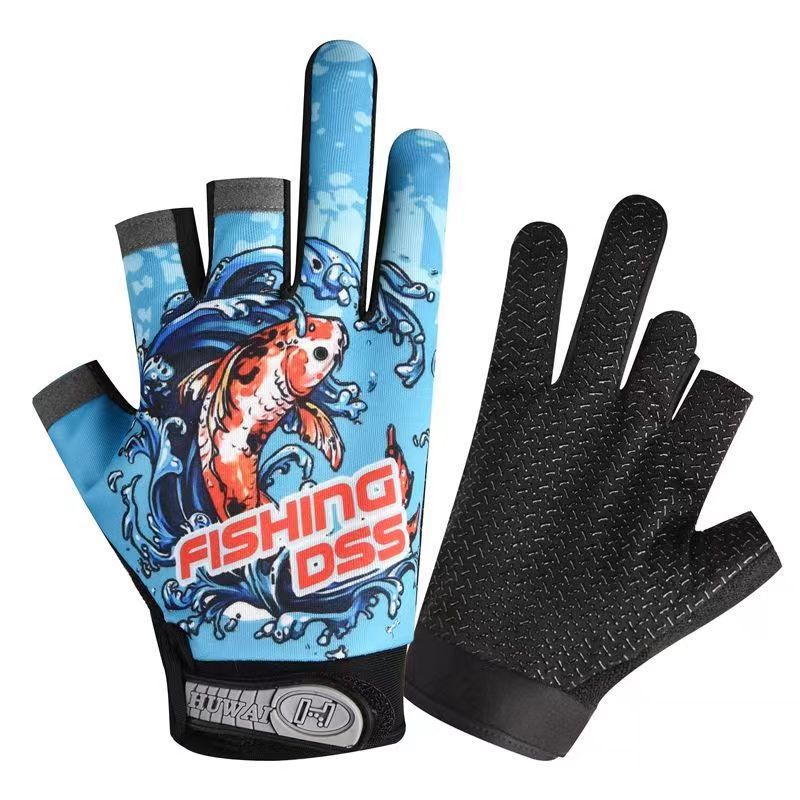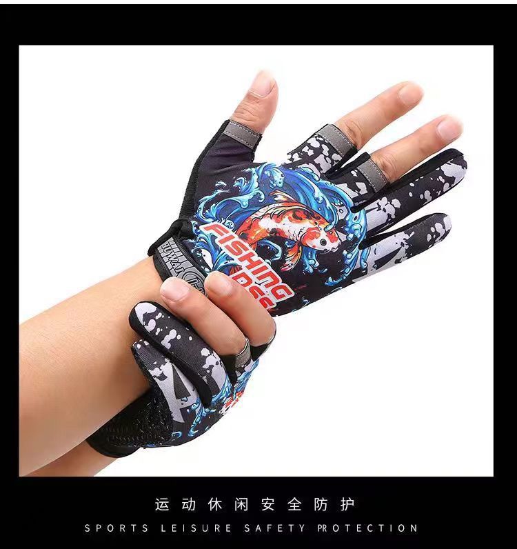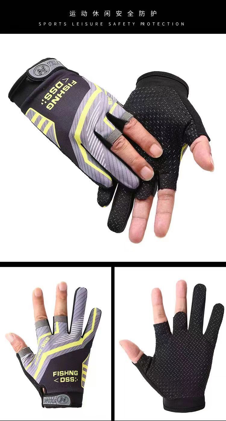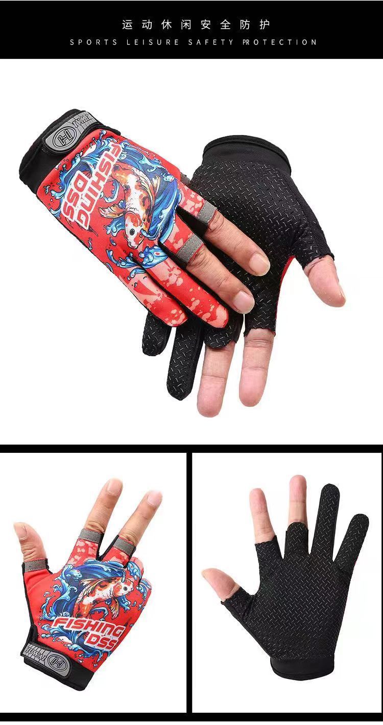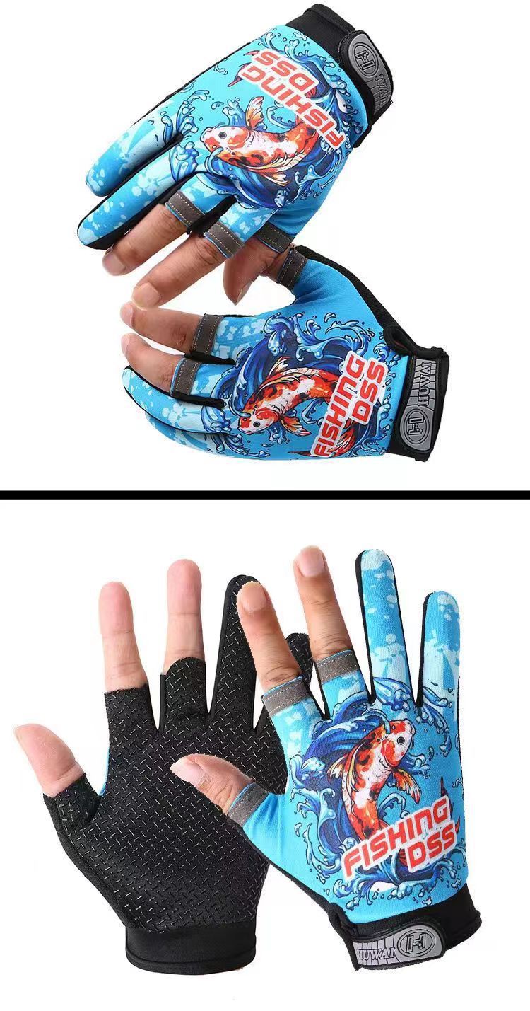 钓鱼手套夏季防晒薄款漏三指户外垂钓防滑防刺防扎耐磨不粘饵手套