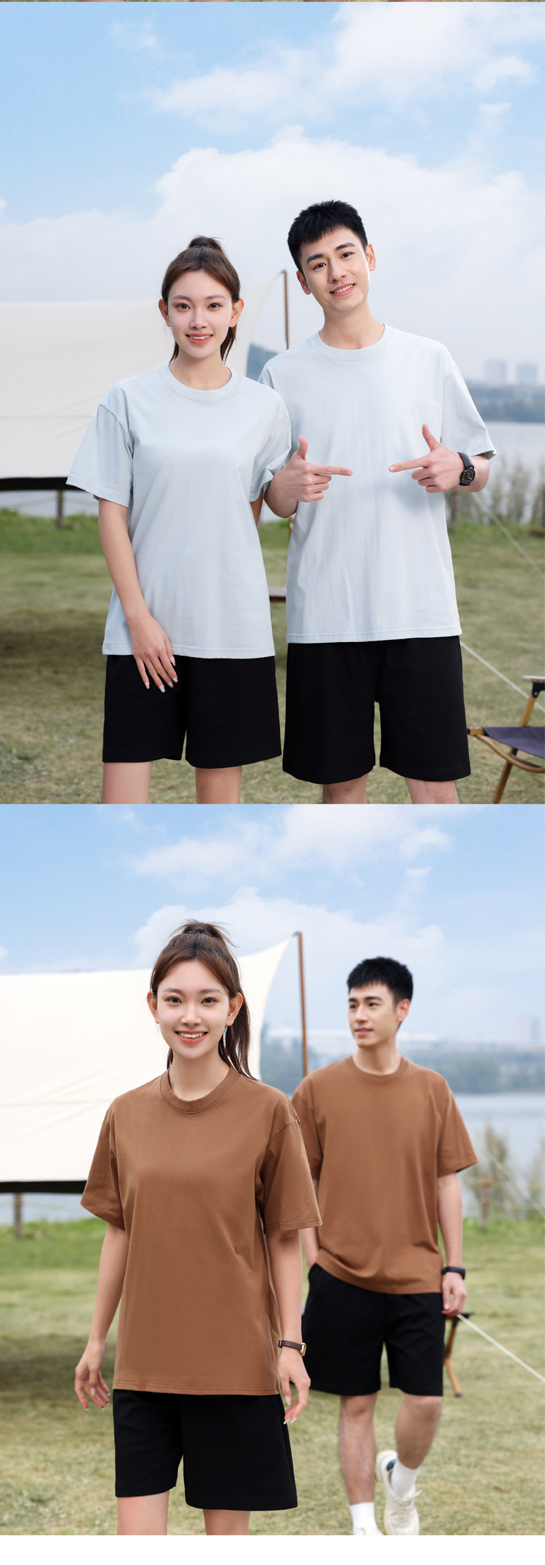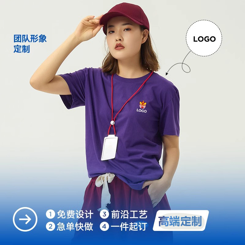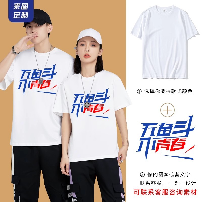230克重磅短袖圆领白色T恤文化衫定制印字logo班服纯棉工作服潮牌