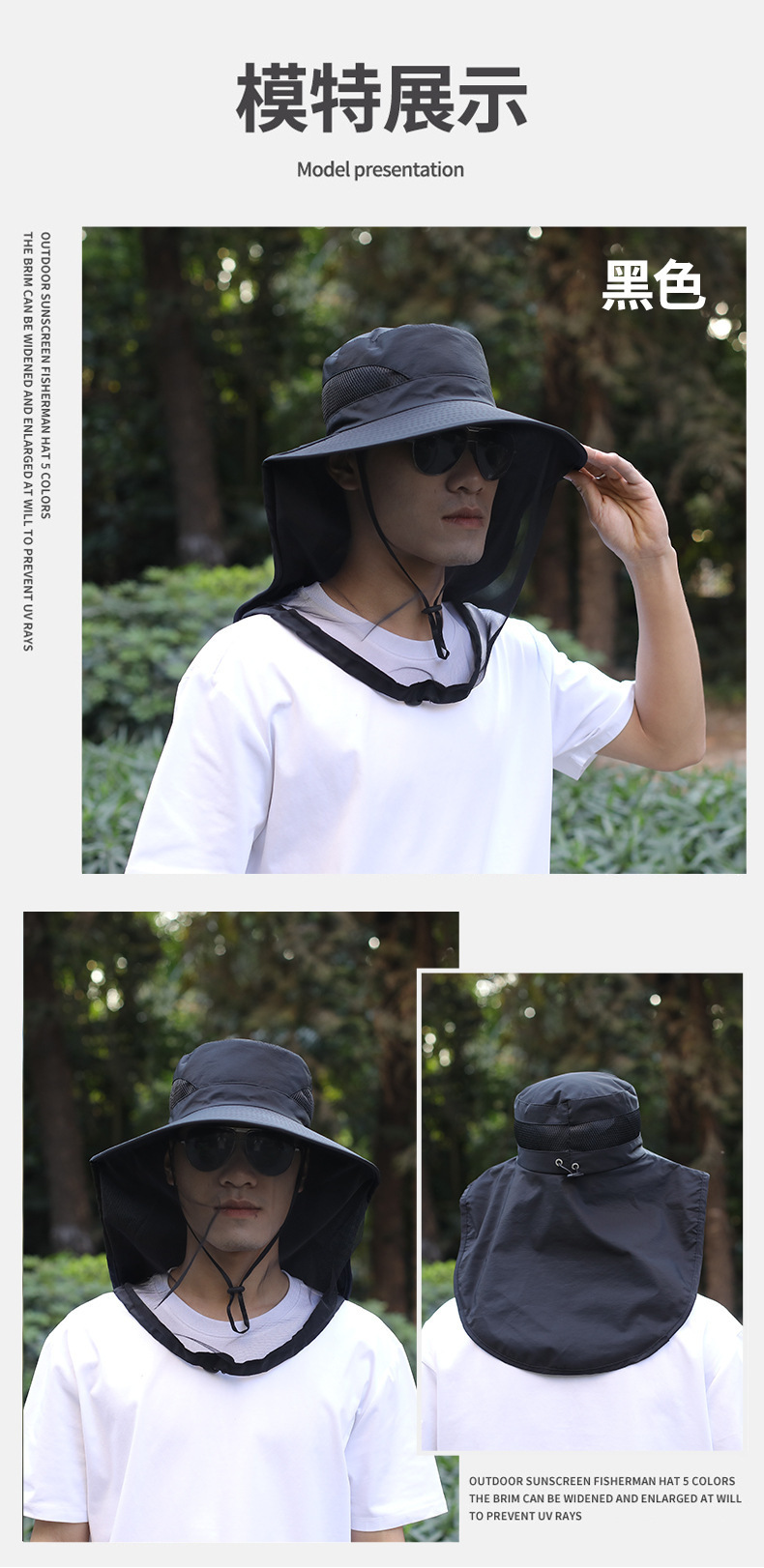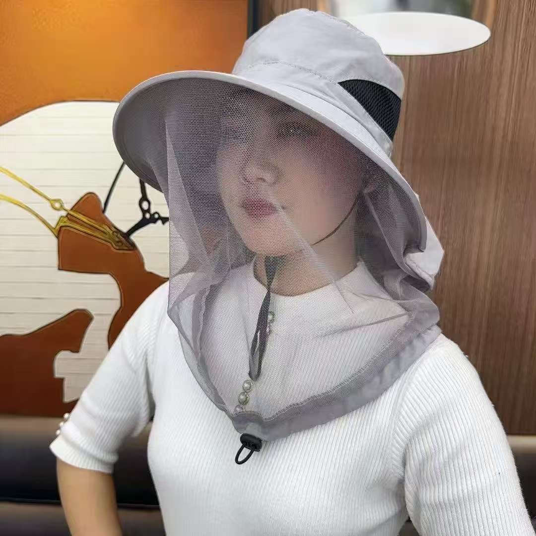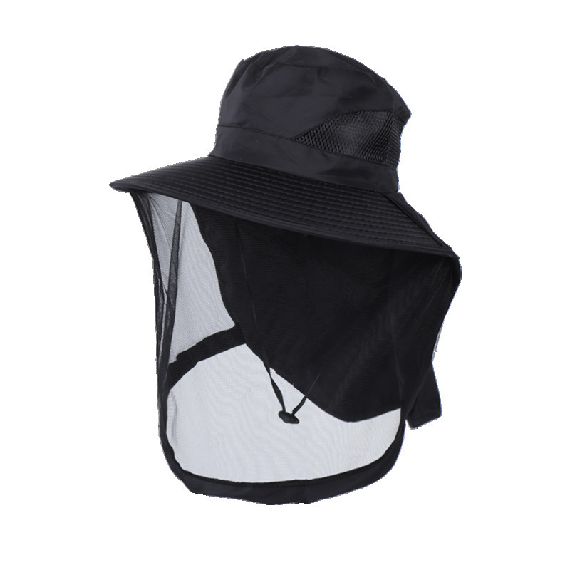 防蚊帽户外钓鱼帽男款遮脸防晒帽透气网纱面罩夜钓防虫防蜂帽大檐